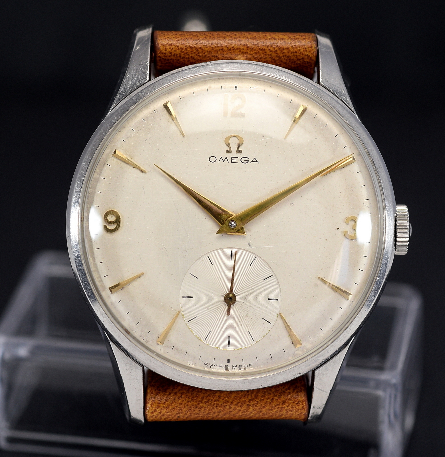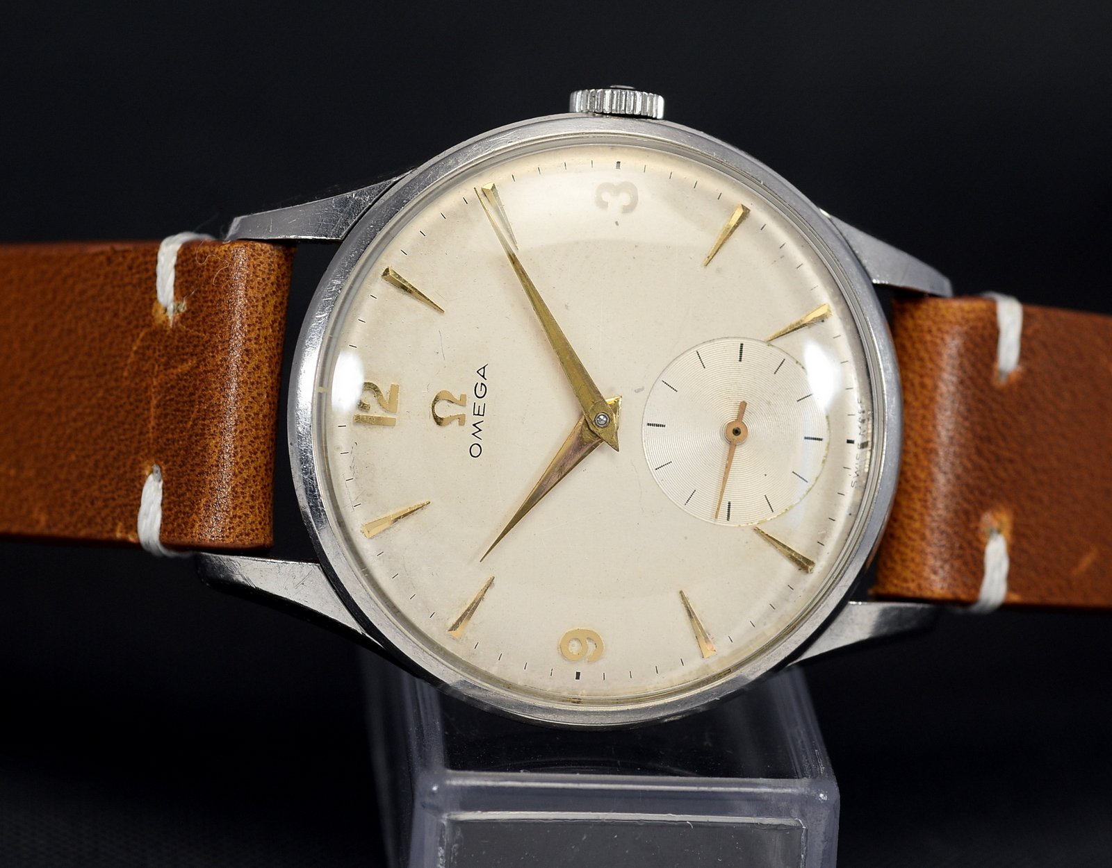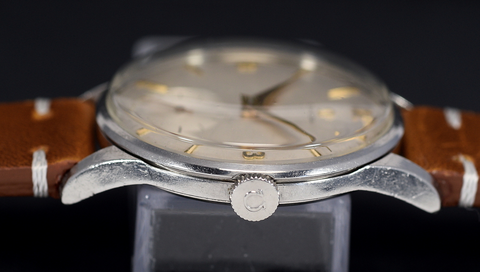 For sale is an original rare Omega from ca 1954 in stainless steel case. It is a large timepiece, that looks awesome even on larger wrists.