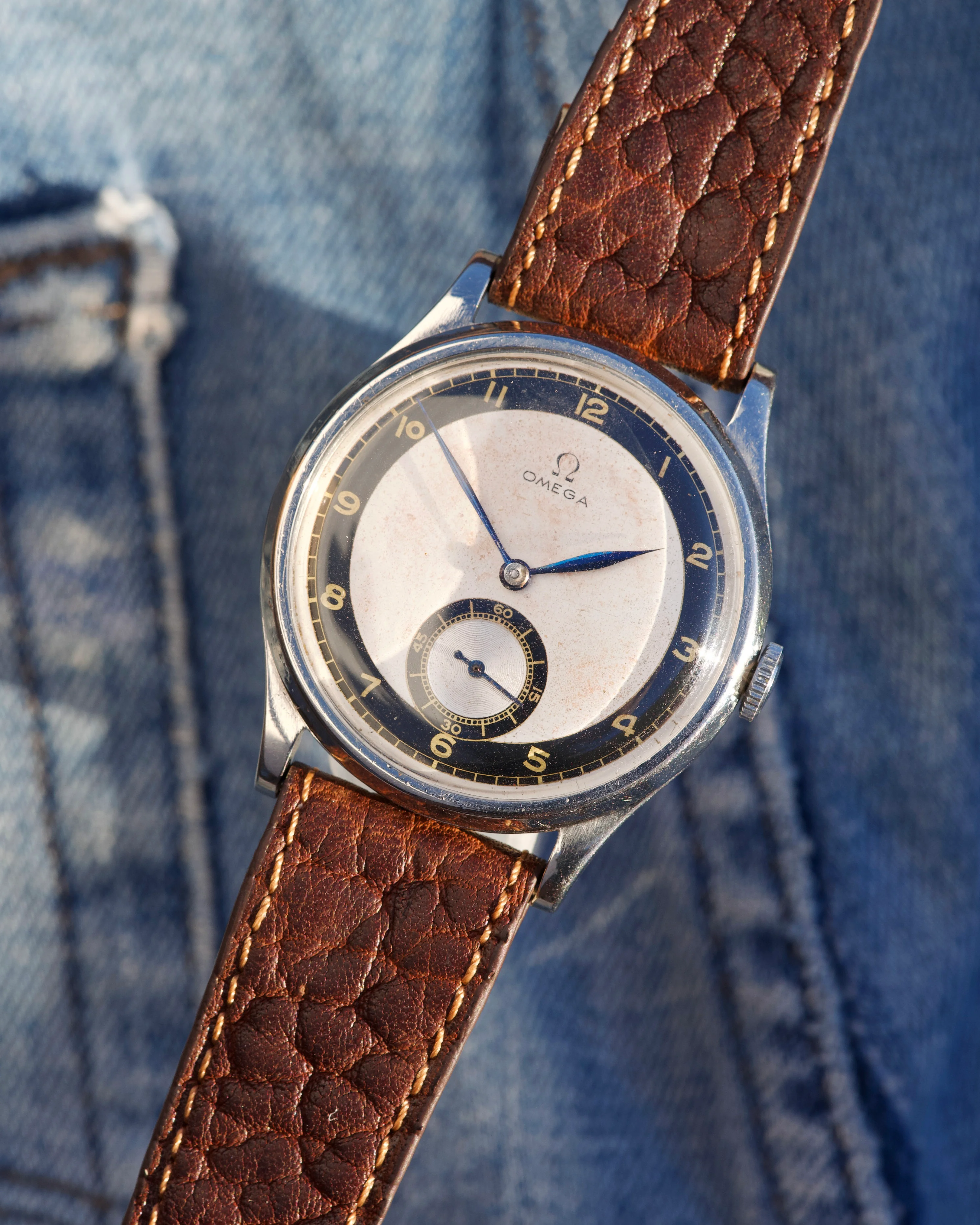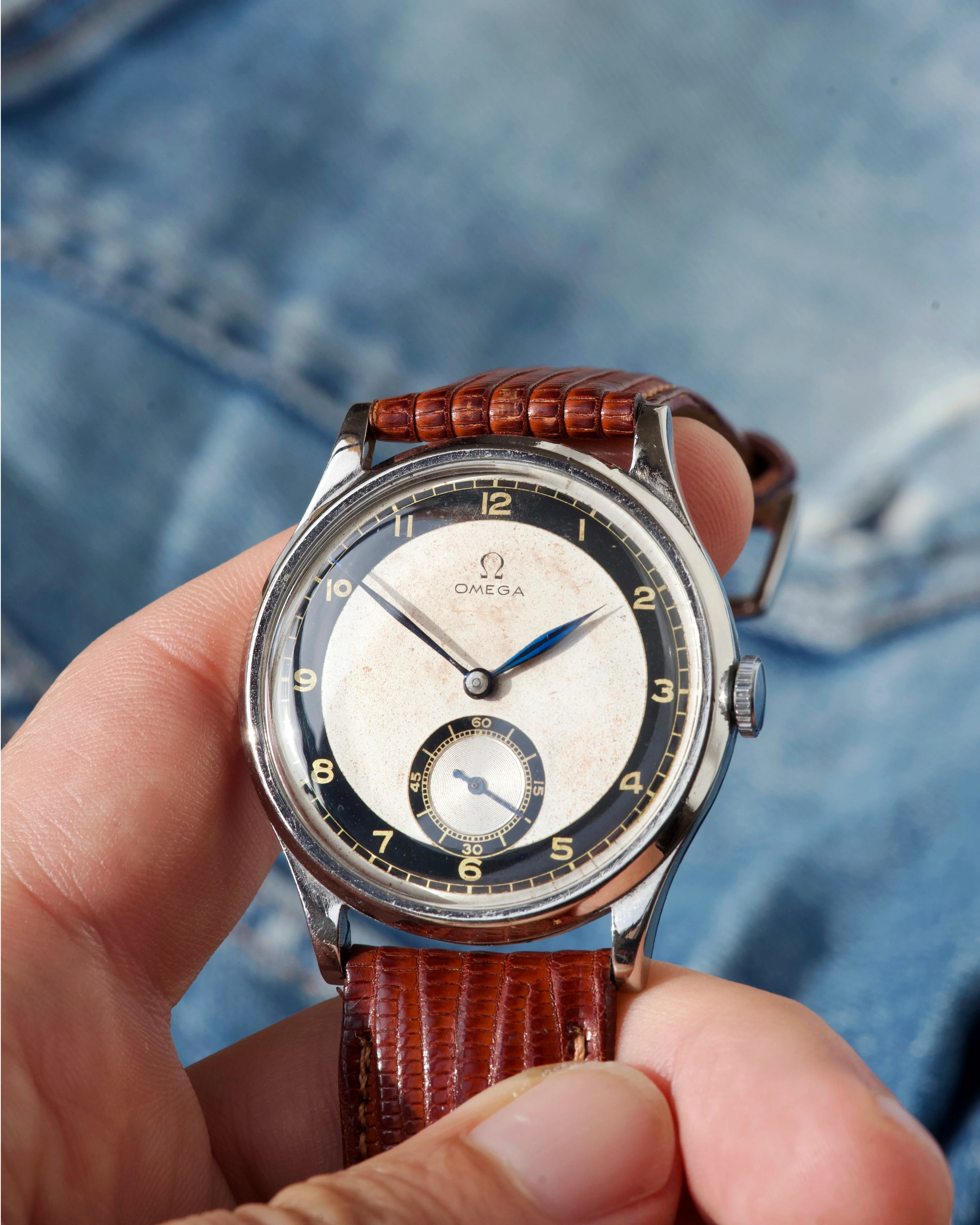 This tuxedo dial is perfect, usually these dials tend to have dark patina on the central white sector; this one has a lovely eggeshell patina that is really captivating and hard to find!