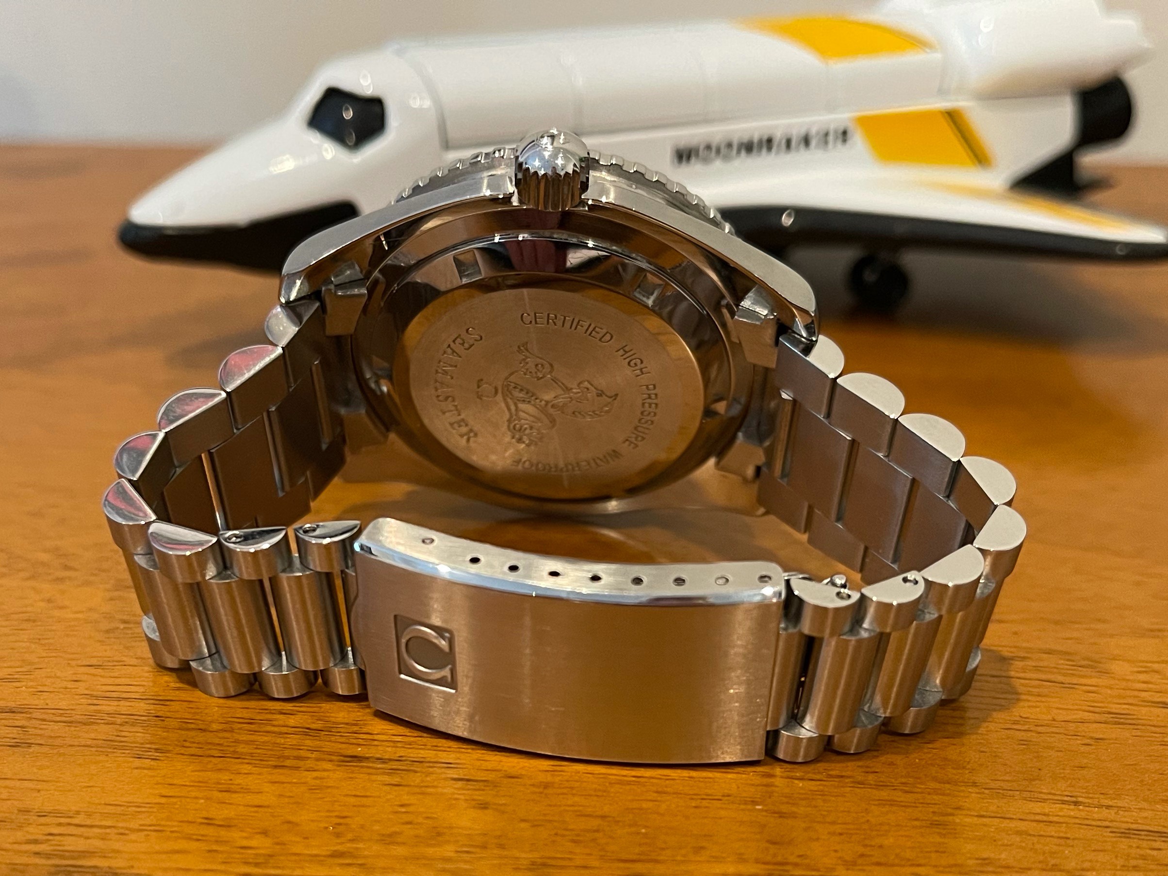 Personally, I just like the Omega clasp better though there is not much difference. I'm not trying to pass it off for being something that it's not at all. In my world, zero people care about what is on my wrist - it's just for me. I know it might be blasphemy, but I have a Grand Seiko that I use an Omega strap and deployant clasp on just because I like them better than the Grand Seiko offerings. Not that anyone ever sees it, but I like the polished look of the Omega clasp inner pieces over the kinda dull looking Uncle Seiko version (see picture). No offense to Uncle Seiko as it is a great bracelet. And, here's a pic of the SM300 - a Watchco version.