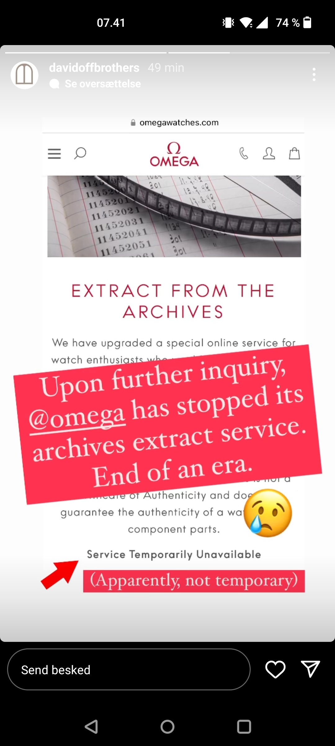 Maybe Omega want to shut down this service because quite a few watches have been sold with Extracts from the Archives that turned out to be ... well, somewhat unrelated to the watch, thereby leading people to pay a lot more for a watch that isn't 100%. And maybe they want to move more "upmarket" by only having the option remain to authenticate the watch with them, and then issuing a Certificate of Authenticity. Still, not every Omega around is worth going through the entire game and cost of having it authenticated...