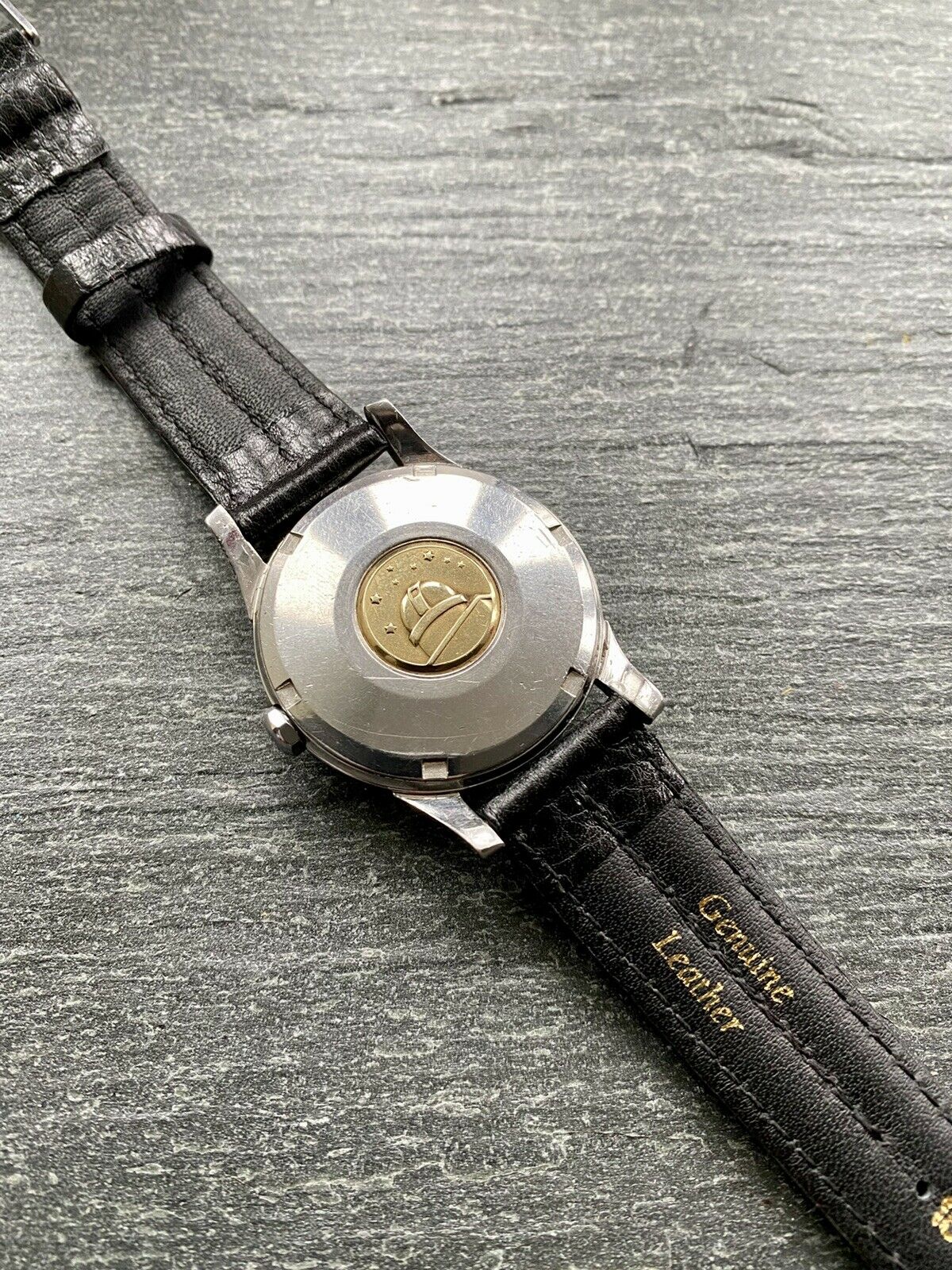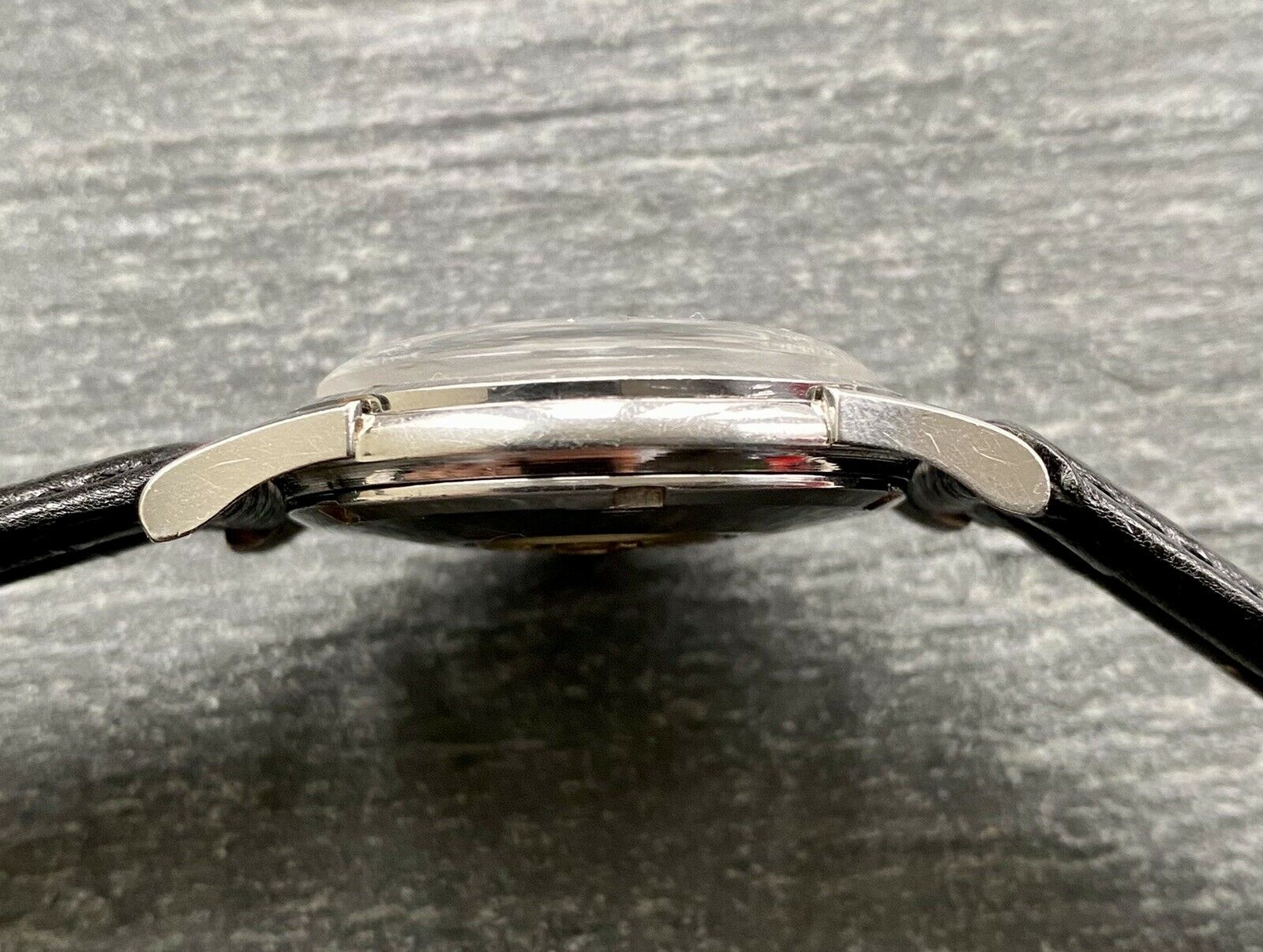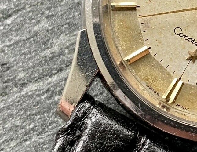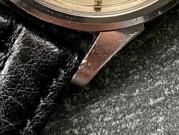The -: Dial with patina (I love that but I know this usually lowers the watch value), scratch on the case back, minor scratches on the case.