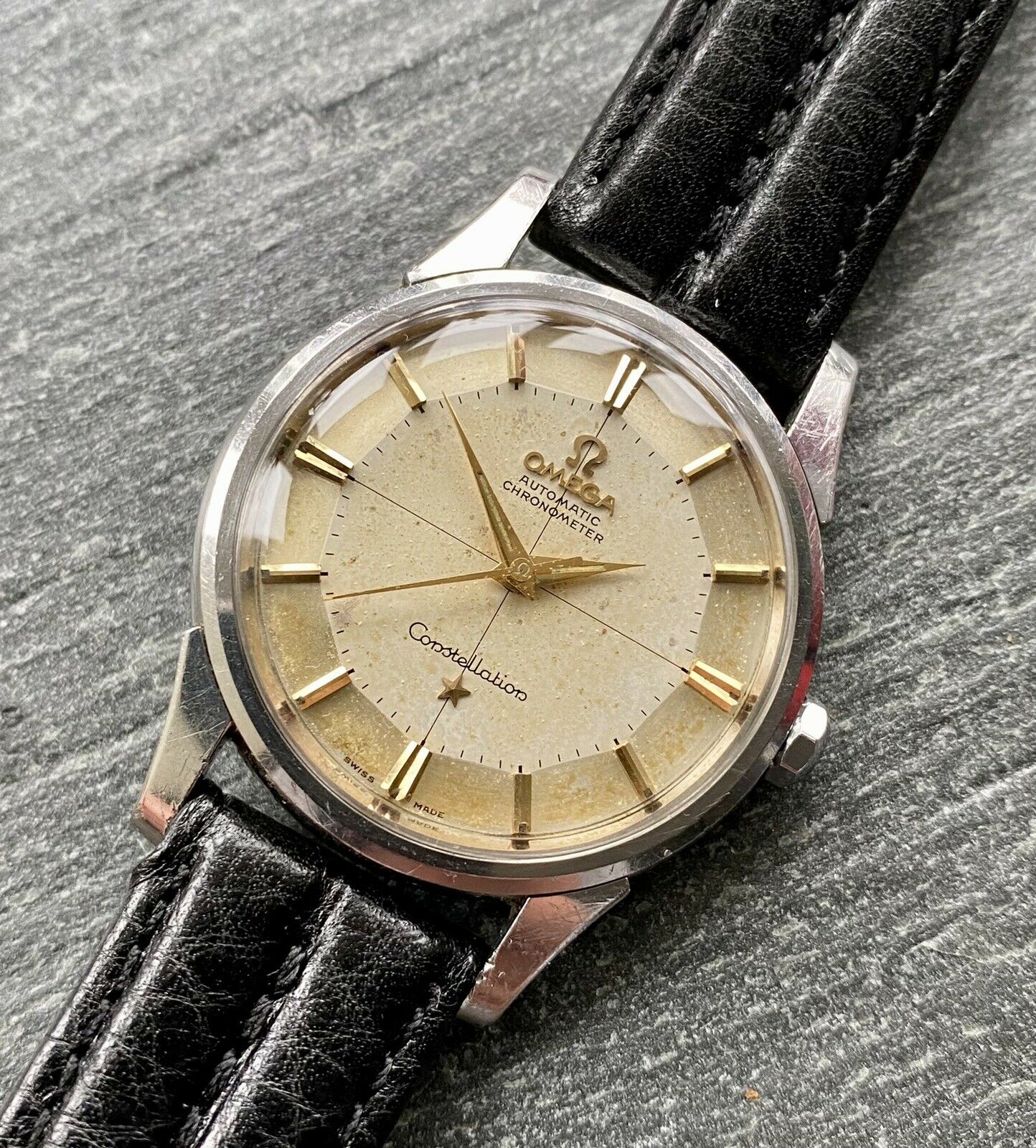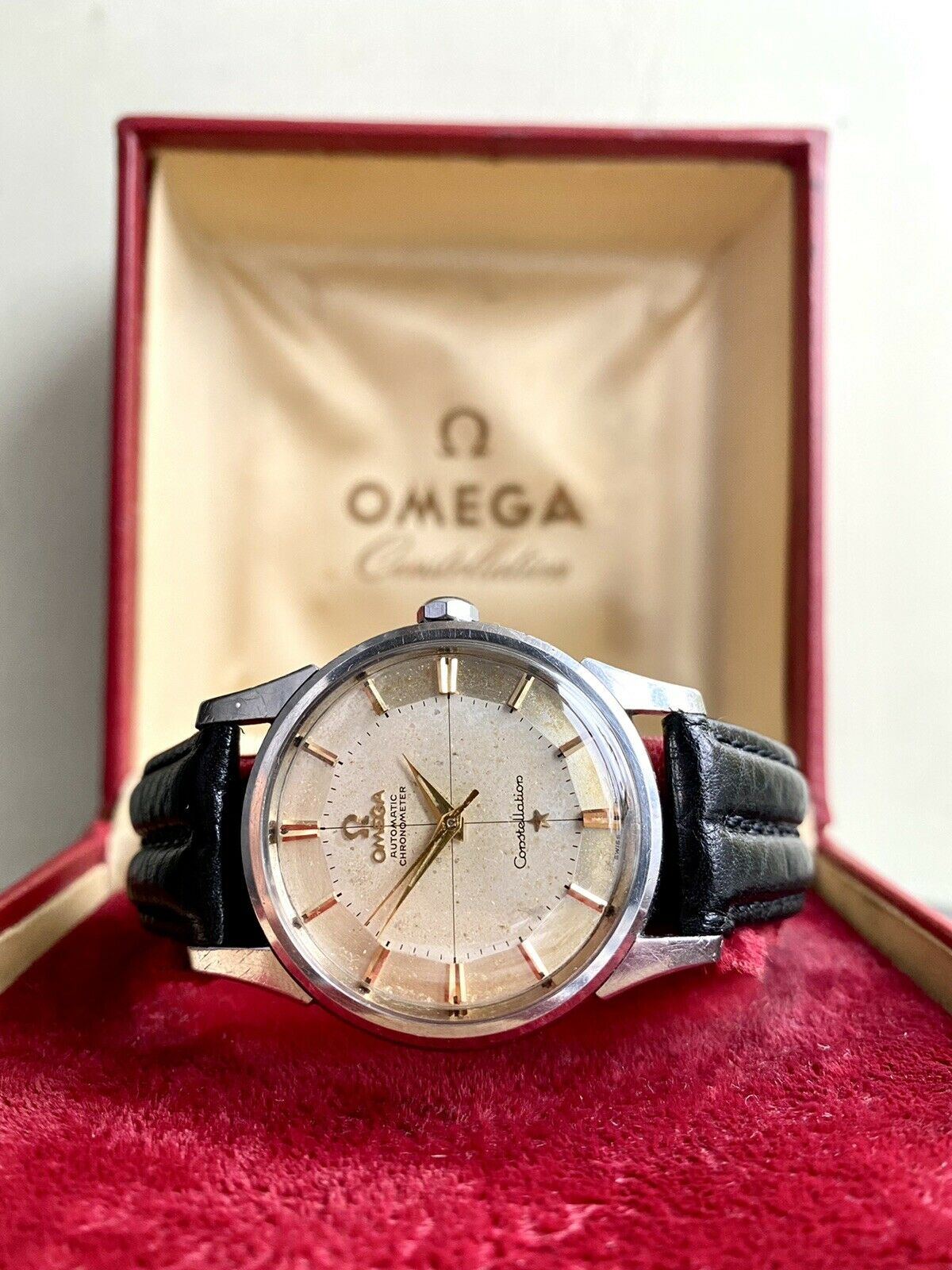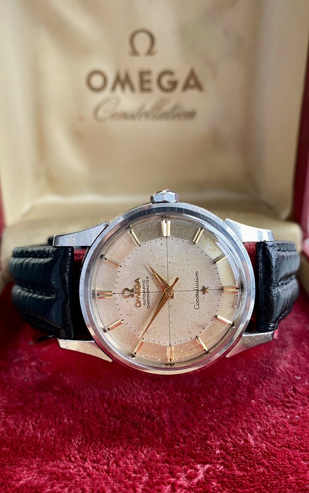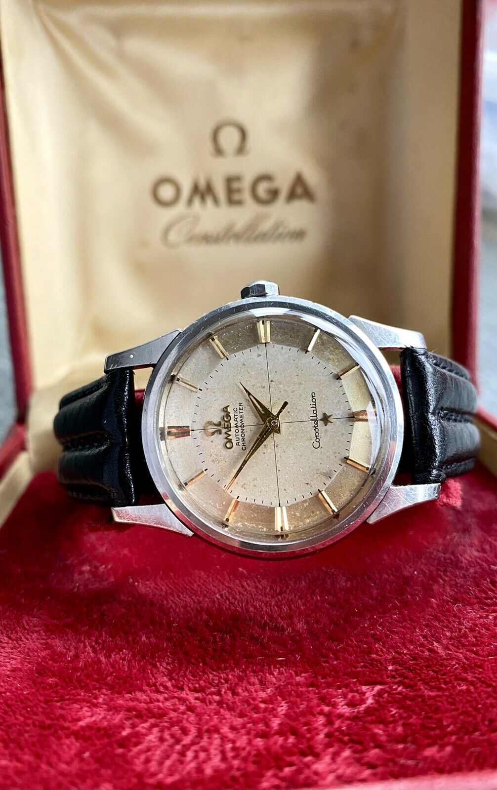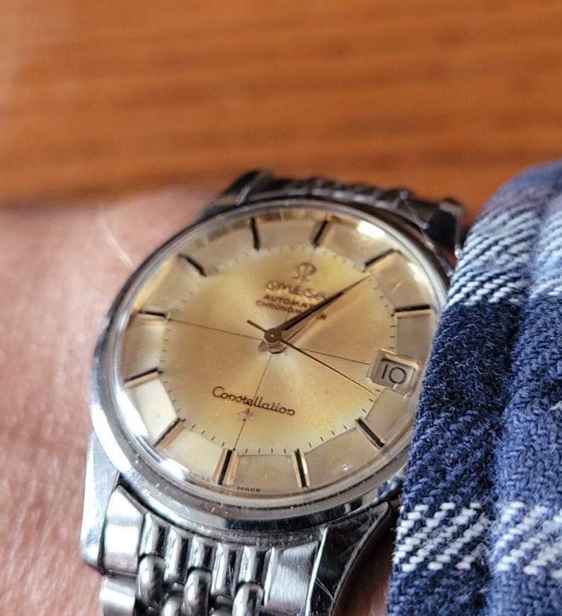 The +: Pie Pan, sharp edges, omega clasp (I need to go through the dedicated thread to make sure this one is original), has been serviced a year ago (I don't have the details on what's been done, the watch maker seems to have good reviews on Google), comes with a box, cross hair dial, correct crown (I believe).