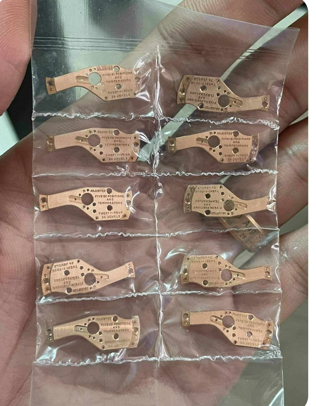 The automatic winding bridge is missing the wording 'adjusted for five positions and temperature' so it is not original to the watch.