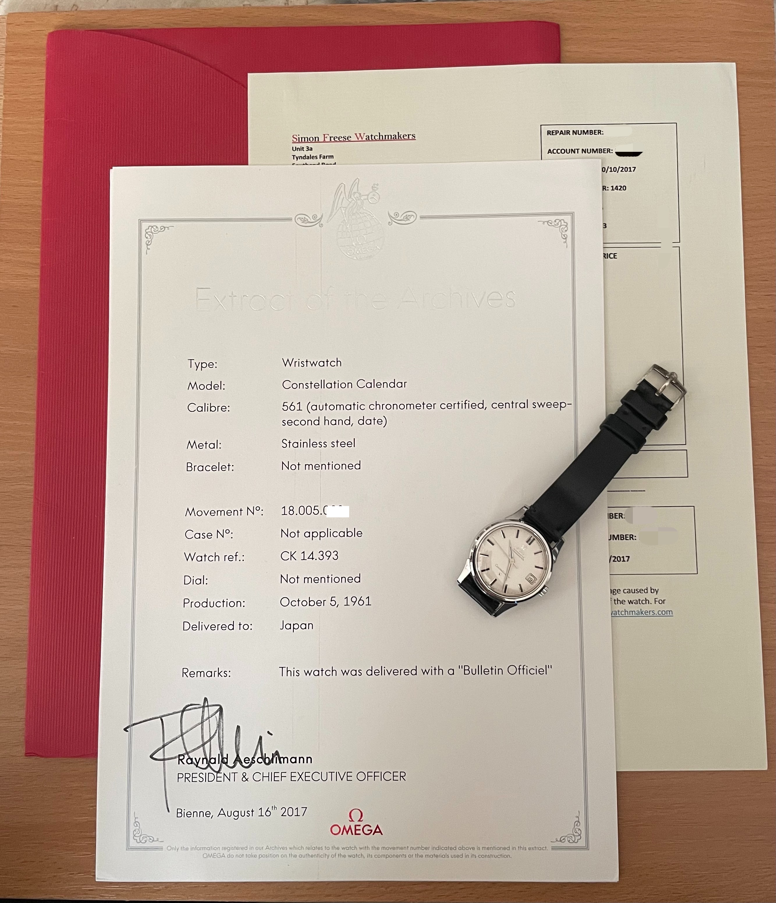 ·For sale is this Omega Constellation ref. 14393 from 1961 with extract of the archives.