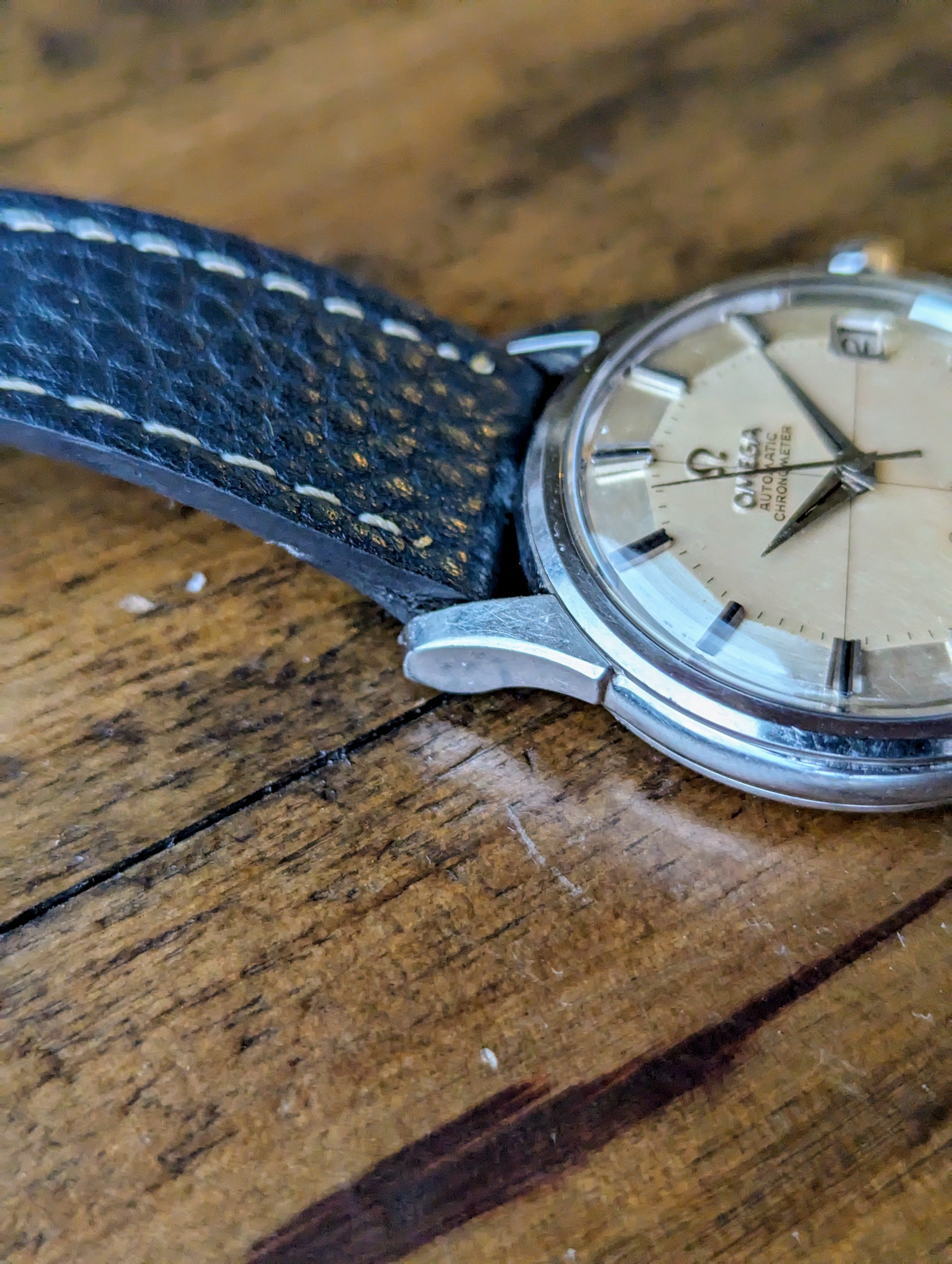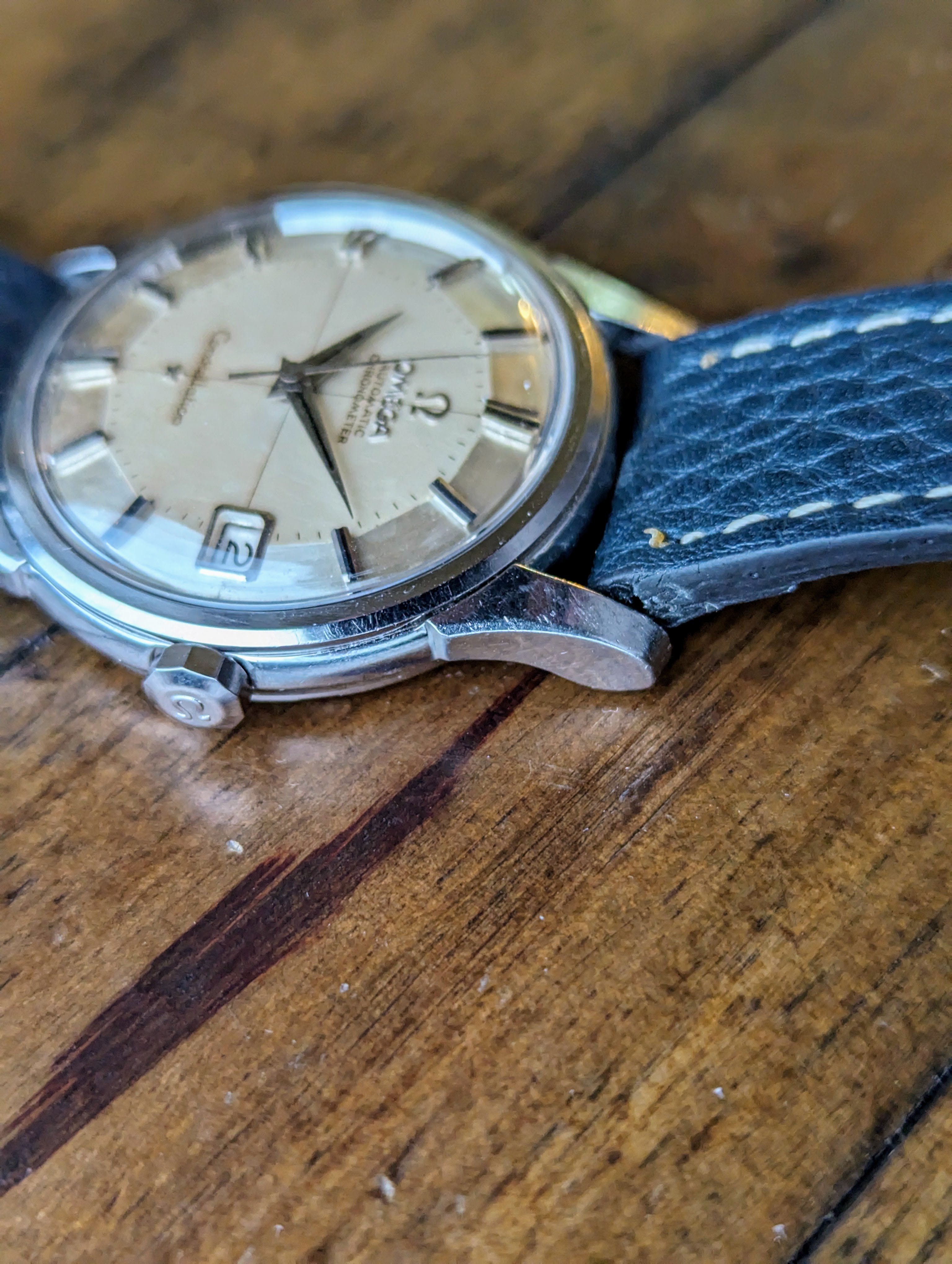 MOVEMENT: Omega automatic caliber 561 chronometer certified. Automatic self winding. 24 jewels, 19800 frequency, 50hr power reserve. The movement just returned from service and will come with a one year warranty.