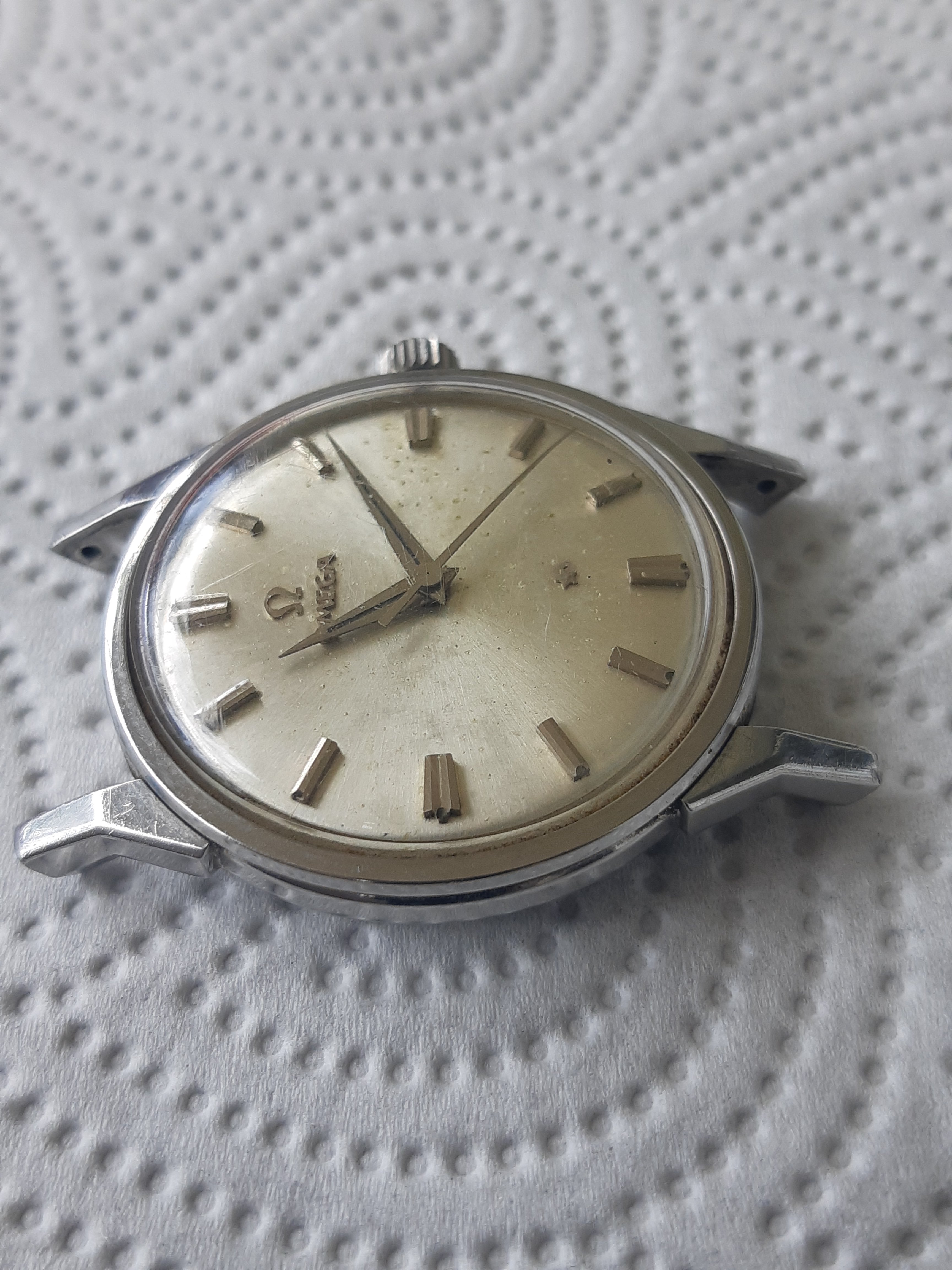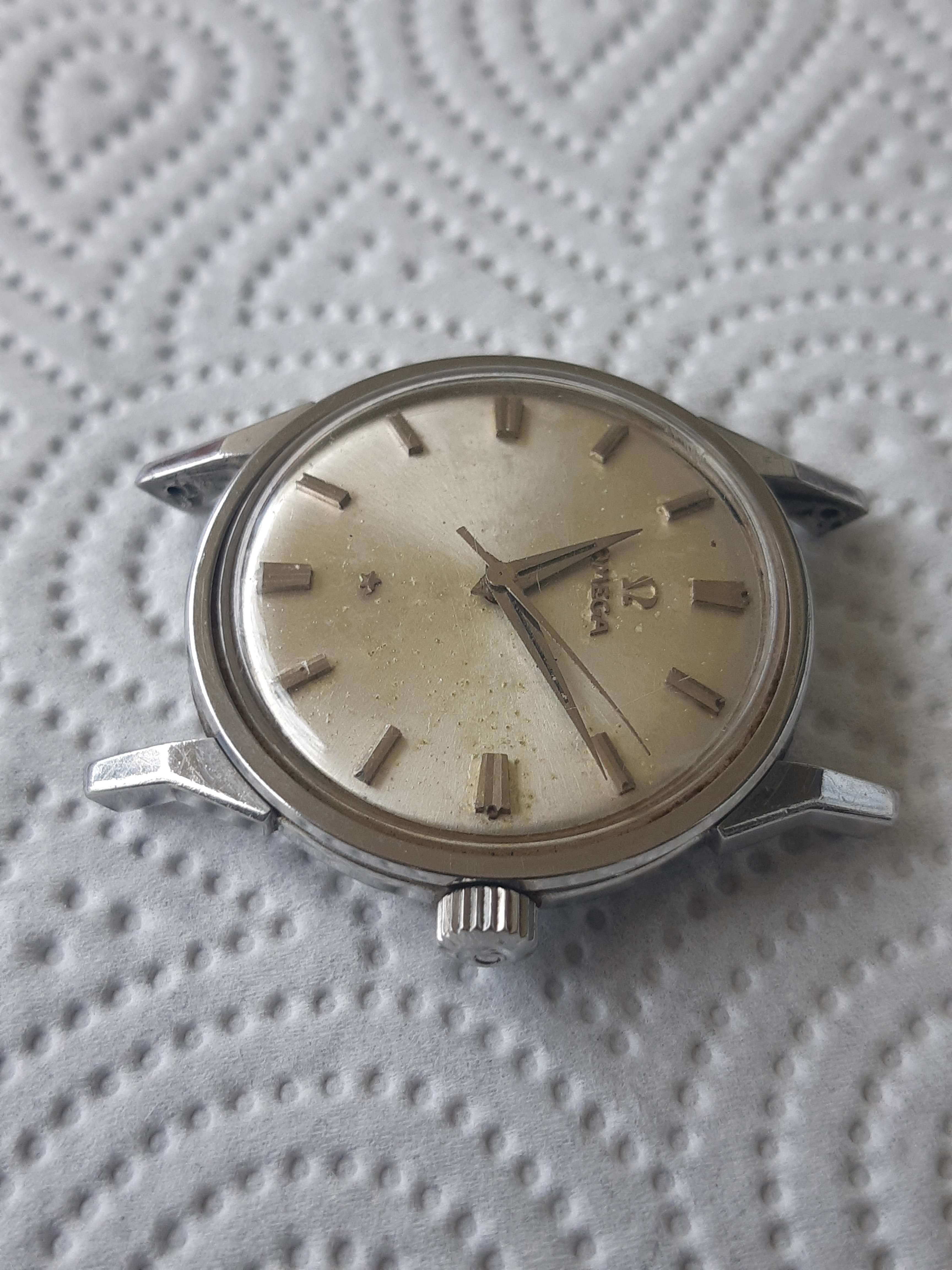 Up for sale a Constellation 14900, Dog Leg case and movement in good condition, dial actually in bad condition. A former owner tried to restore it, the result is bad - but the dial is not damaged, so a good restore is possible 😀