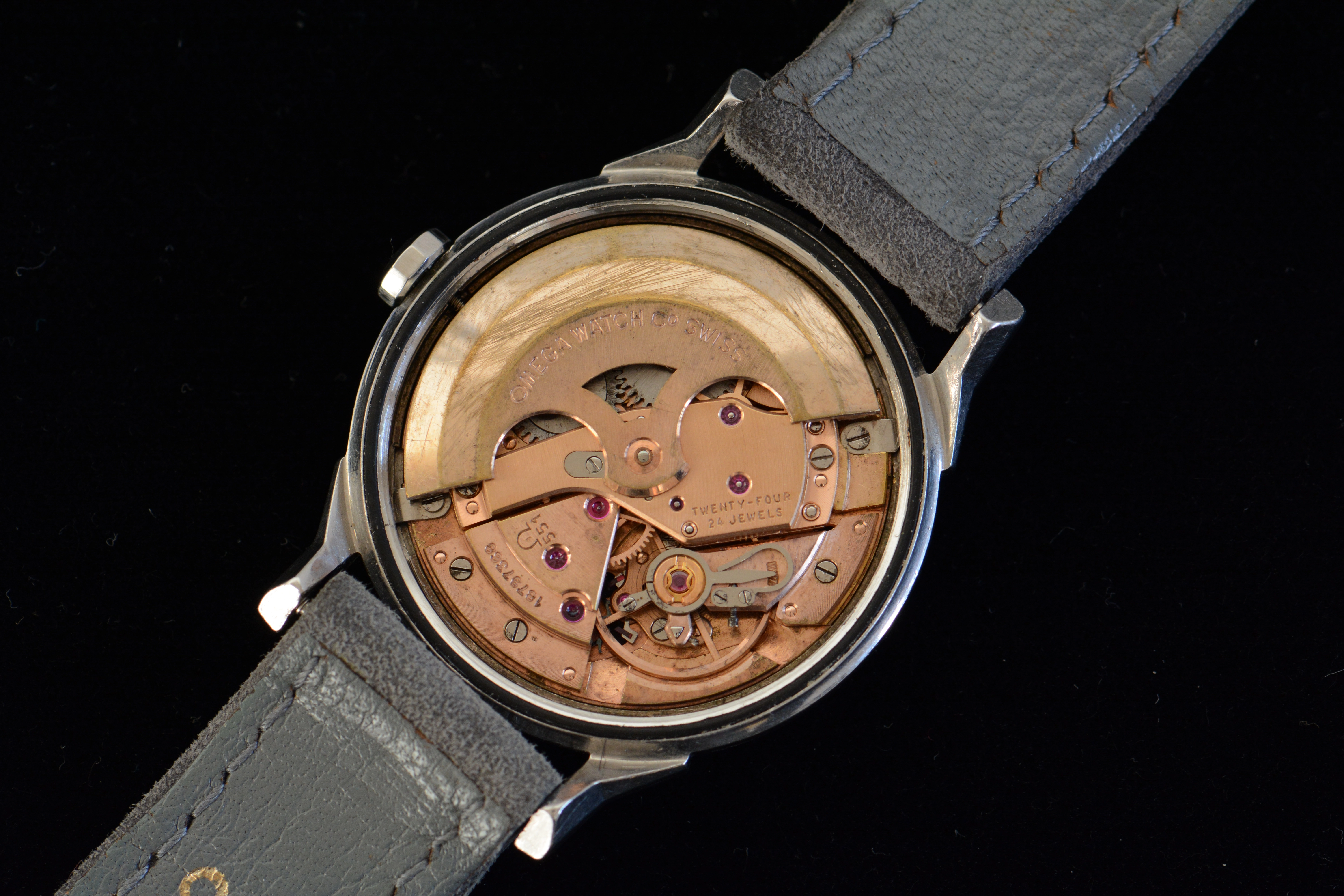 Movement: Calibre 551, a full automatic movement. It was serviced in July 2021 by an Omega certified watchmaker. The service receipt will be included. The visible signs of rotor rubbing on the rotor and case back was addressed during the service and the watch runs fine since then. The automatic work bridge that usually bears the text "adjusted to five (5) positions and temperature" was replaced some time in the past. The lower price reflects this flaw.