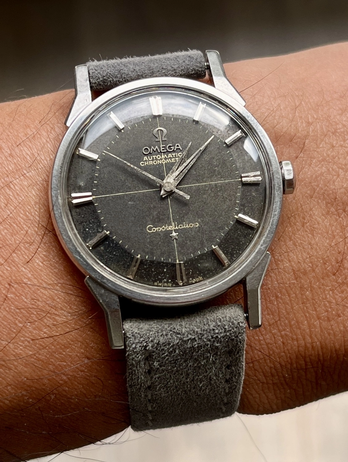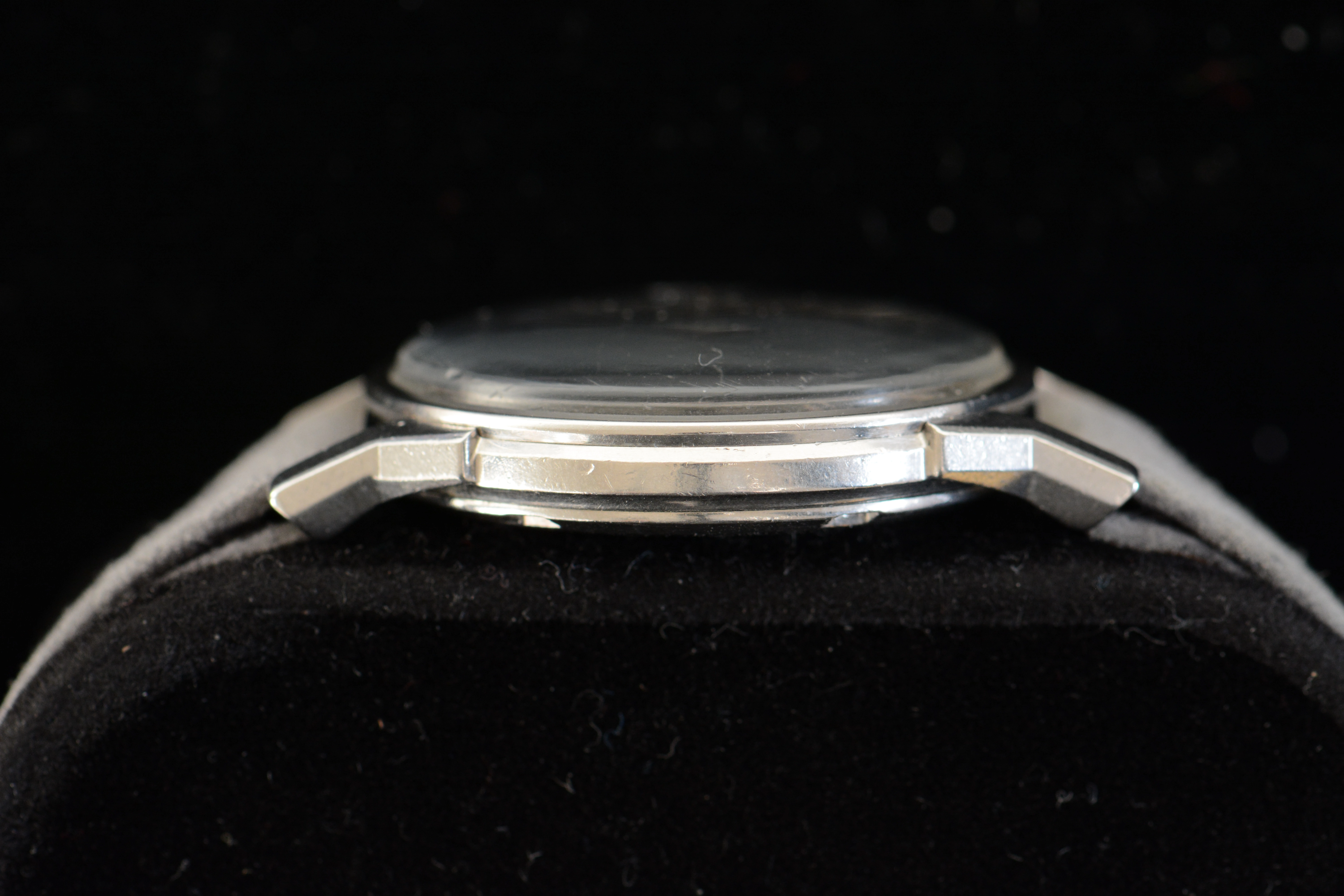 Case: Stainless steel case dog-leg case. It has seen a polish or two, but the facets on the lugs are still visible. There are scratches on the caseback from prior case openings (not by me).