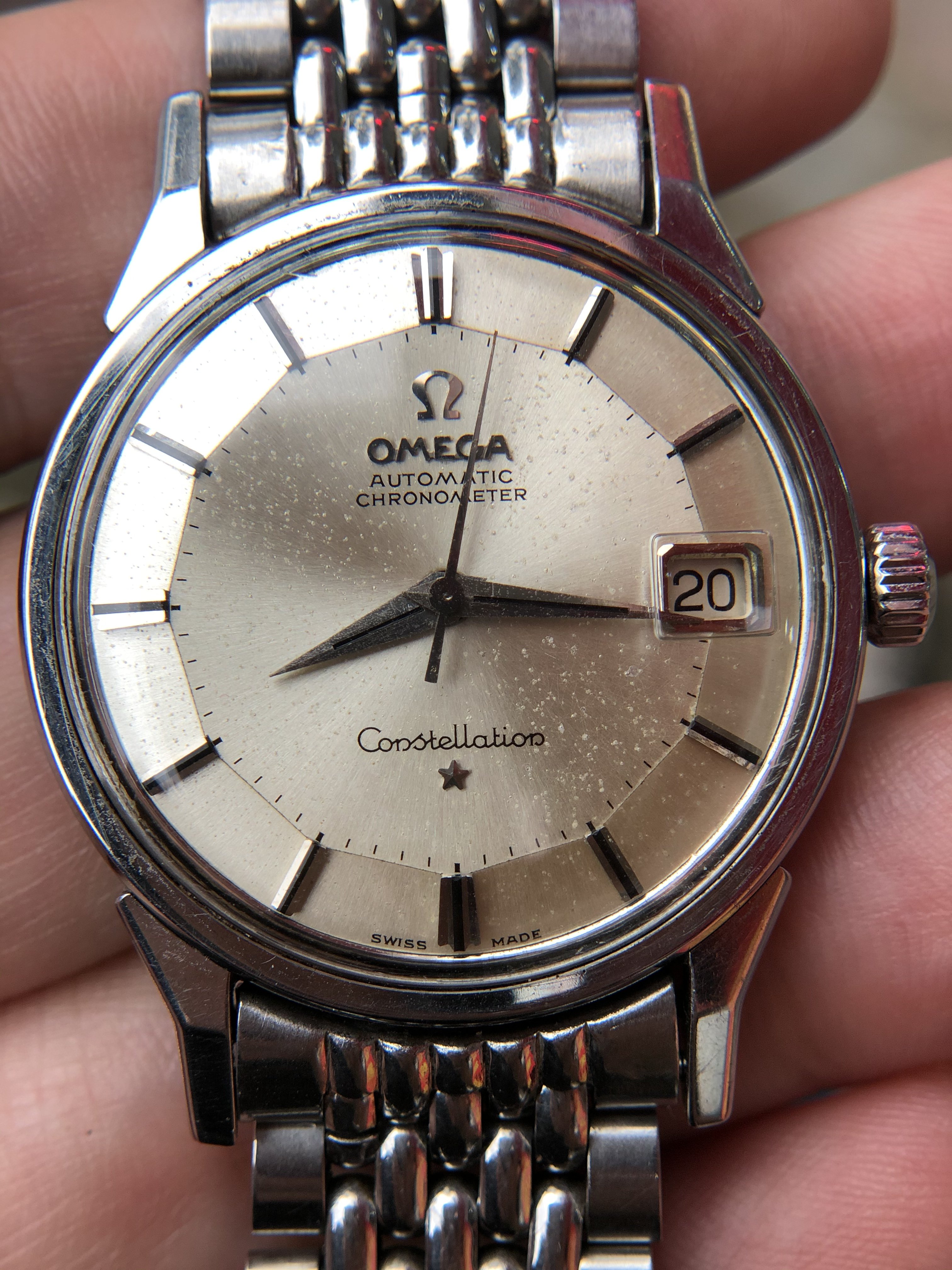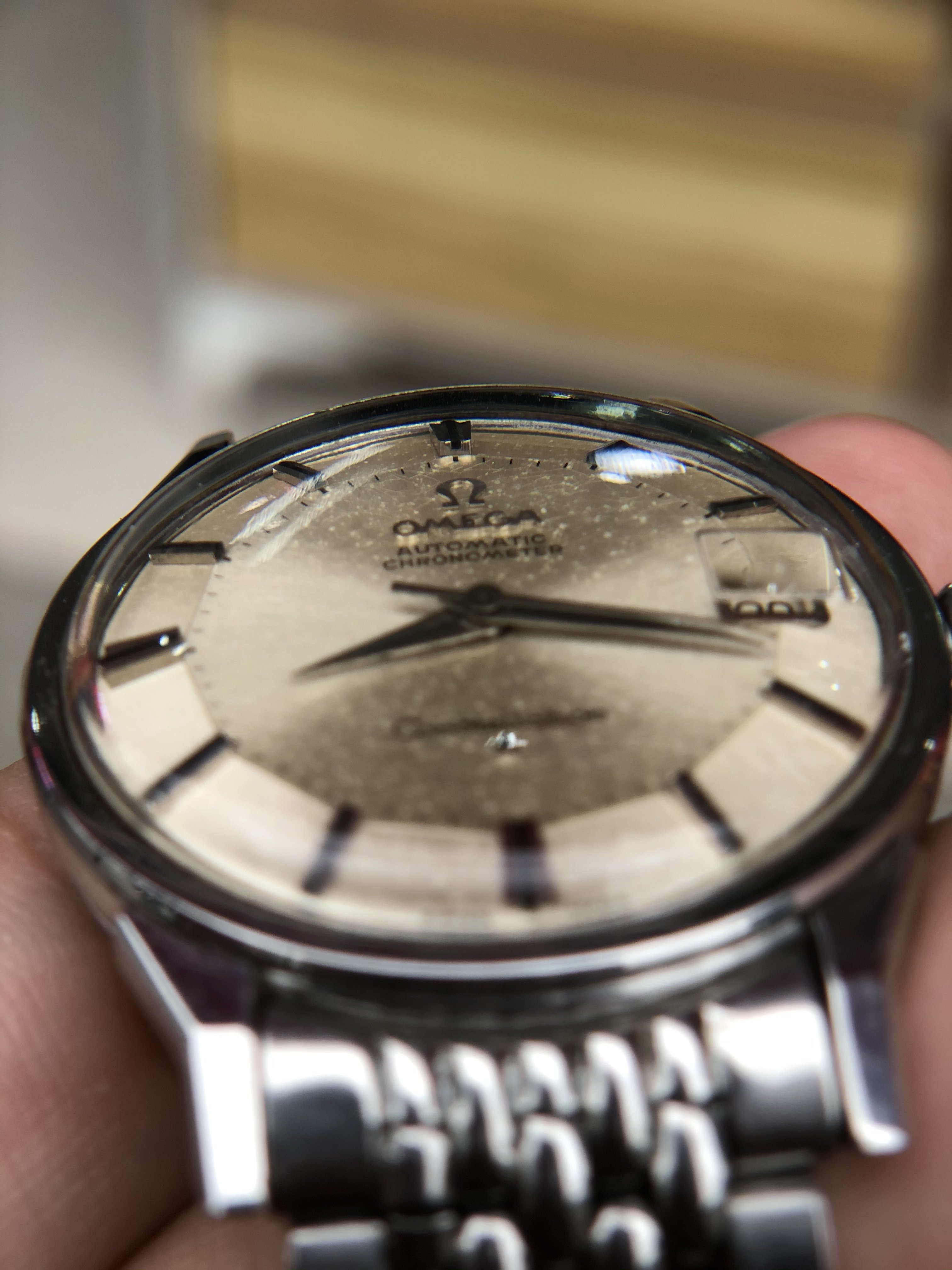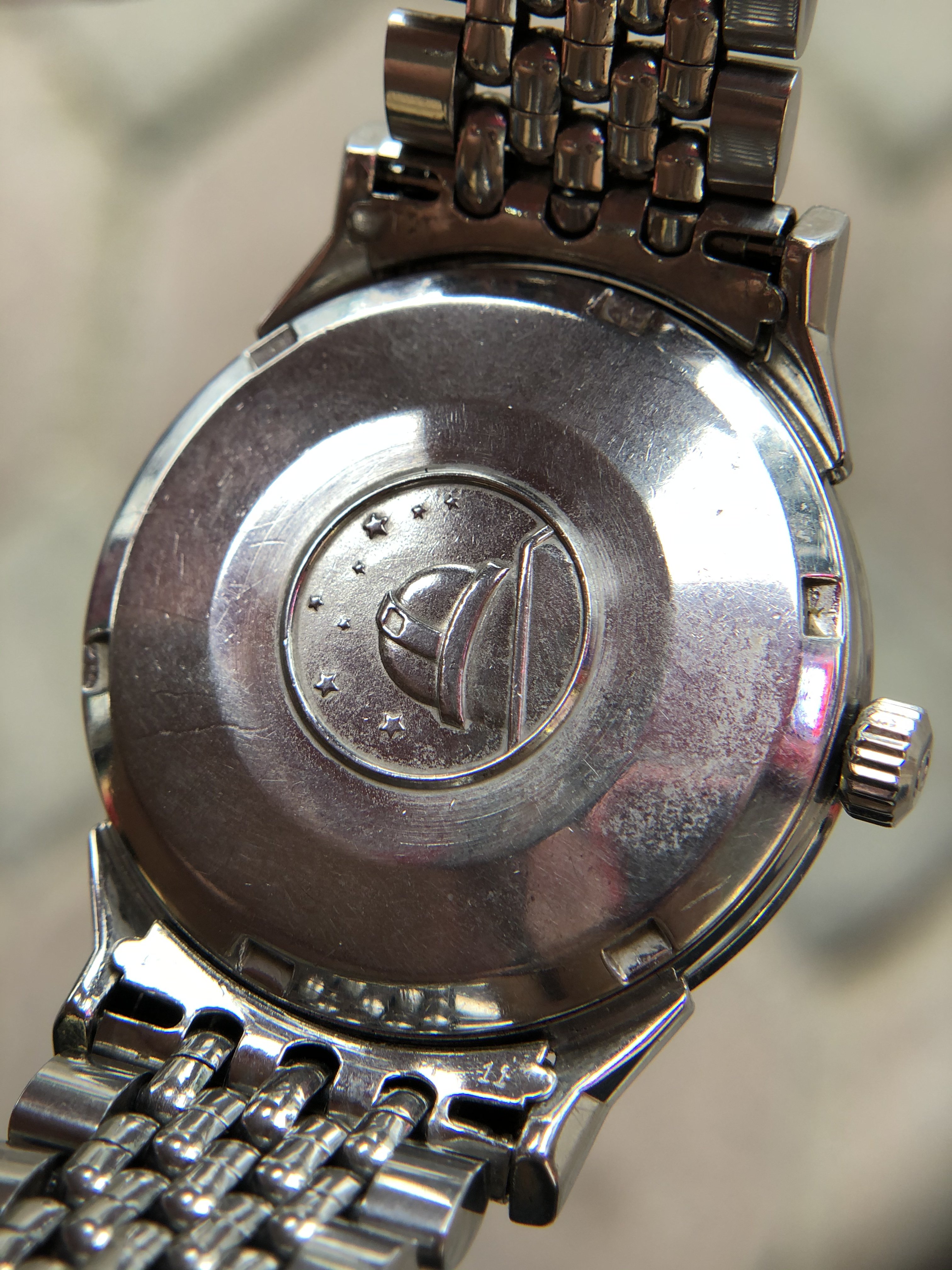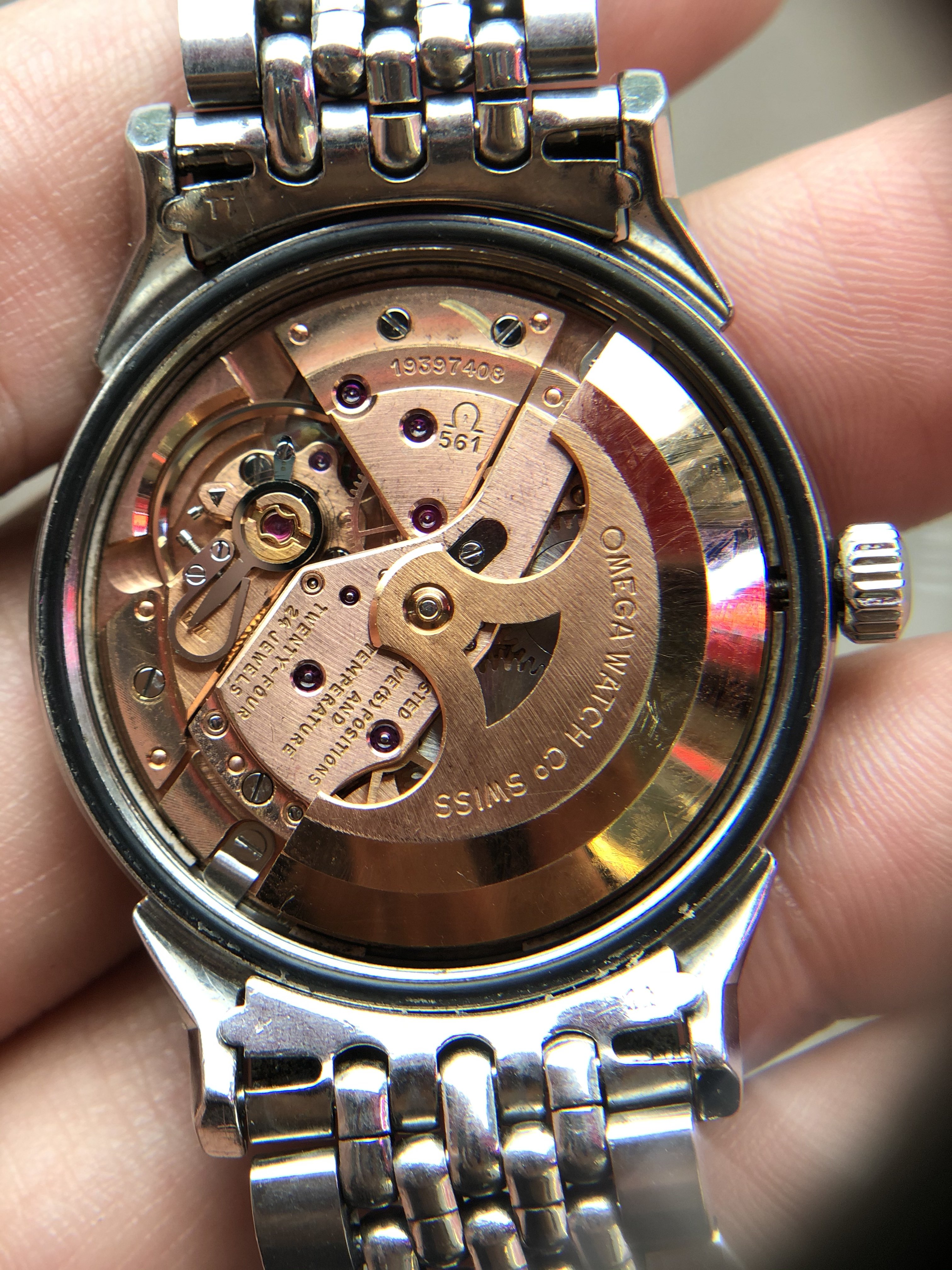 The movement is original Omega Cal. 561 freshly serviced. Serial Number 19mils, dated the watch to 1962, which I think is correct time frame for 14902.