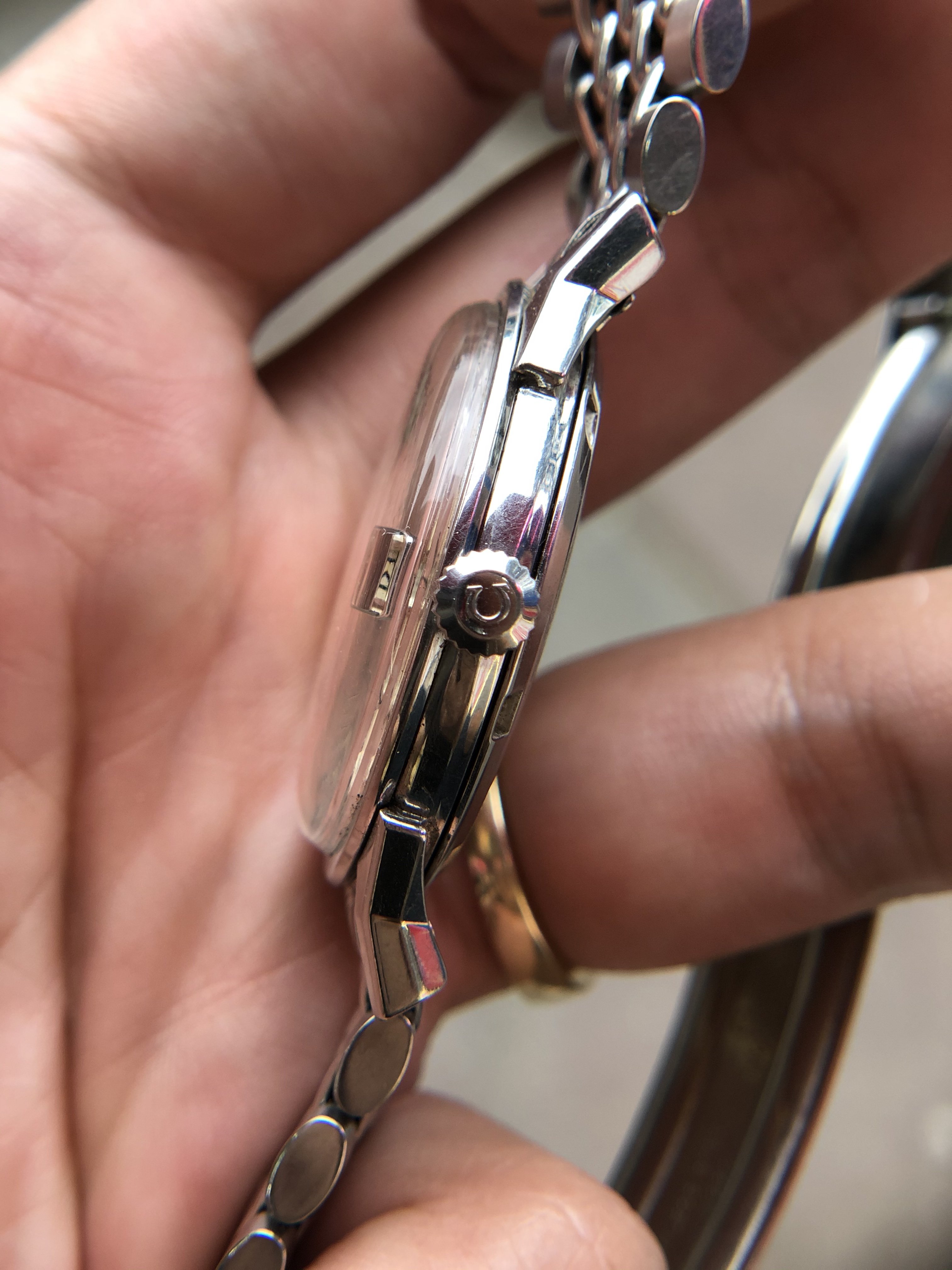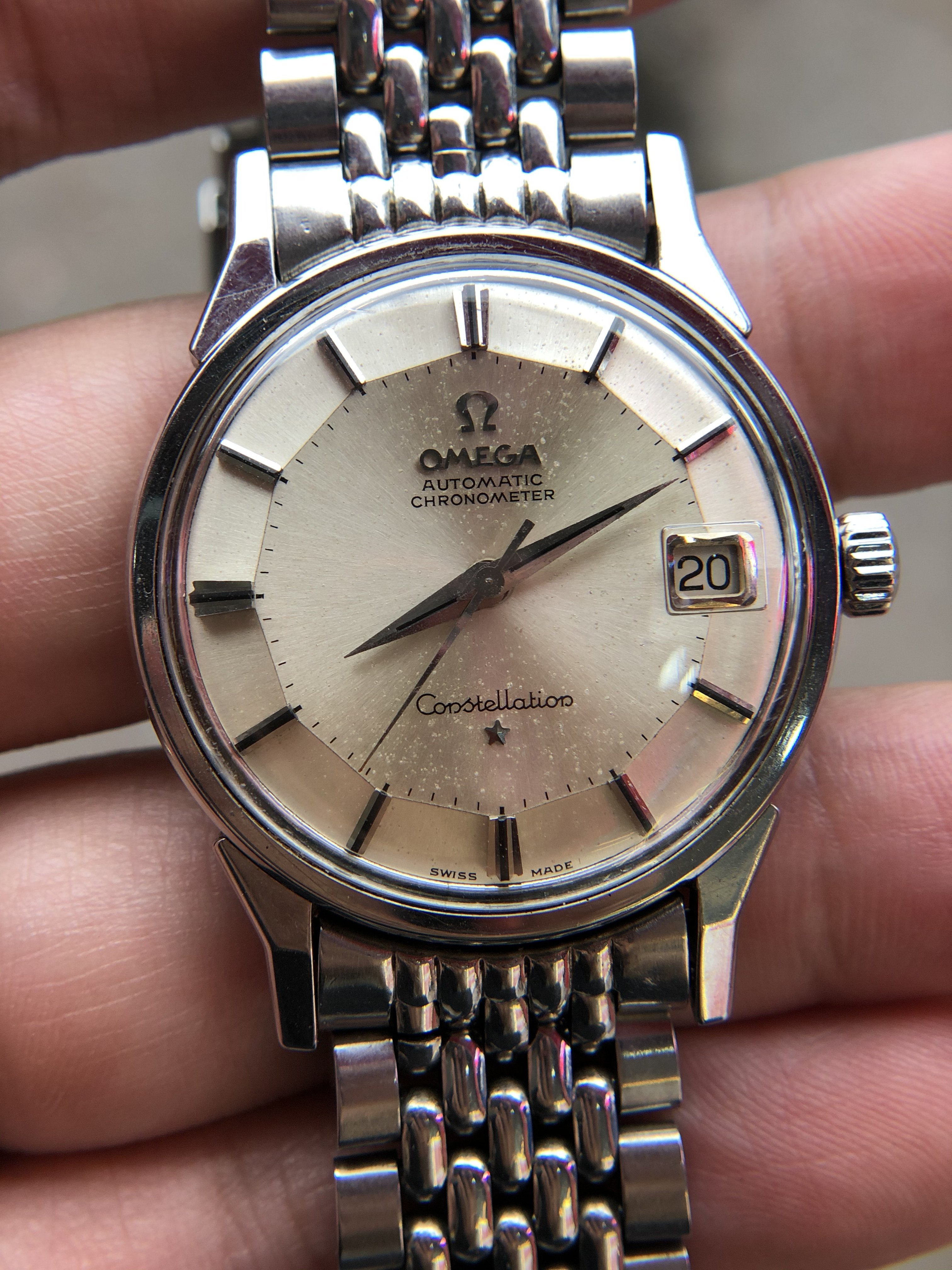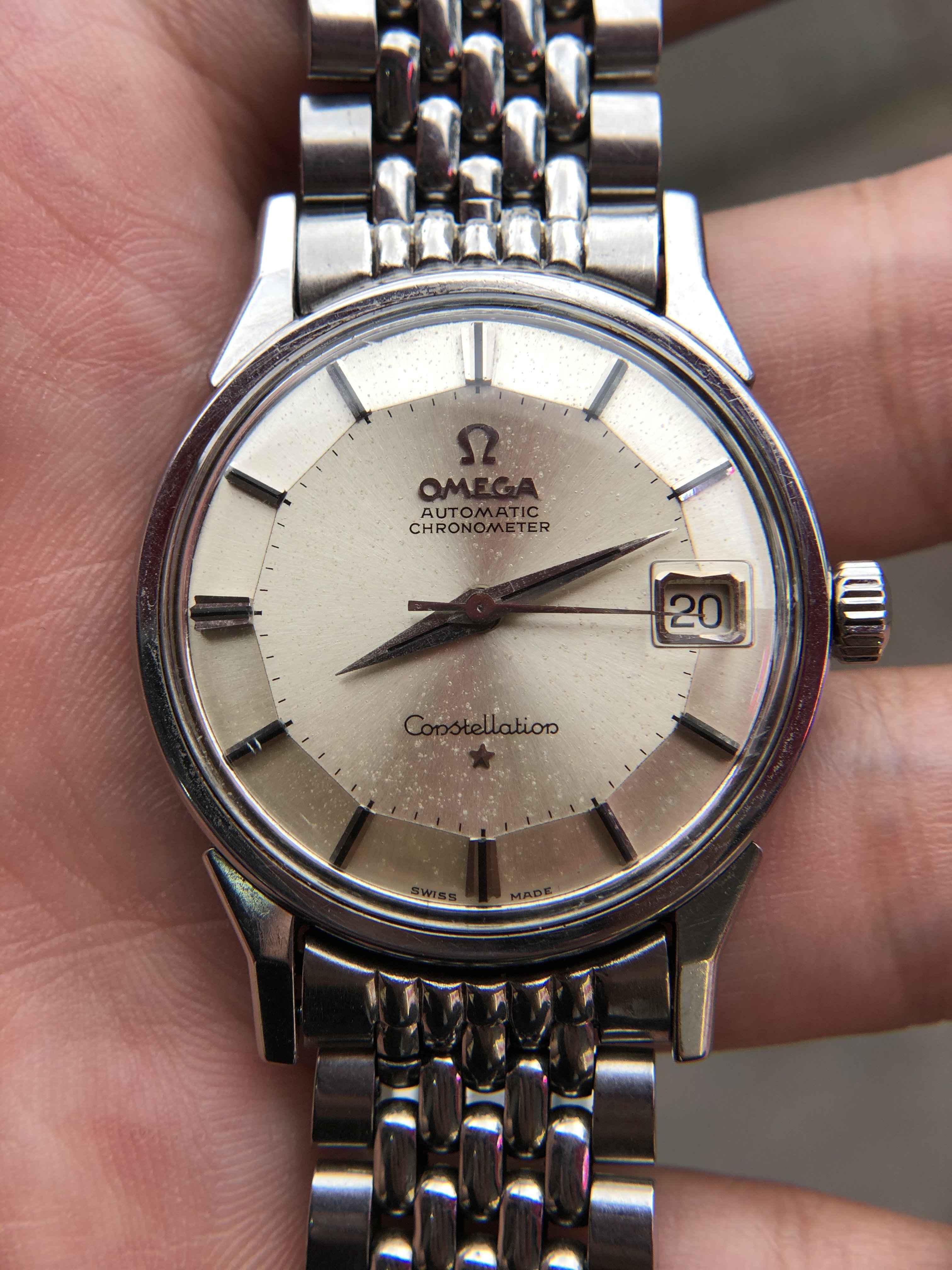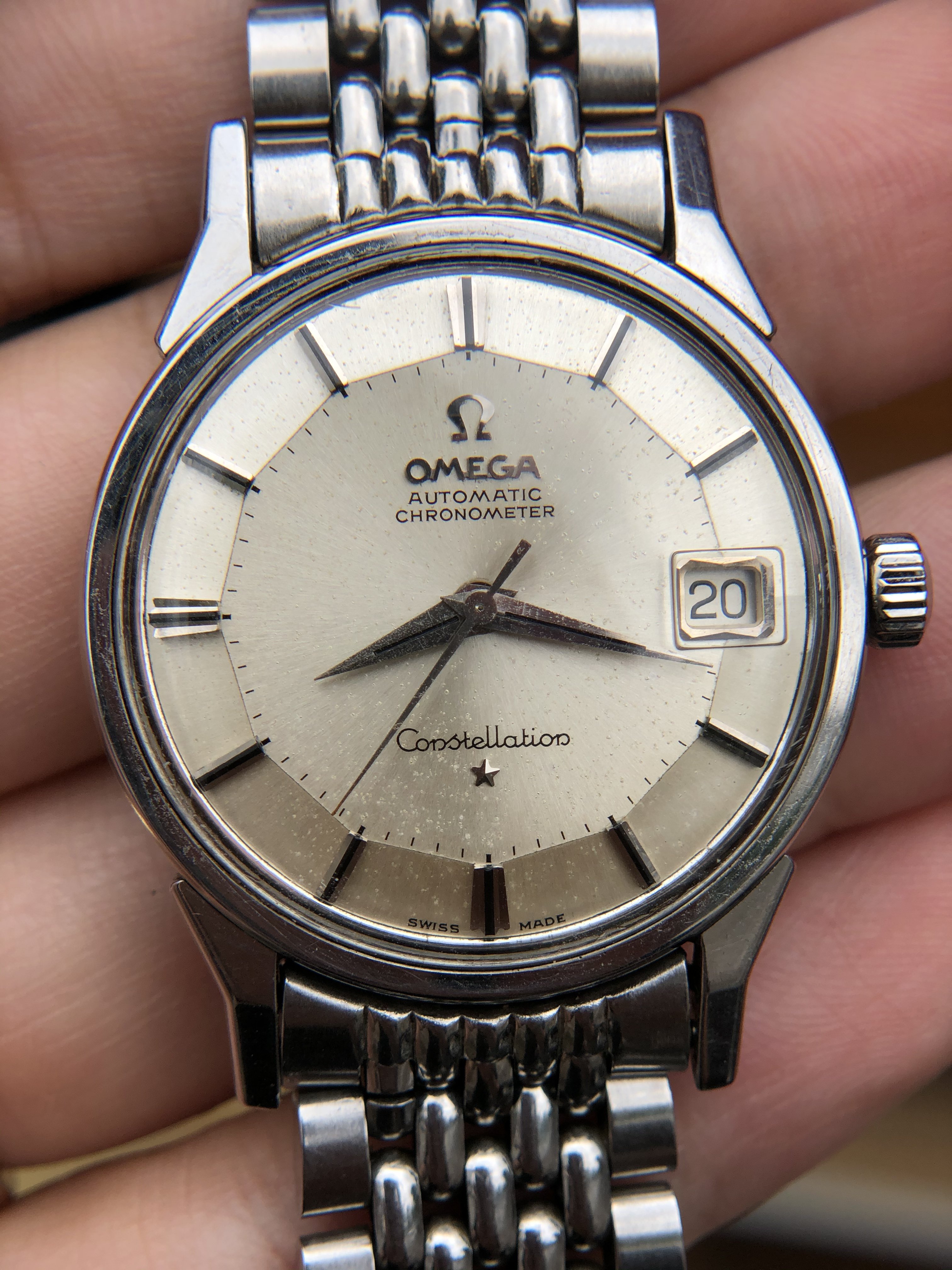 The movement is original Omega Cal. 561 freshly serviced. Serial Number 19mils, dated the watch to 1962, which I think is correct time frame for 14902.