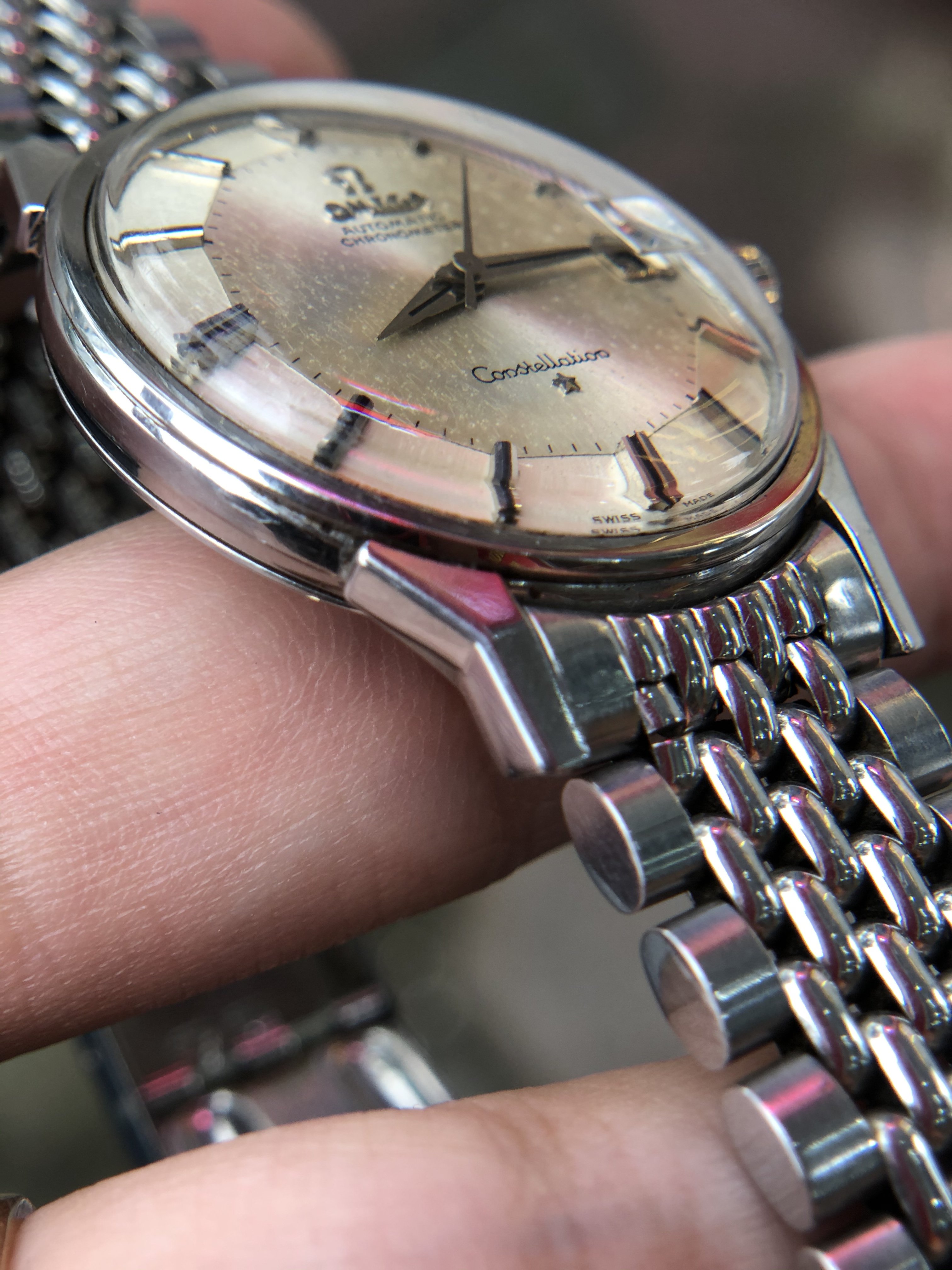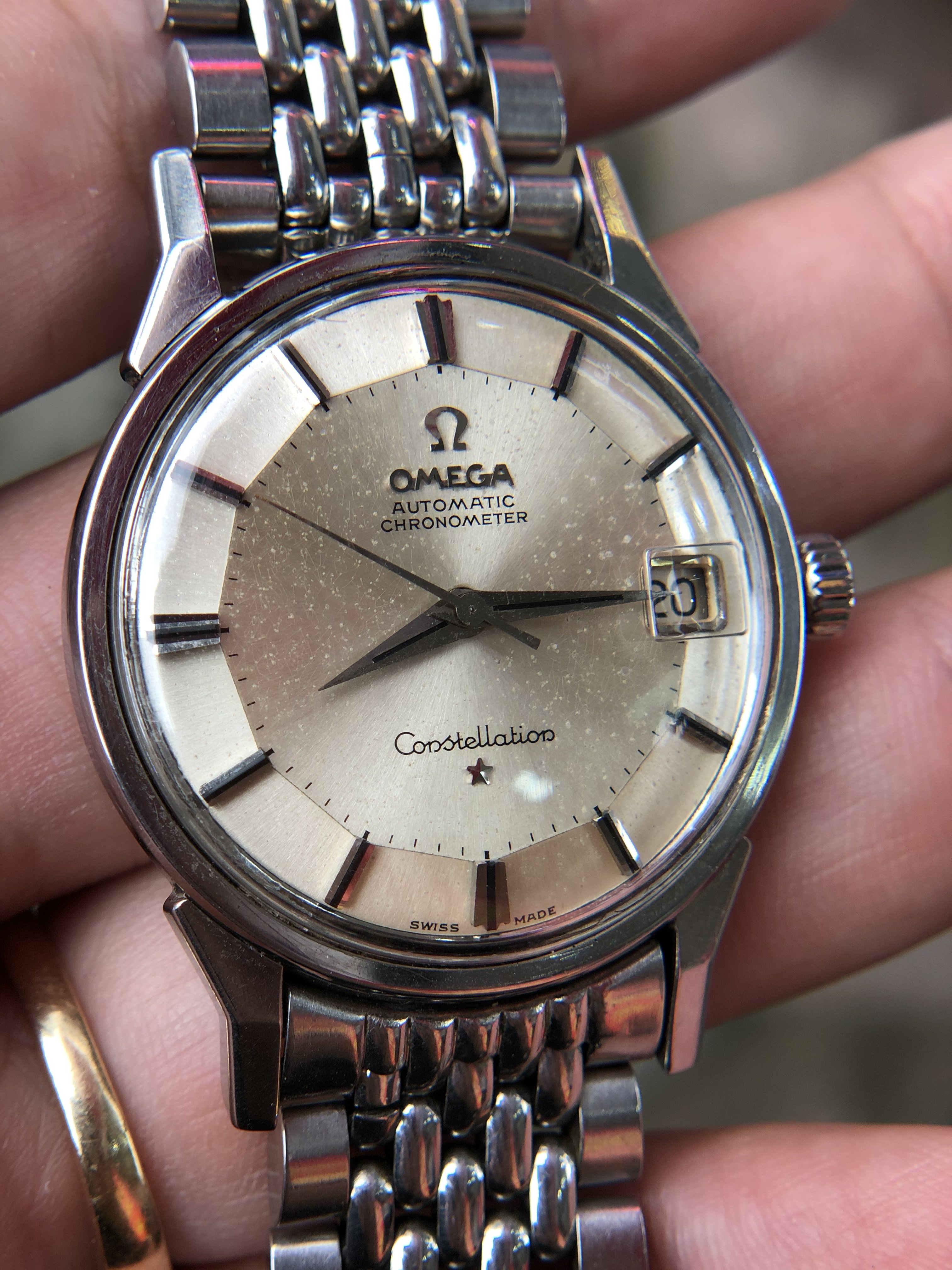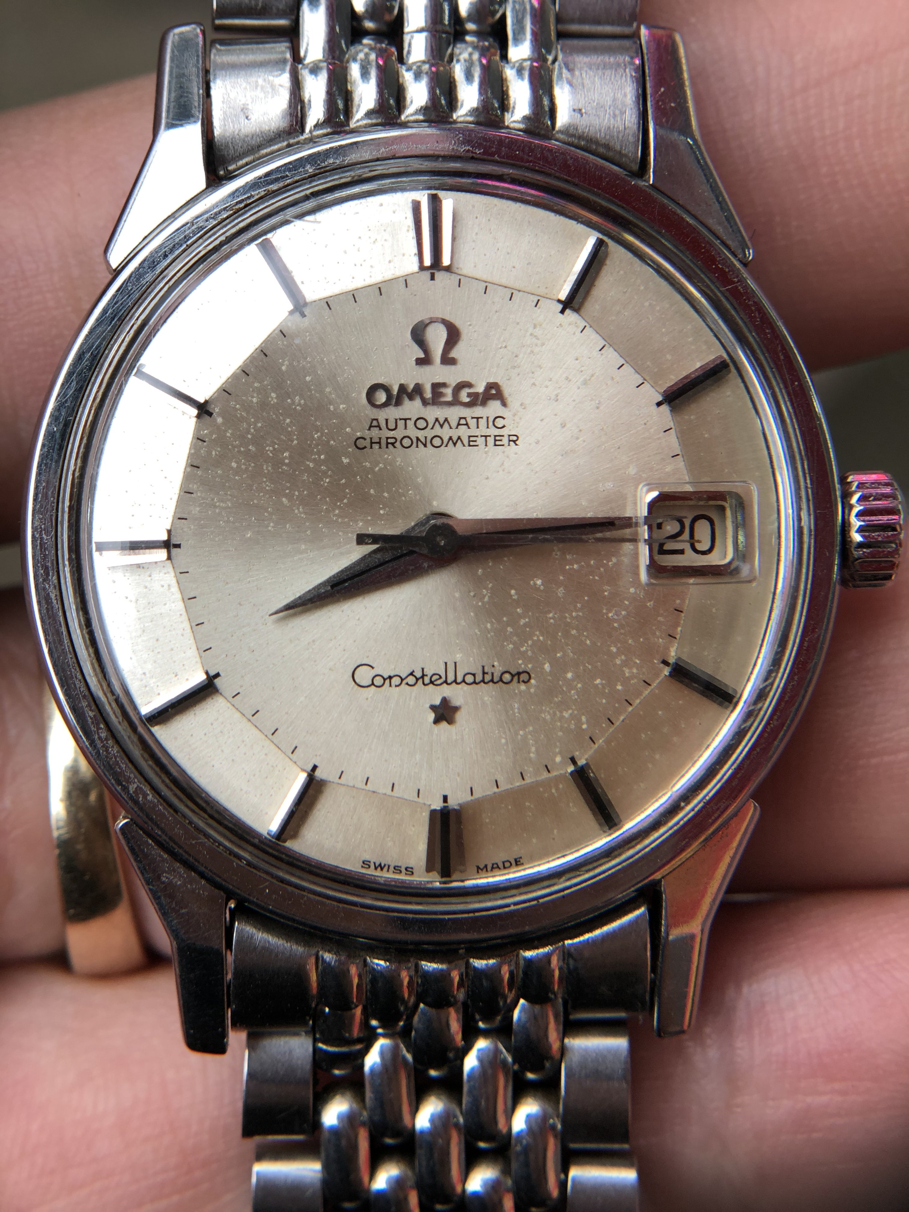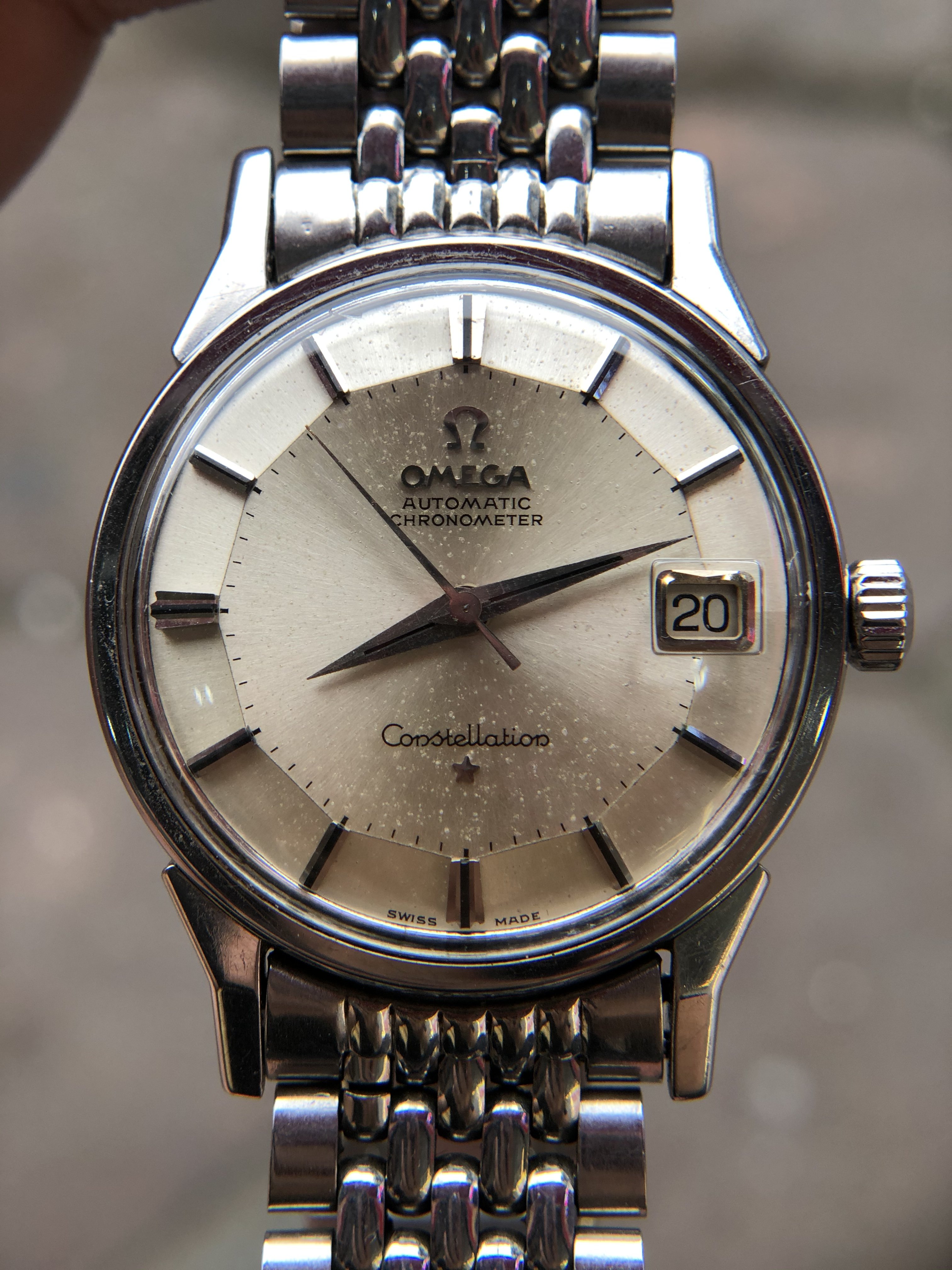 The movement is original Omega Cal. 561 freshly serviced. Serial Number 19mils, dated the watch to 1962, which I think is correct time frame for 14902.