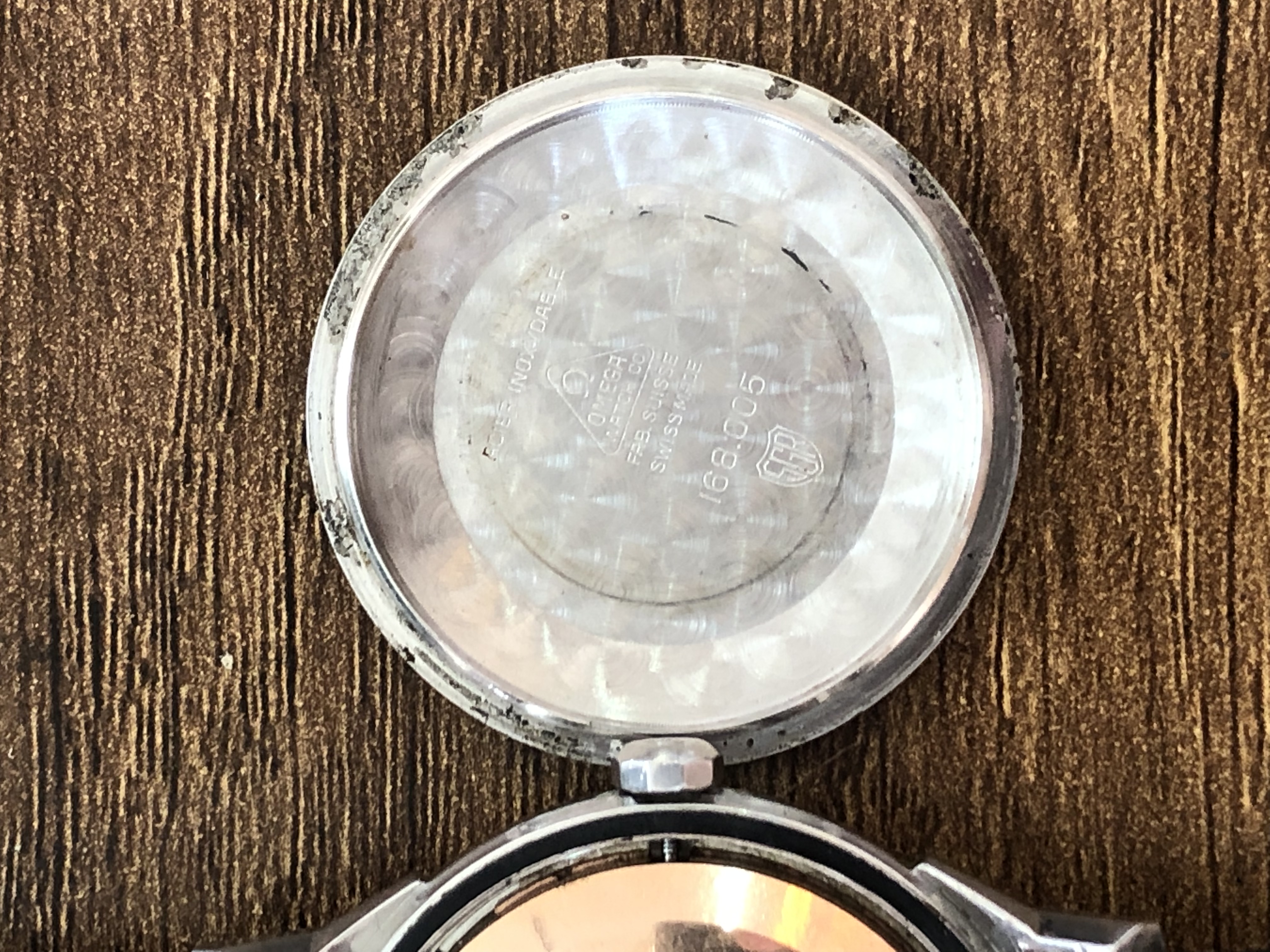 - Case: Original sharp case, all edges are well defined, probably unpolished, with tiny dings/scratches here and there. The Observatory symbol on the back is well visible.