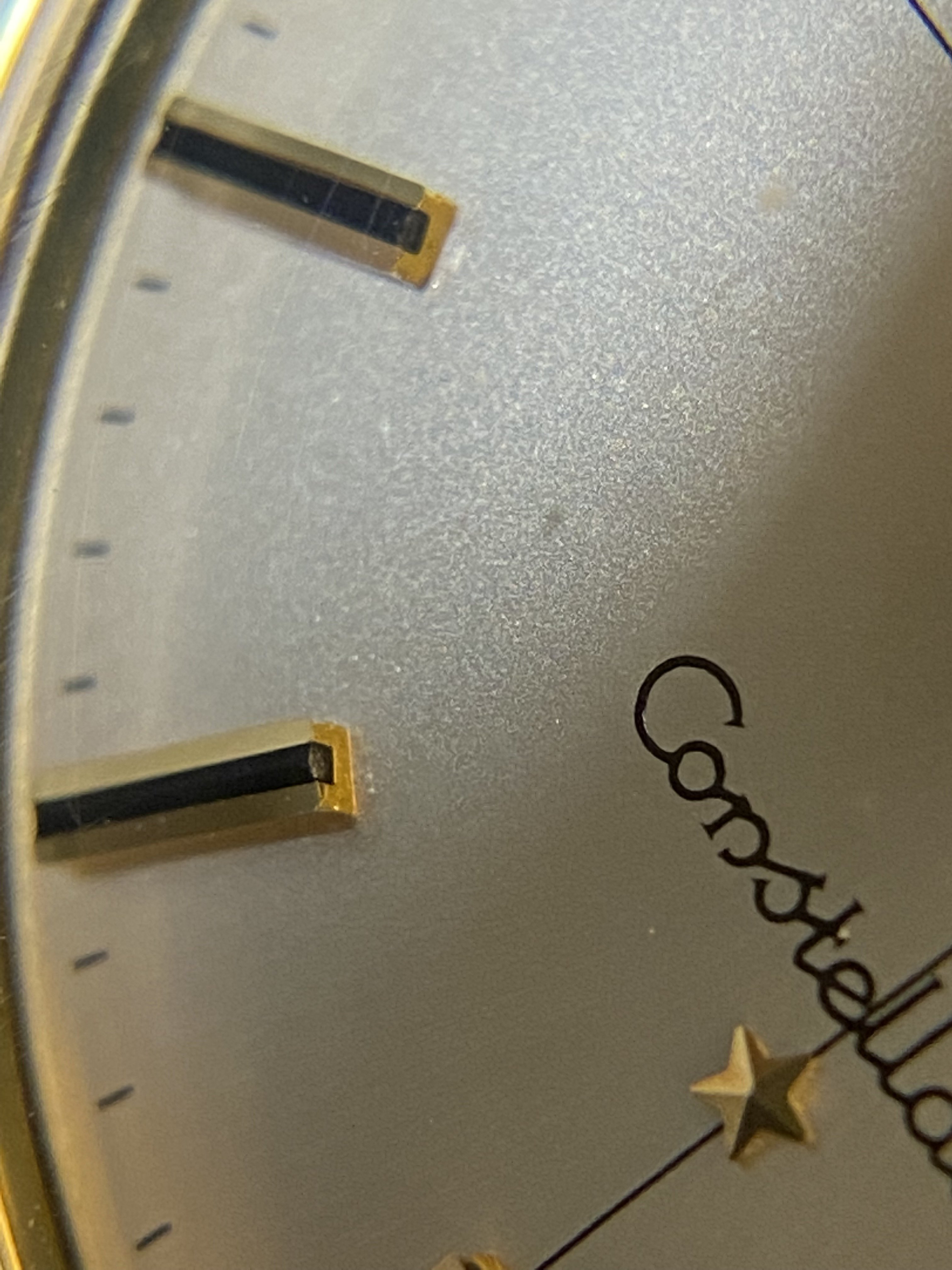 Case: Gold cap and in lovely condition. Looks as if it's seen a sympathetic polish. And someone did a pretty decent job as all bevels and chamfers are good and the 8 stars on the case back observatory are in good shape. A few superficial scratches on case back as seen in pics