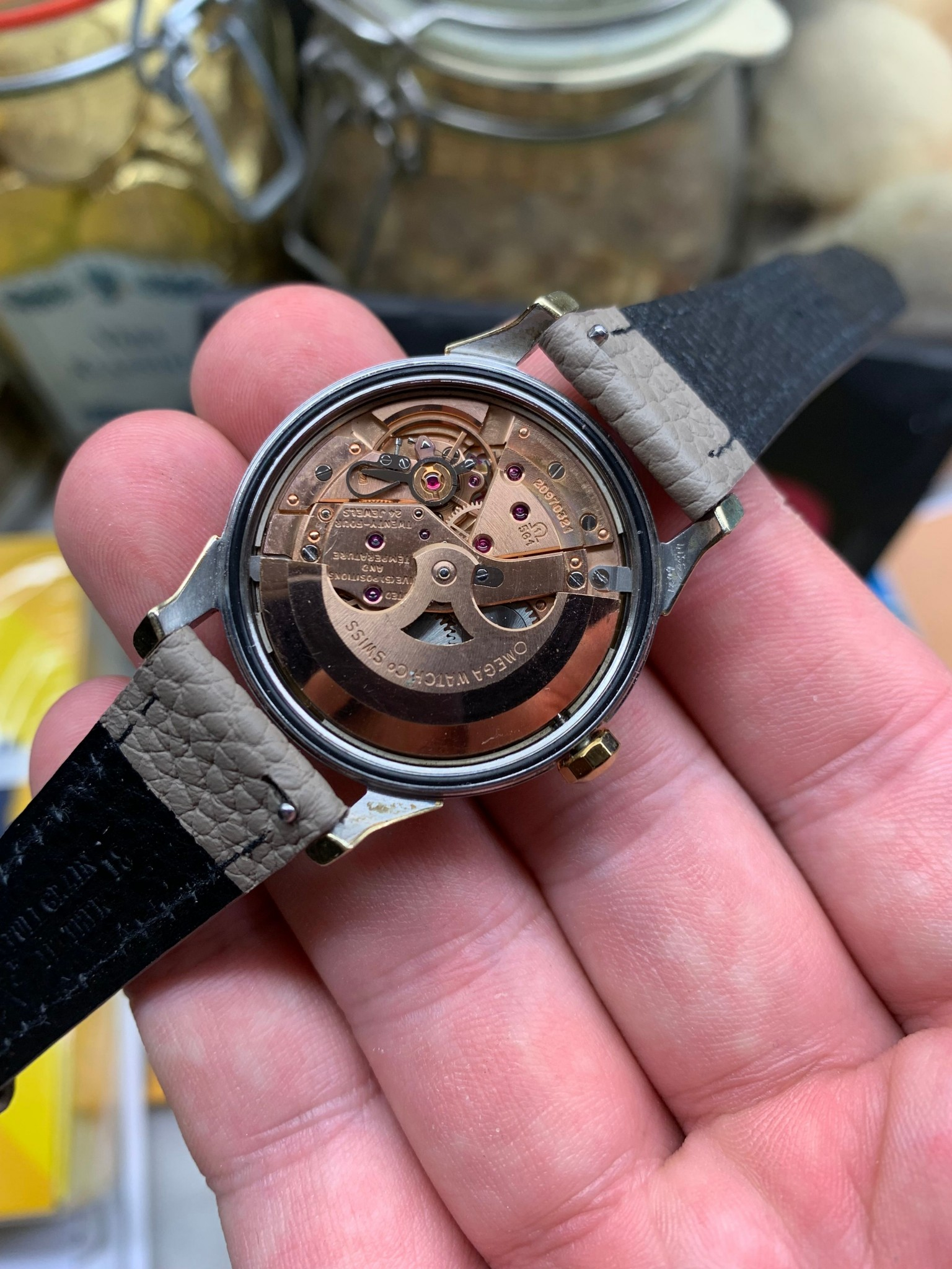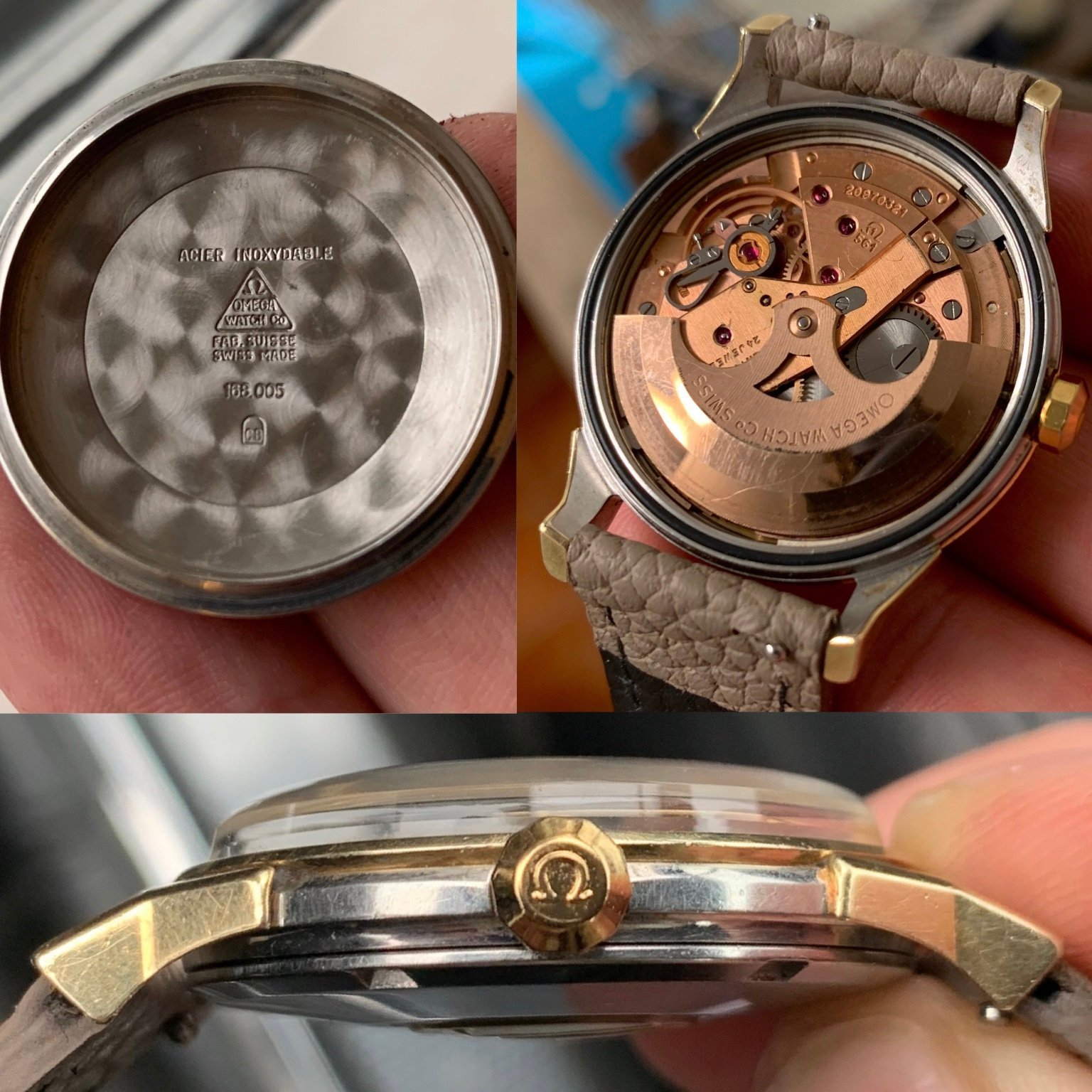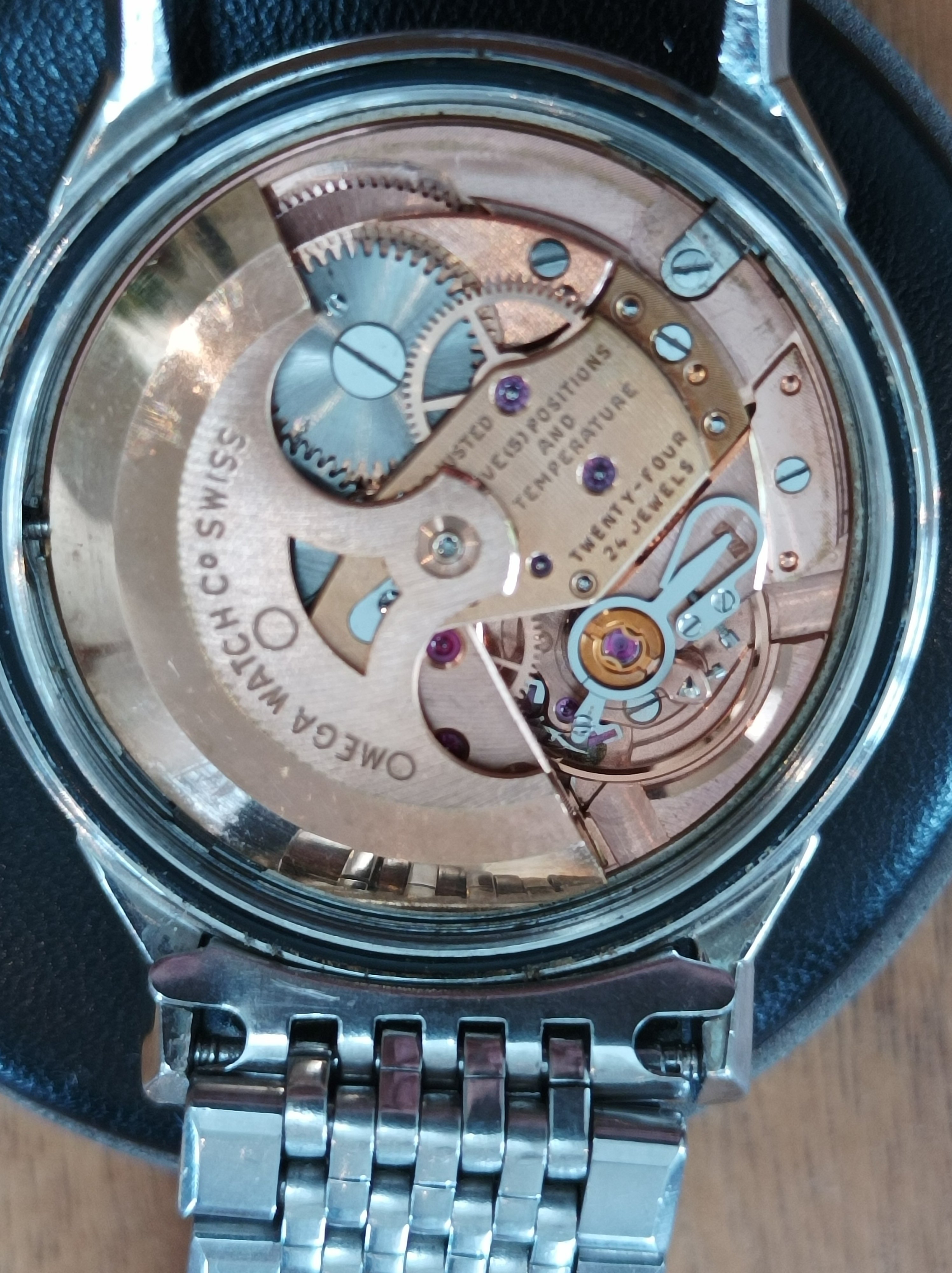 The movement have some scratches but I guess it looks ok? The crown seems to be original; first I thought the color was a little different compared to the case but I'm not certain that is the case. The buckle is non-omega (new). Will try to find a good replacement if I buy it.