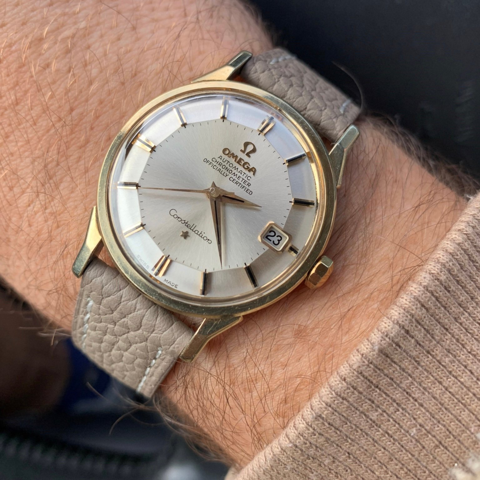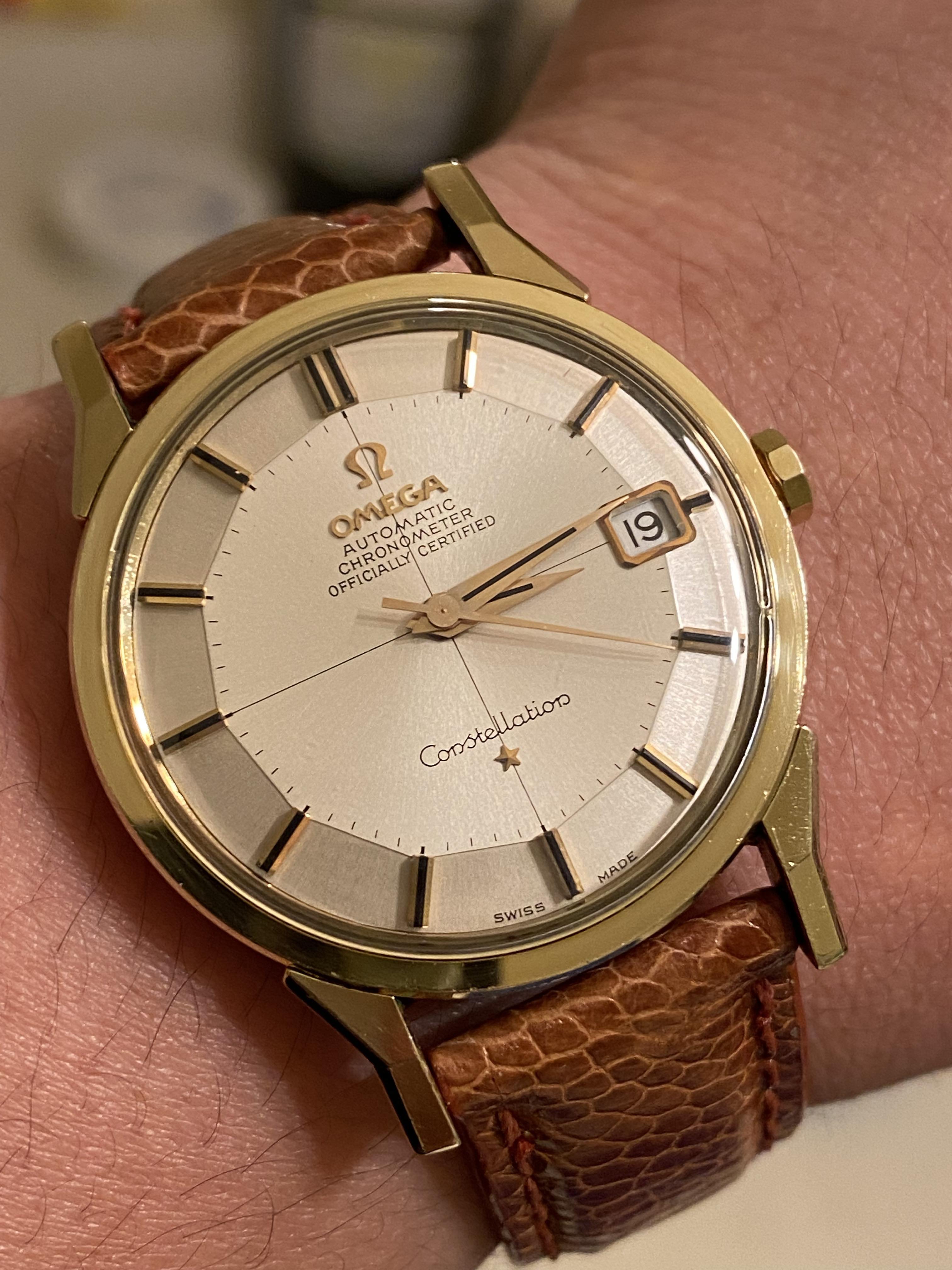 1. Case: I think the case seems to be in ok shape overall. The doglegs though are not razer sharp, not even close. I guess it's harder to find when it's softer gold and not steel. This is something I think I can live with. The caseback looks fine, no major scratches from trying to open it up which is very common to see. Some rust?/gold on the back of some lugs? The medallion has all the stars present but unfortunately an ugly looking scratch on the observatory. To me it seems that there is no overpolishing going on, maybe never polished? I guess overall I would give the case a 3/5.