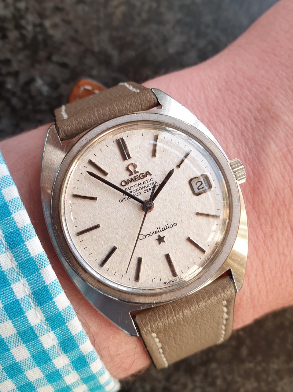 Cosmetically, the Constellation presents itself well with a sharp case with intact circular brushing and bright facets. The discreet sunburst effect on the bezel is still evident. If it has been polished in the past, it has been done well. Crystal and crown are Omega-marked.