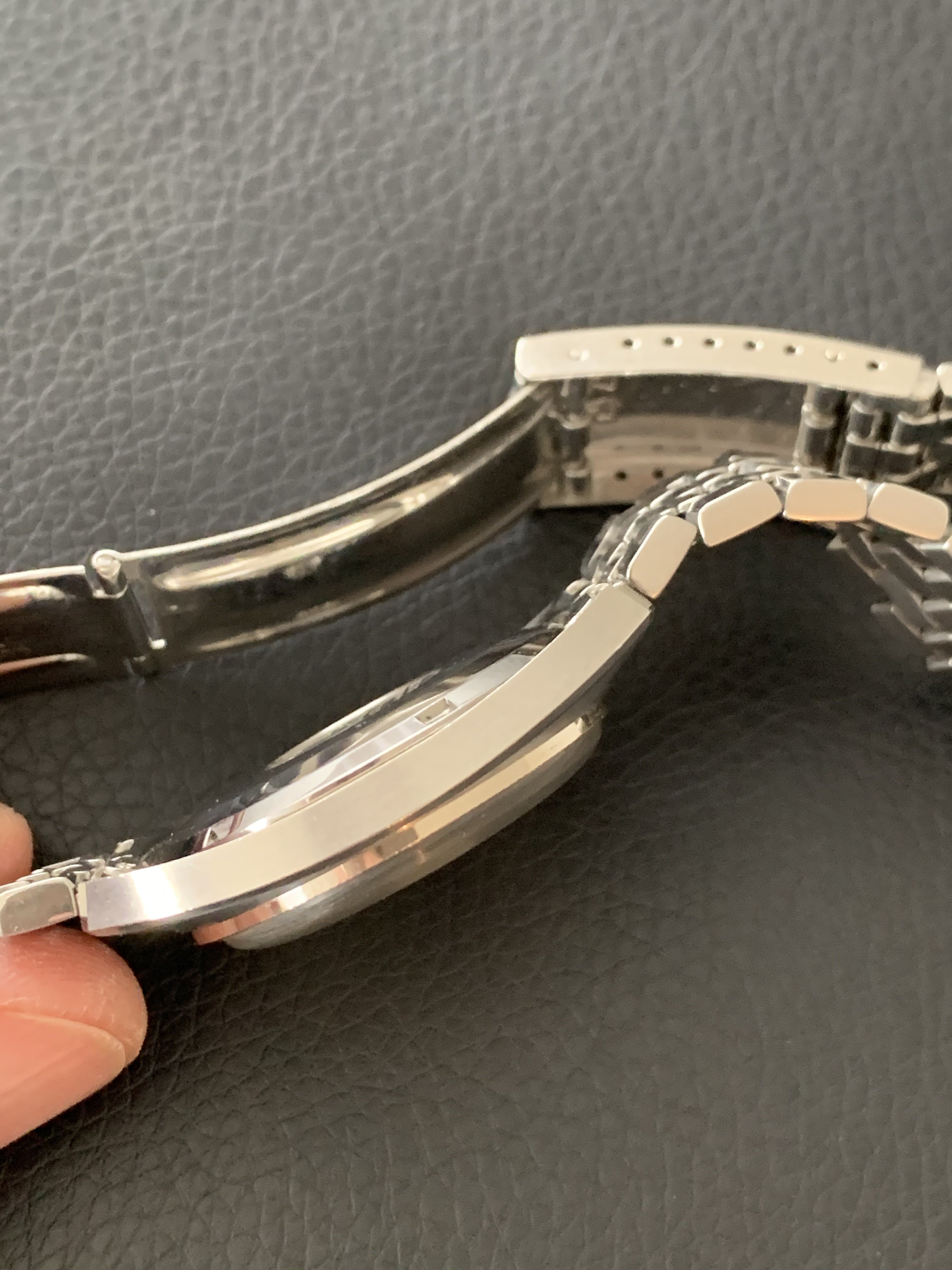 ·I received the watch today. It looks great and the bracelet is already perfectly sized for my wrist. There is no scratch in the crystal.
