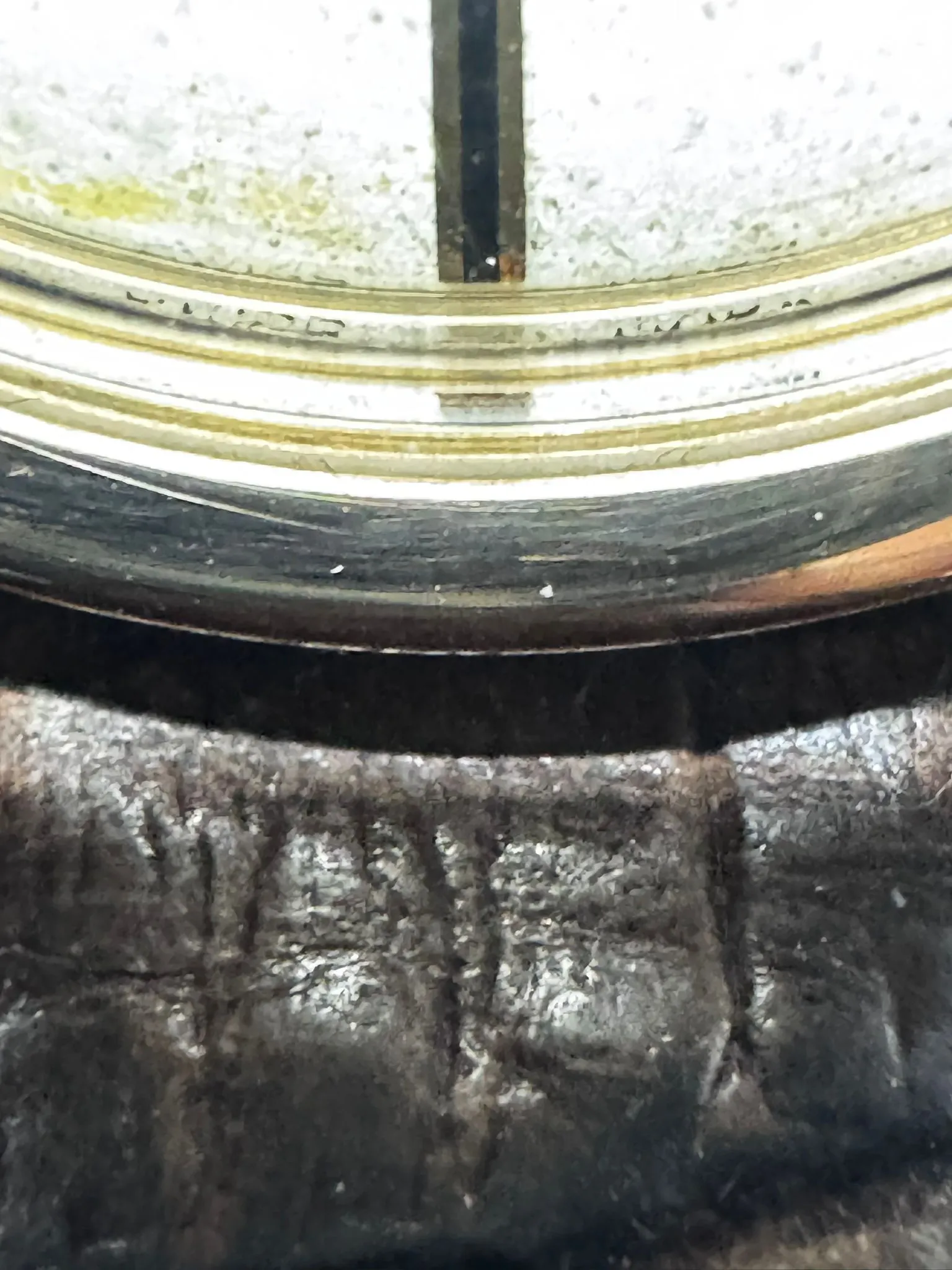 On most photos the “SWISS MADE” at 6 o’clock is barely (or not) visible, yet on the last photo it appears very faintly. Could this simply be angle/lighting and acrylic-crystal distortion, grime at the dial edge, or is it a potential redial/retouch where part of the print has faded or been polished away? I’d appreciate your take.