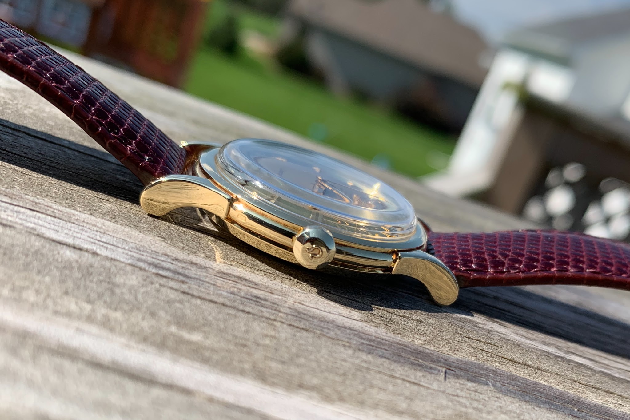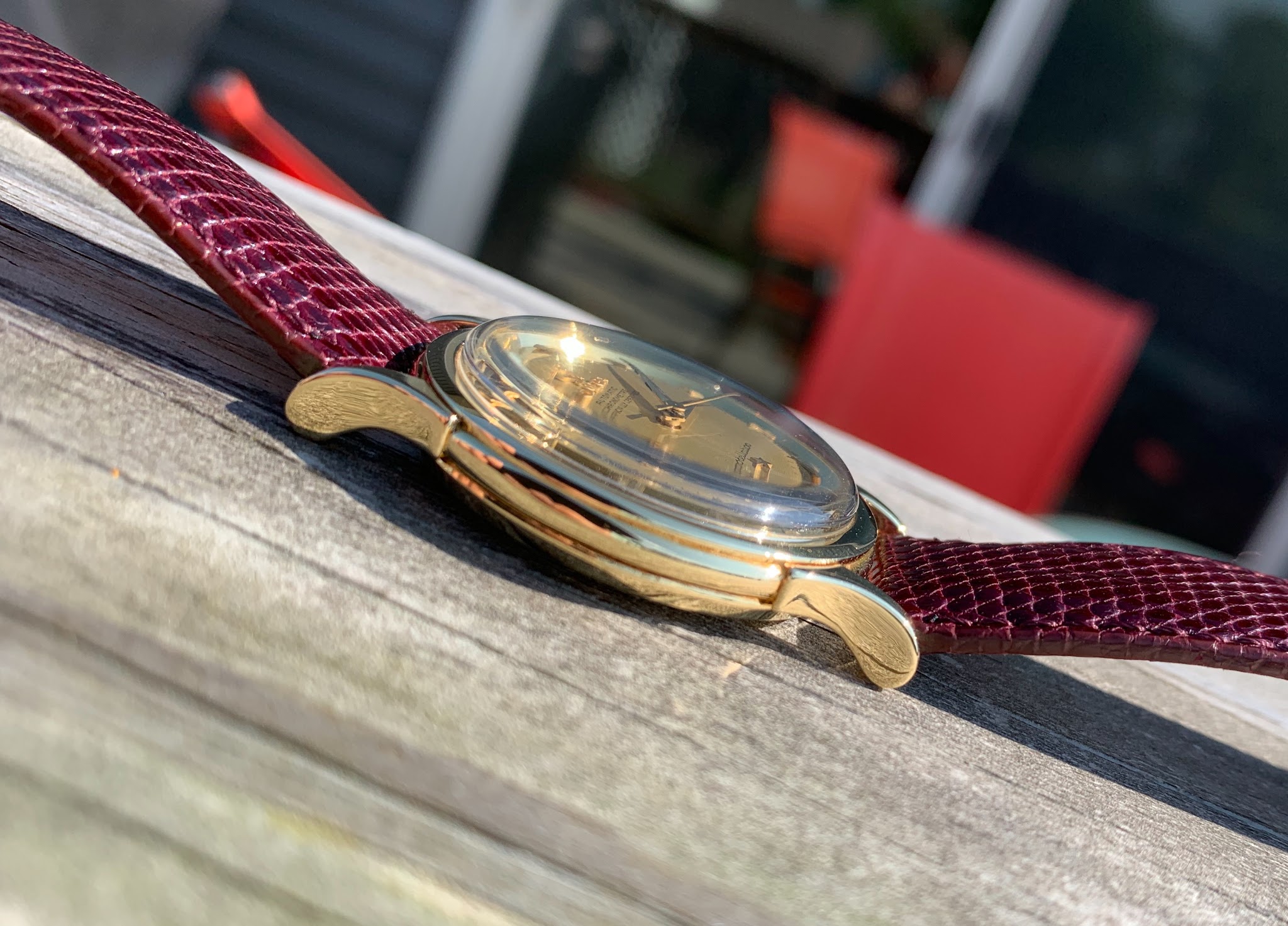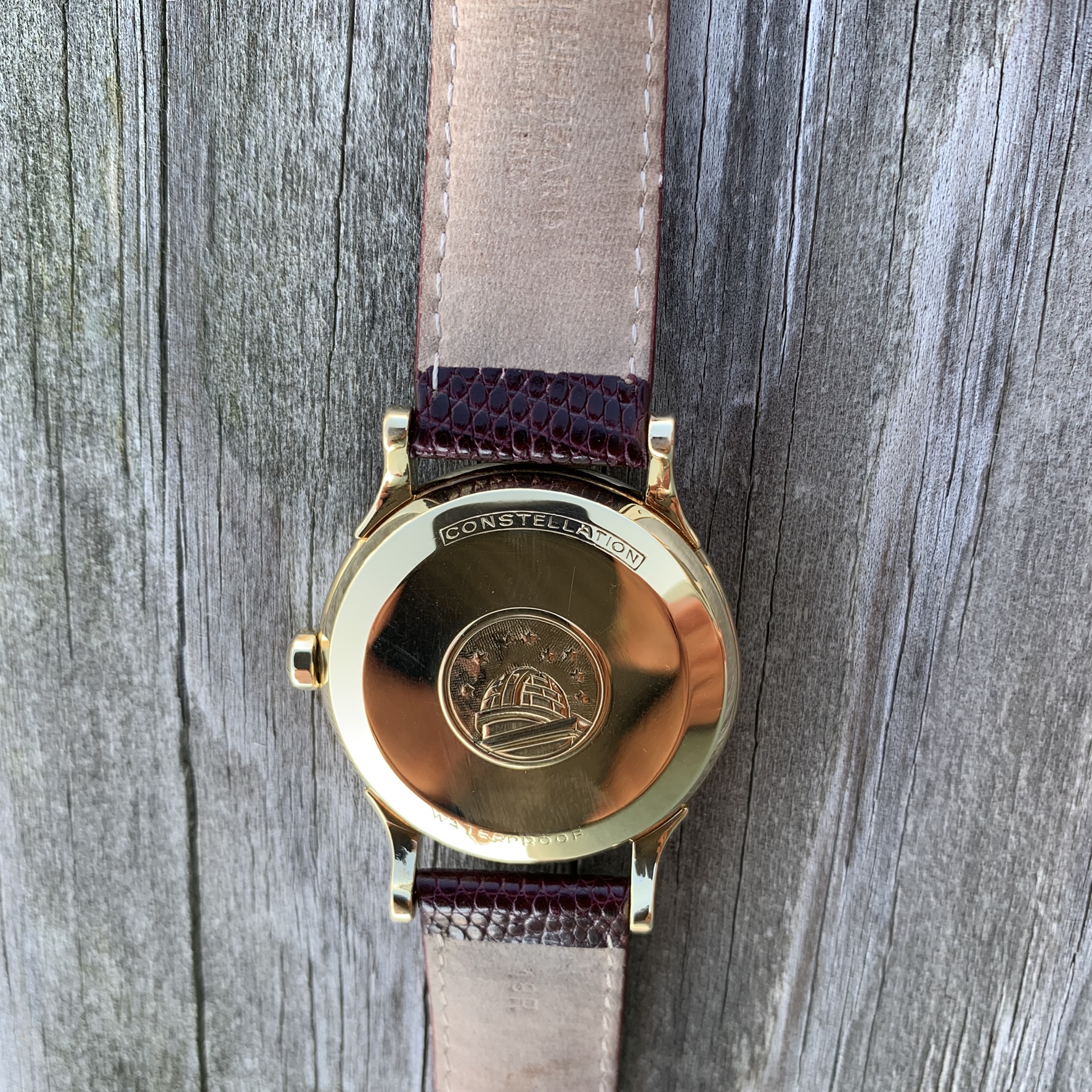 ·Up for sale is my very nice 18K 1954 Constellation DeLuxe reference 2799 with a caliber 354 (the more sought after bumper movement). I purchased this in February 2014 from a well known Forum member who had this to say when he was selling it, “Simply put, you’d be hard pressed to find a better example than this one, and the very small number of guys that have managed to secure a better specimen aren’t parting with theirs.” The watch was serviced a short time before I bought it and it runs and operates as it should. It will come on nice dark maroon lizard strap seen in photos. No trades please! I’ll let the pictures do the rest of the talking.