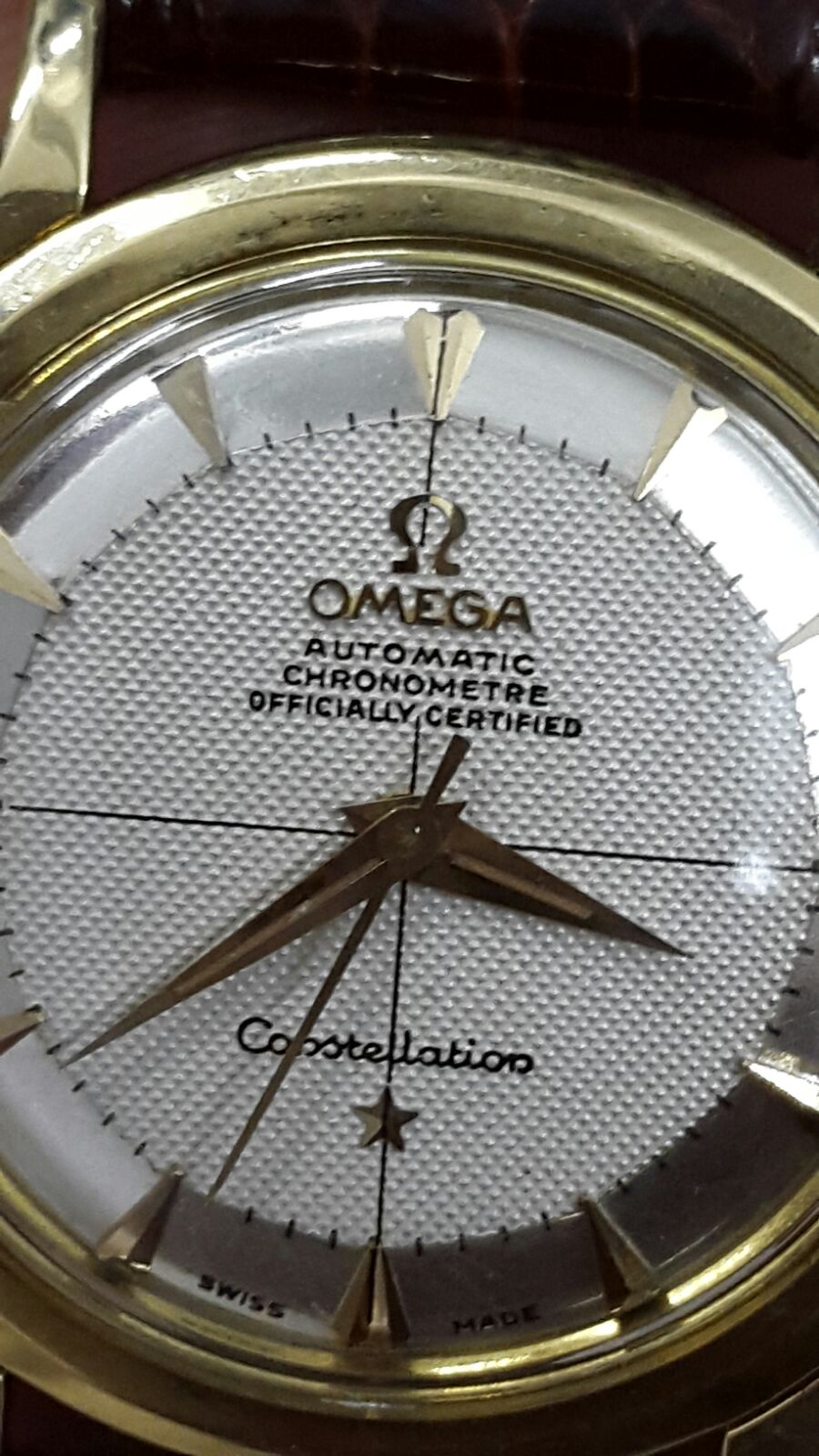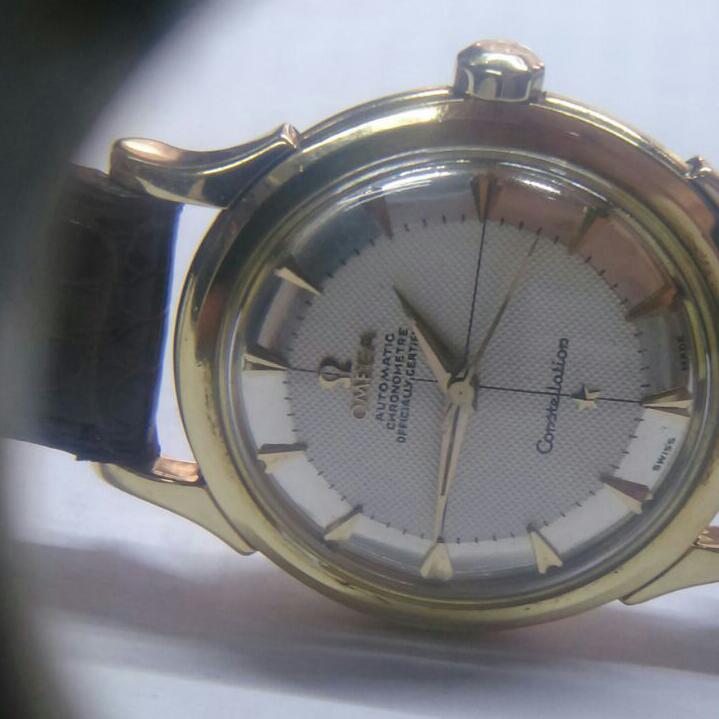 But the watch's most interesting feature is the dial: honeycomeb two tone with silver outer disc looks just spectacular. Omega buckle present.