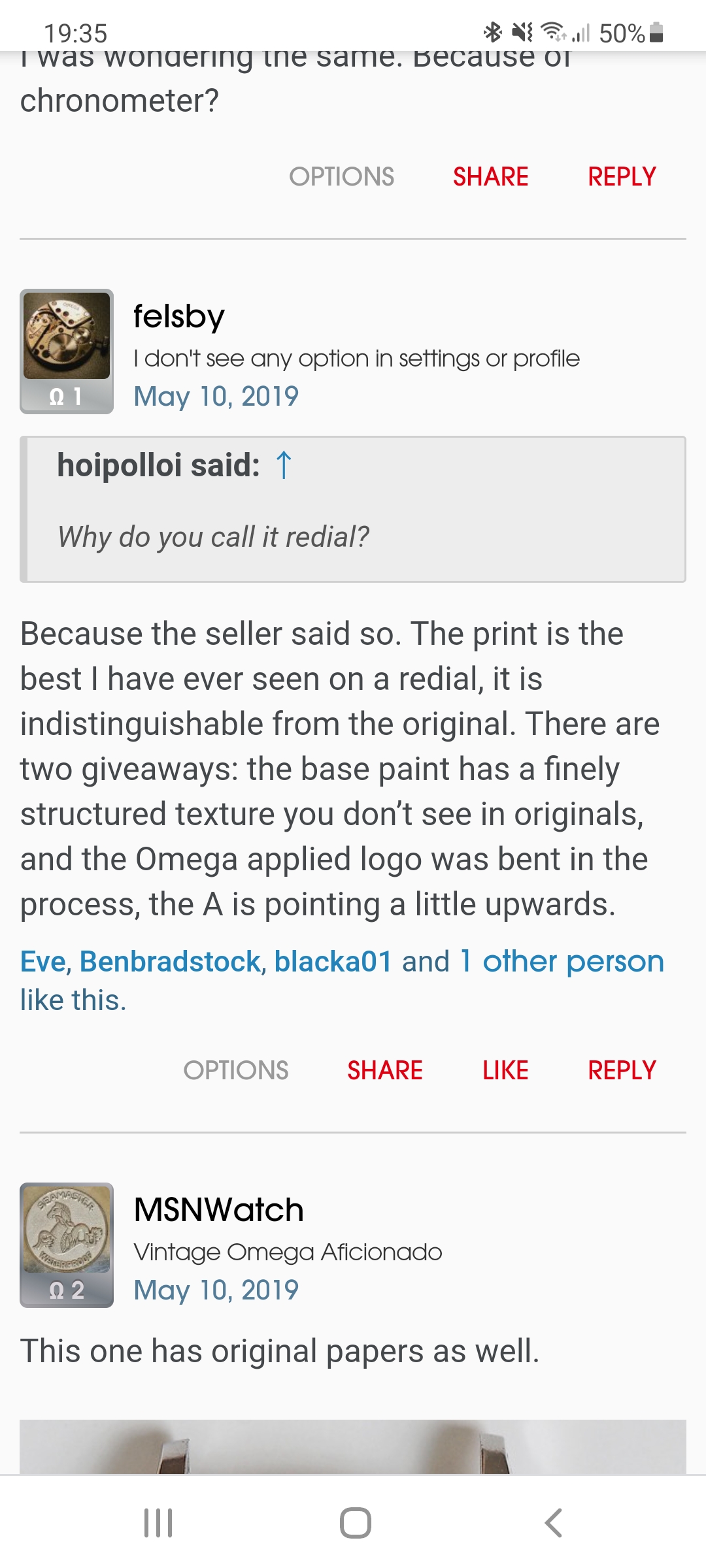 ·I really appreciate the helpful posts. At this point I am thinking that a good dial repaint might be a decent option. I am sure many purists wouldn't accept that in a watch but I think I could. So if anyone can recommend where to look or any good people in the UK and give a ball park idea how much it might cost that would be great. Either that or I just have to accept and embrace the fact that I own the worlds only Omega Officially Chrtified Chronometer!