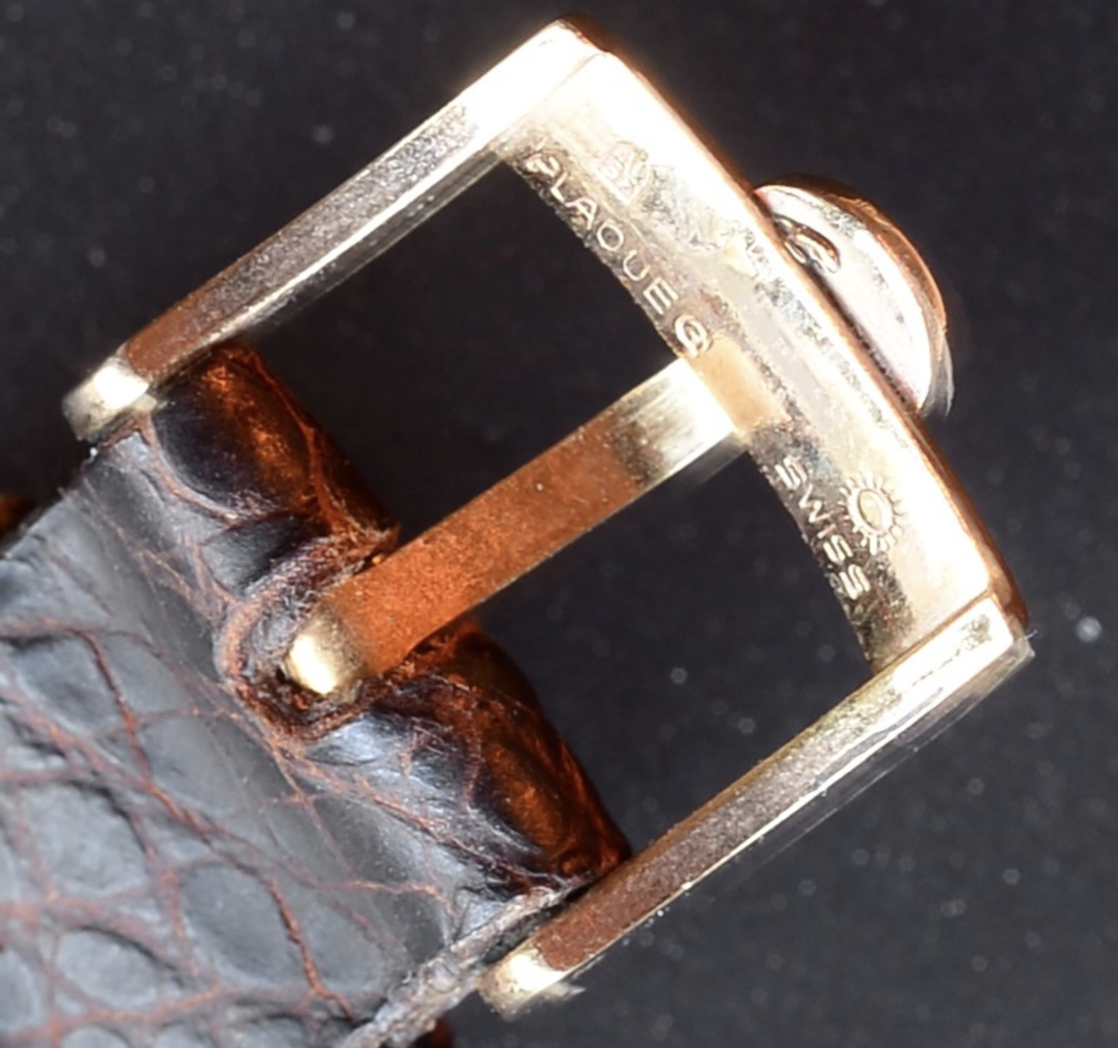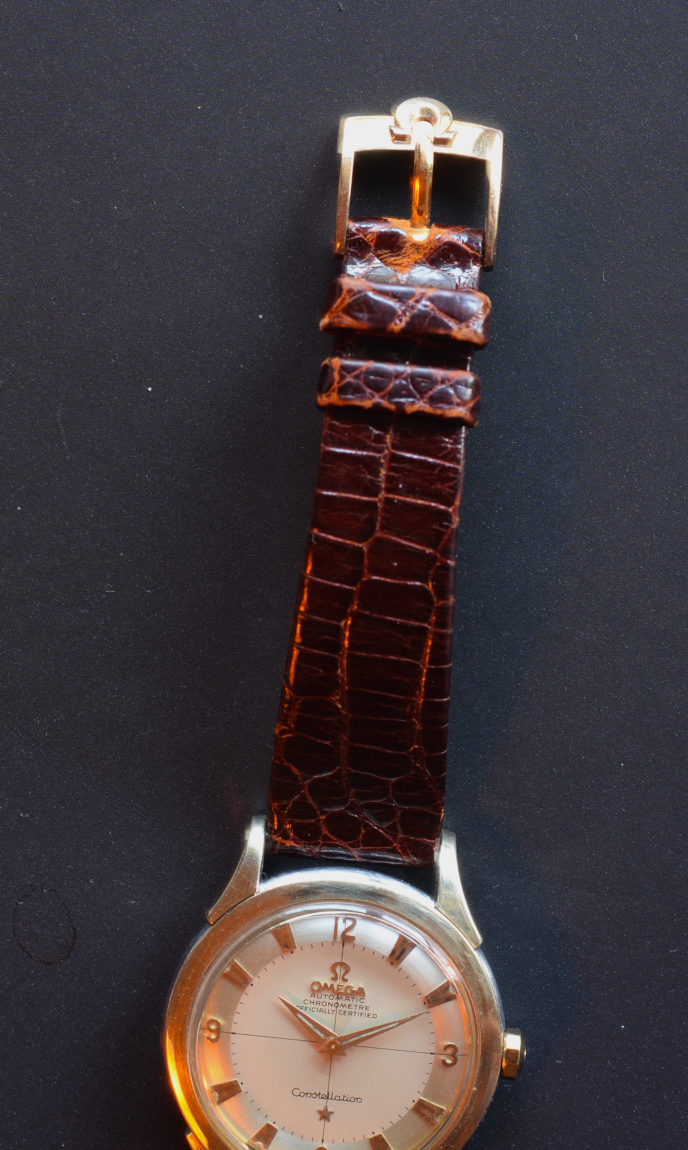 Strap/buckle: genuine crocodile with gold-plated Ω buckle.