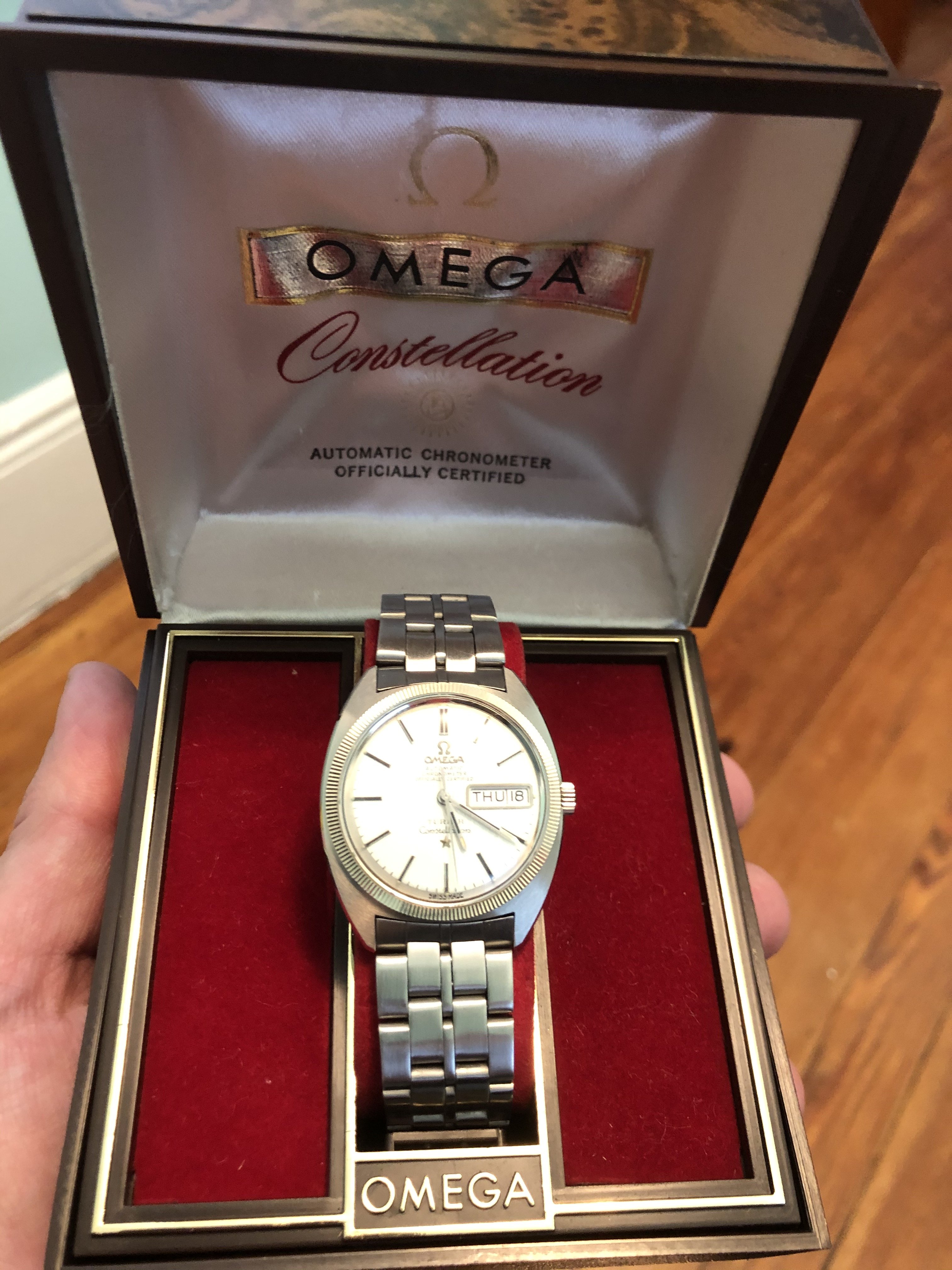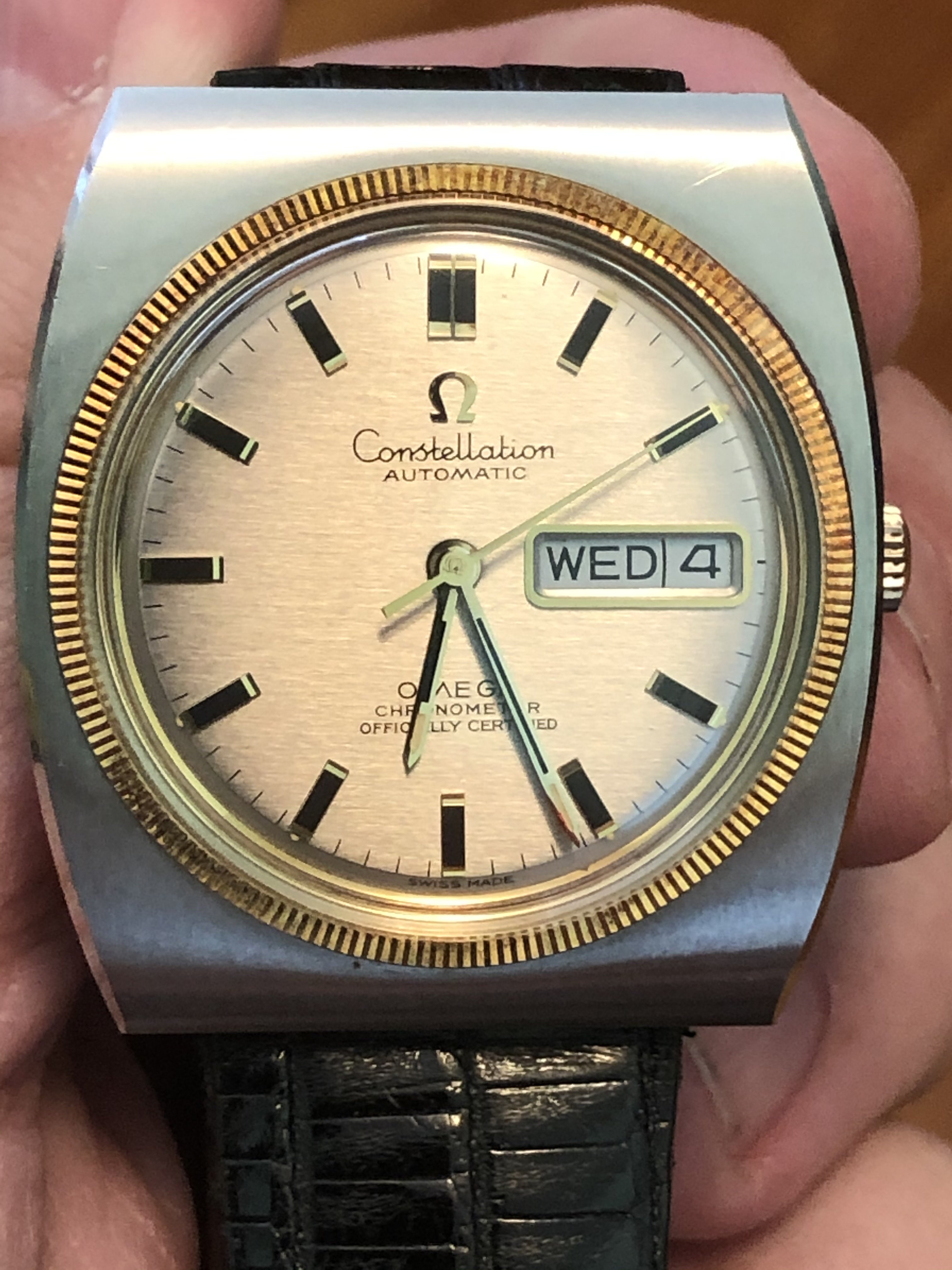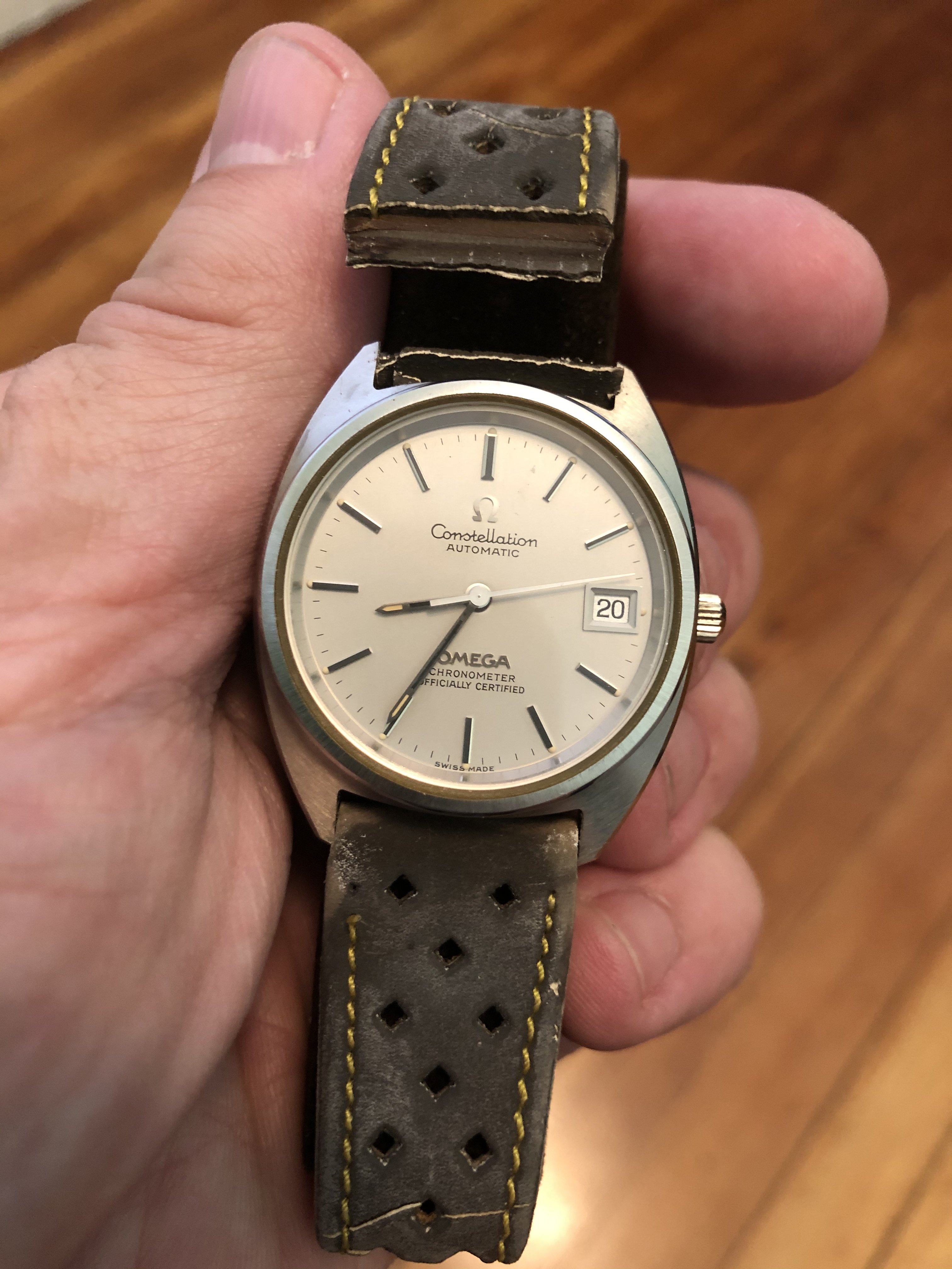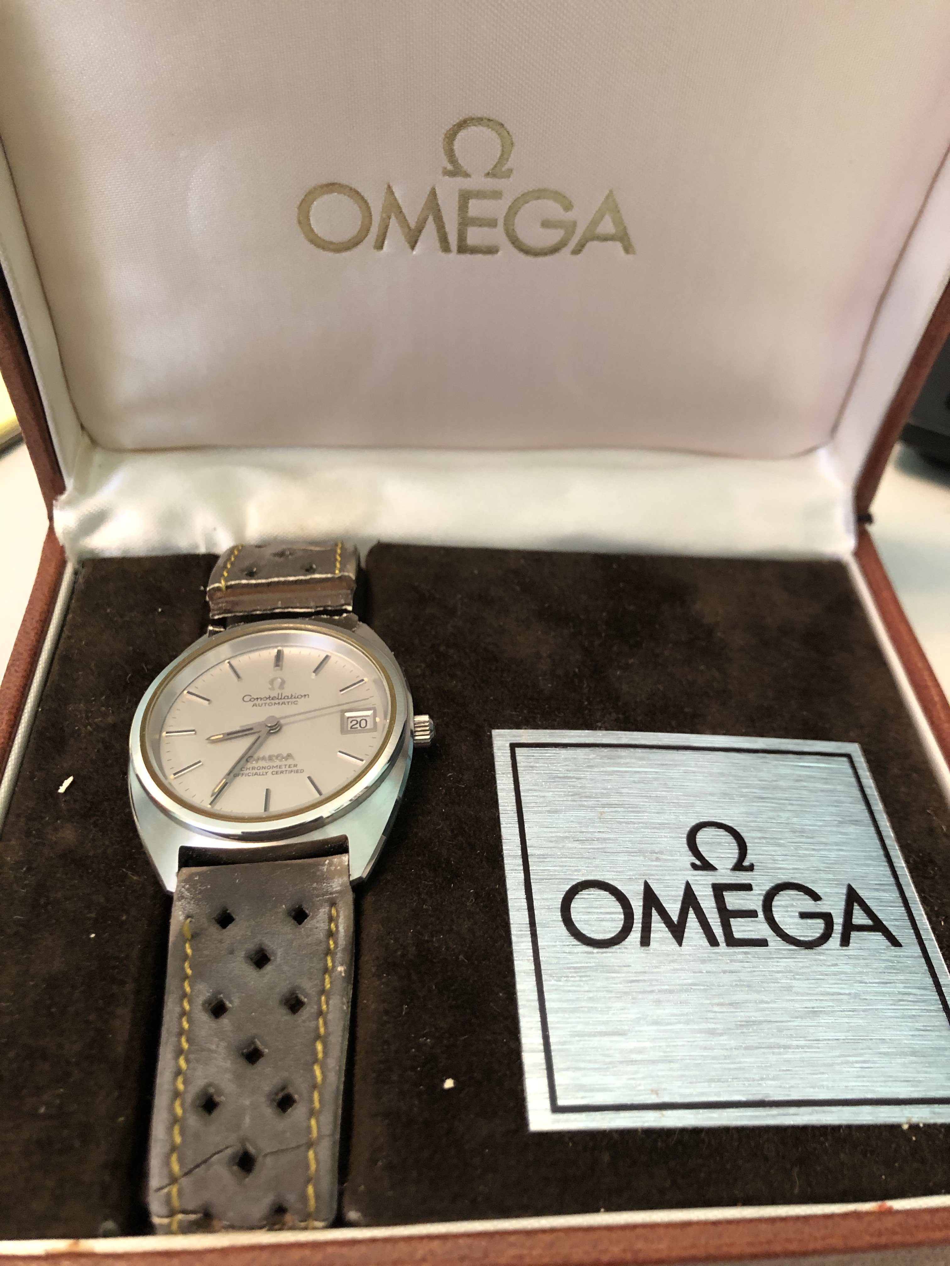 ·The two watches shown below were handed down to me from my dad. I am looking for help on figuring out the exact models they are and what the current value of them may be. I believe that he must have purchased them in the early 1970's. I do not believe he ever wore them as he had another Omega watch which he wore everyday. and they appear to me to be in perfect condition. The bands i believe are both original but one has deteriorated due to age. I also have the original boxes. I am thinking about servicing the watches to get them to run and replacing the band but would like some advice before I proceed further.