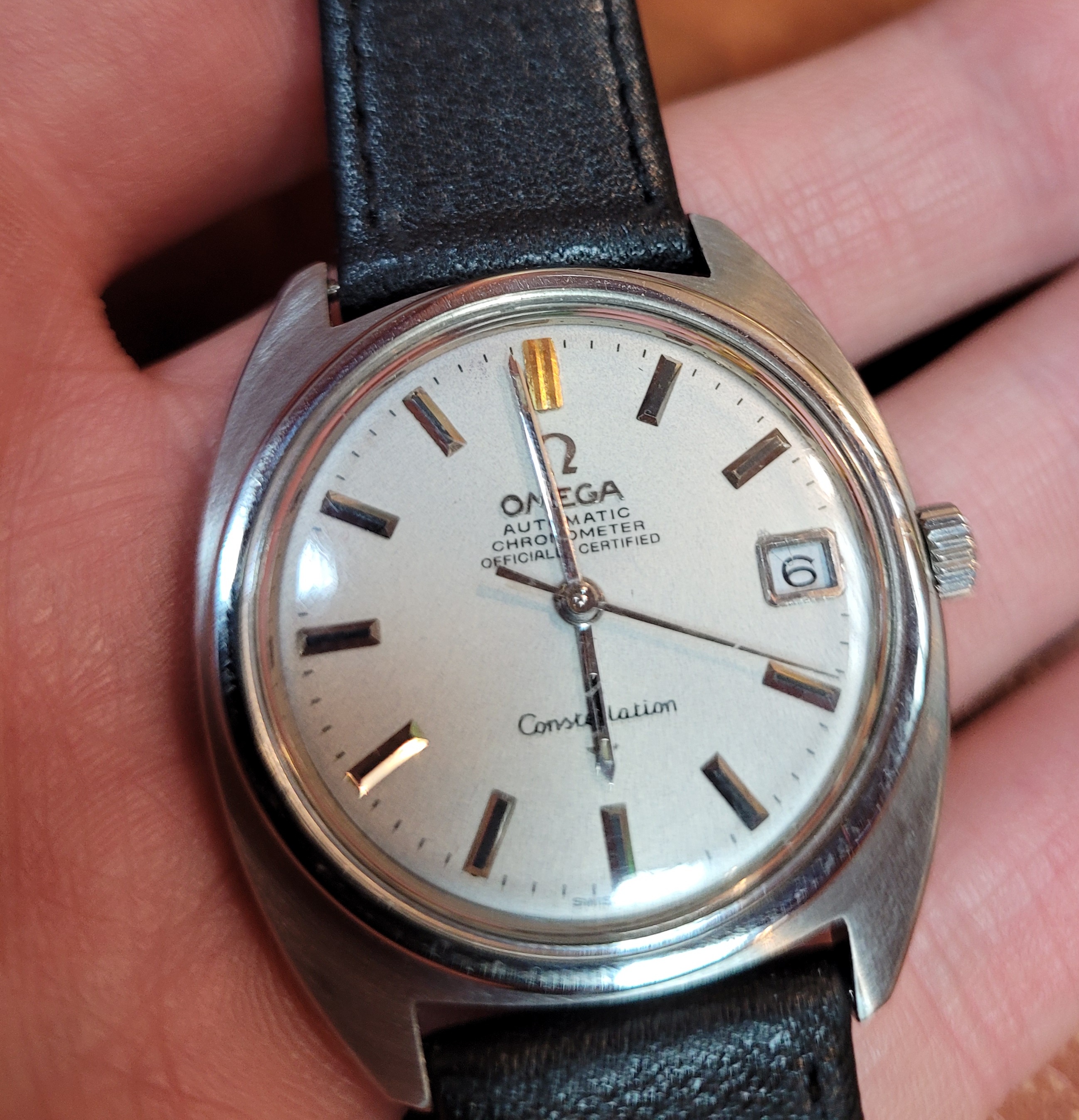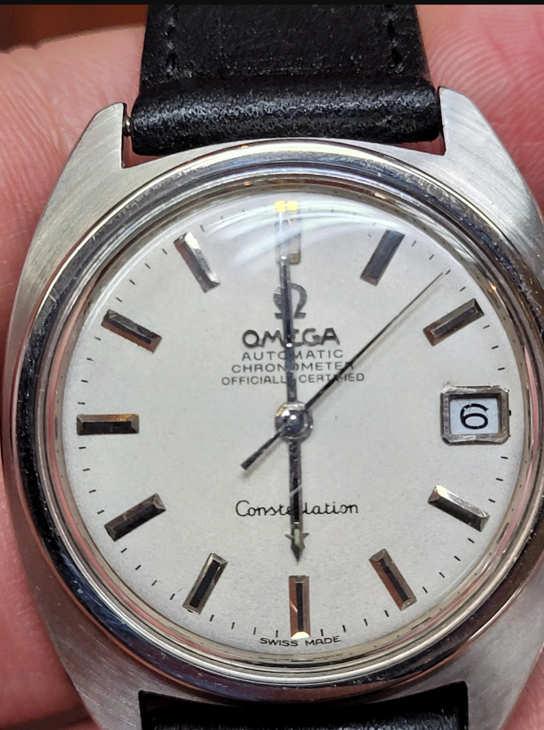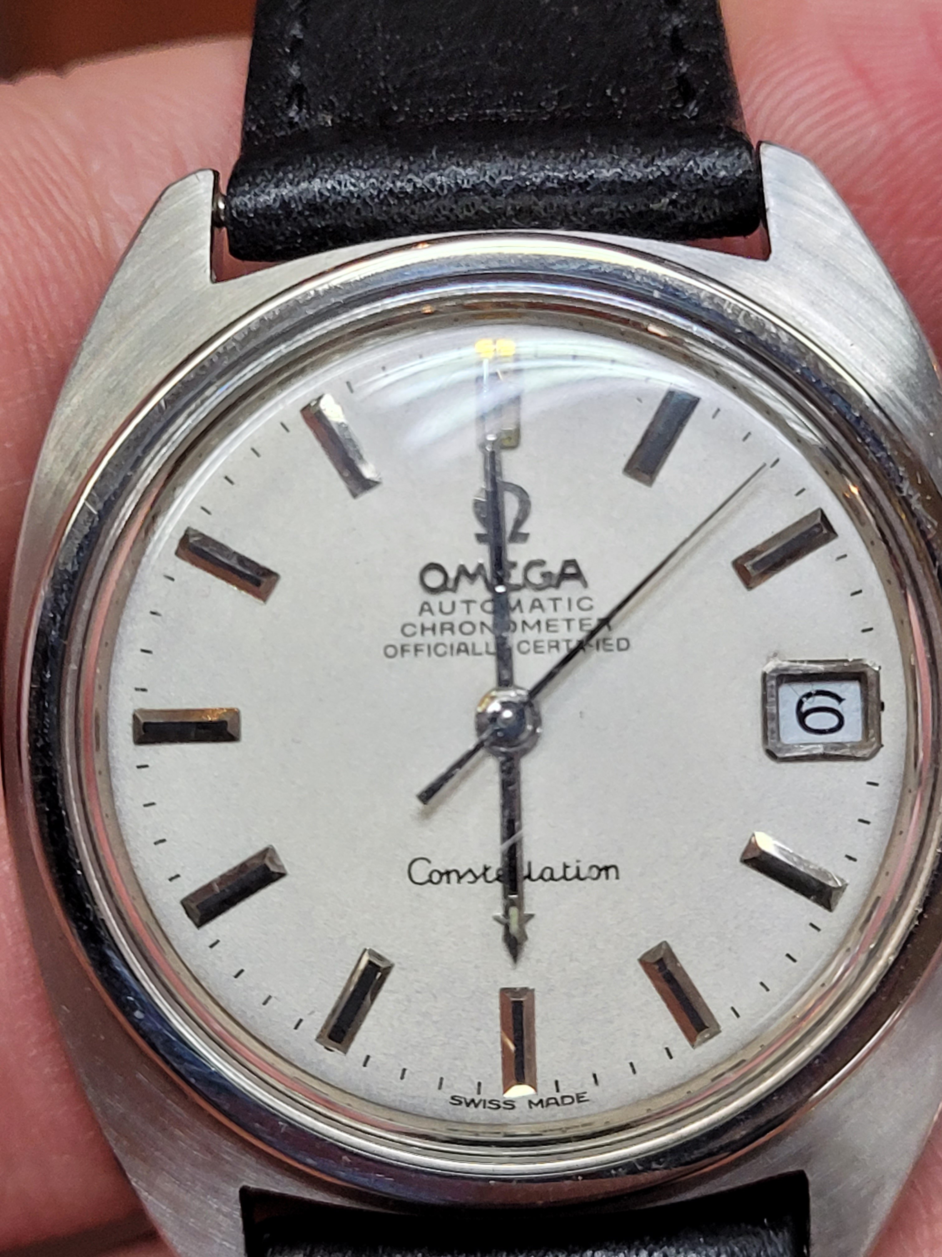 ·As I wrote in the previous post, I would like to buy an Omega Constellation. I have the opportunity to buy that one. One more time I have problem with the dial. Constellation inscription looks wreid. Additionally only one index at 12 o'clock looks like gold plated piece. It is orginal constellation? Thanks for all your help.