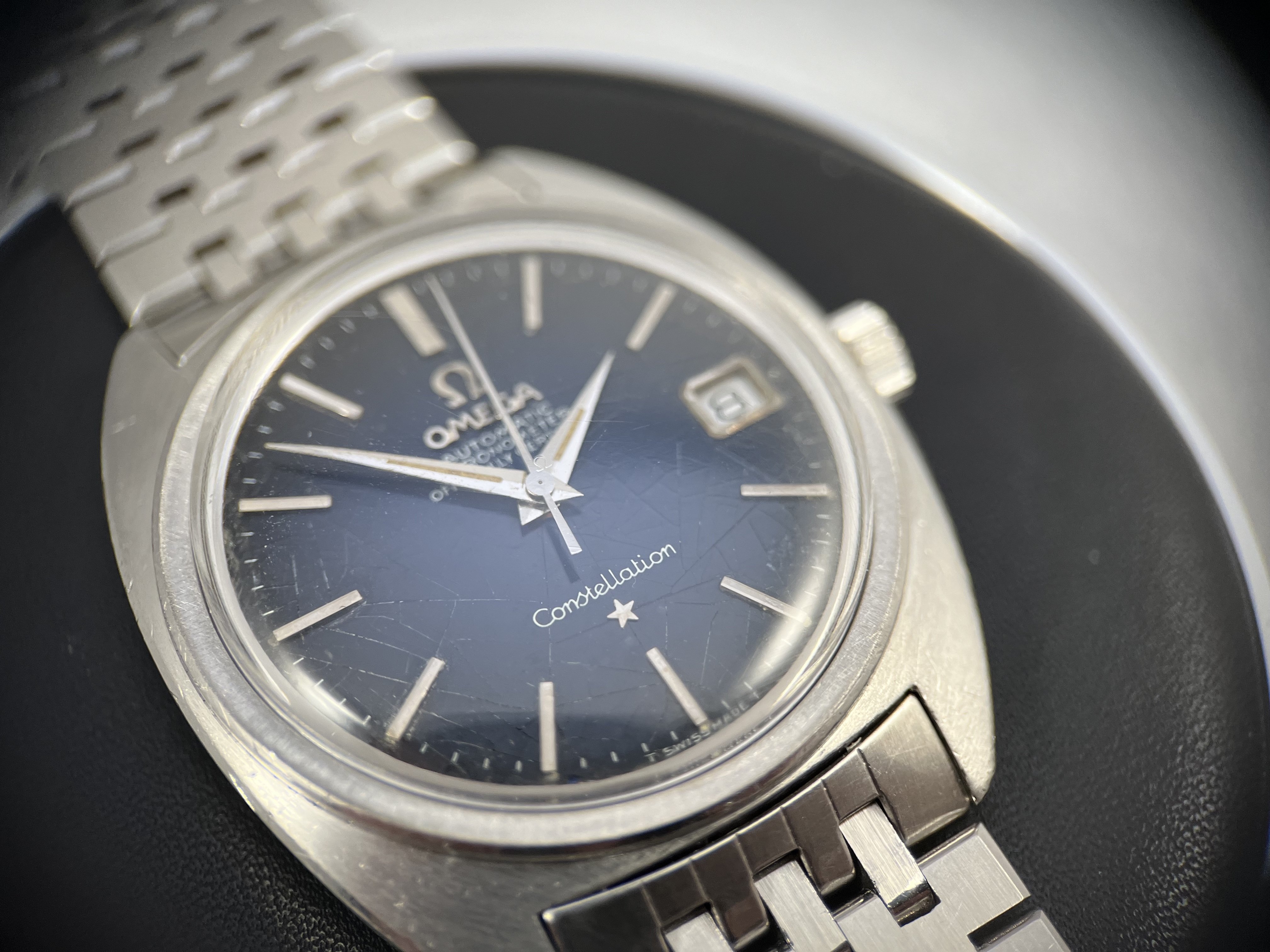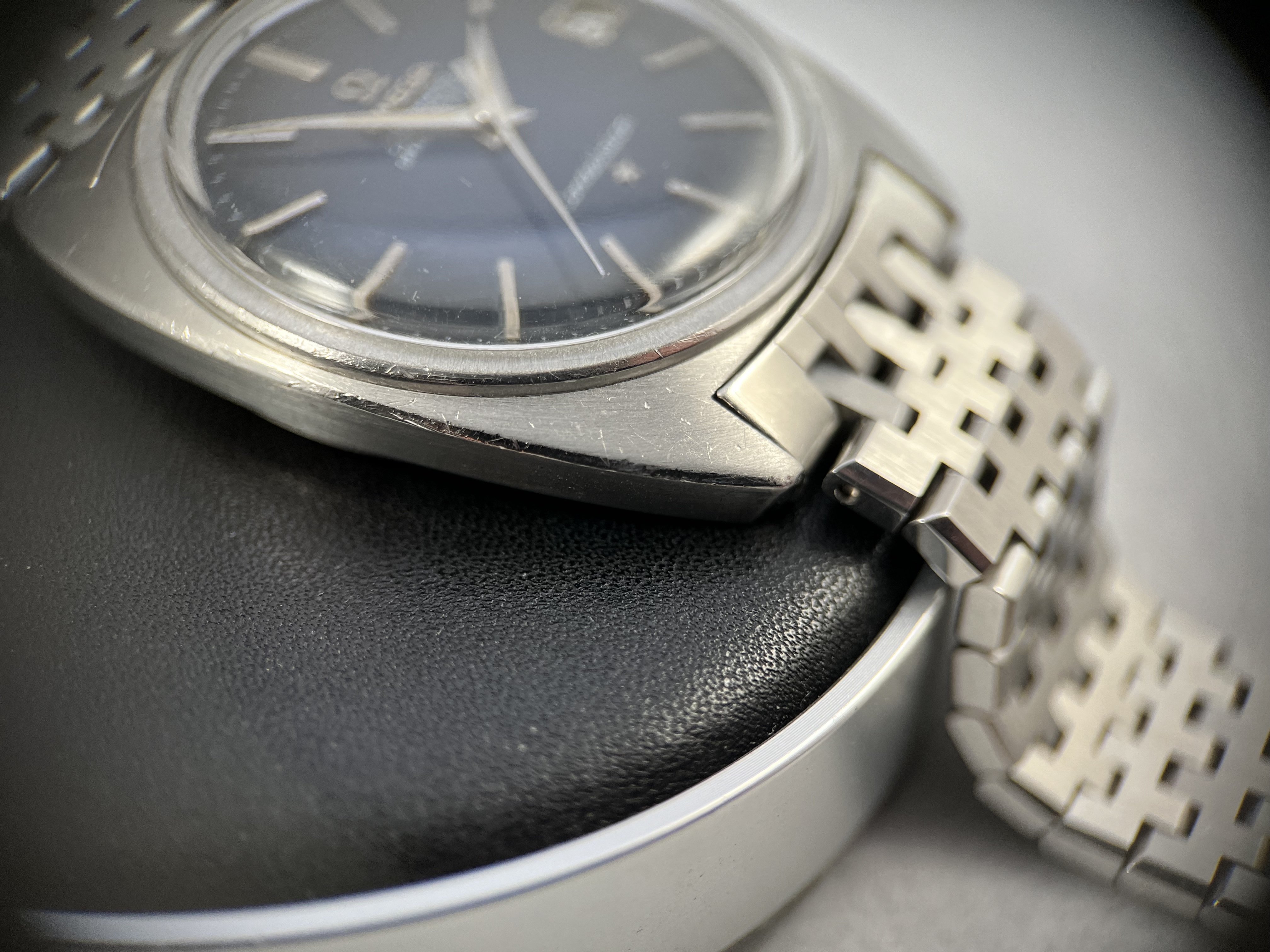 Dial is extremely patinated and quite damaged however looks quite awesome, there is no damage I can see below the lacquer layer though and as it is, it's strong and stable. 100% original dial. Case has been refinished for aesthetic purposes, original lines and angles are there. Original 2036 bracelet with 056 endlinks.