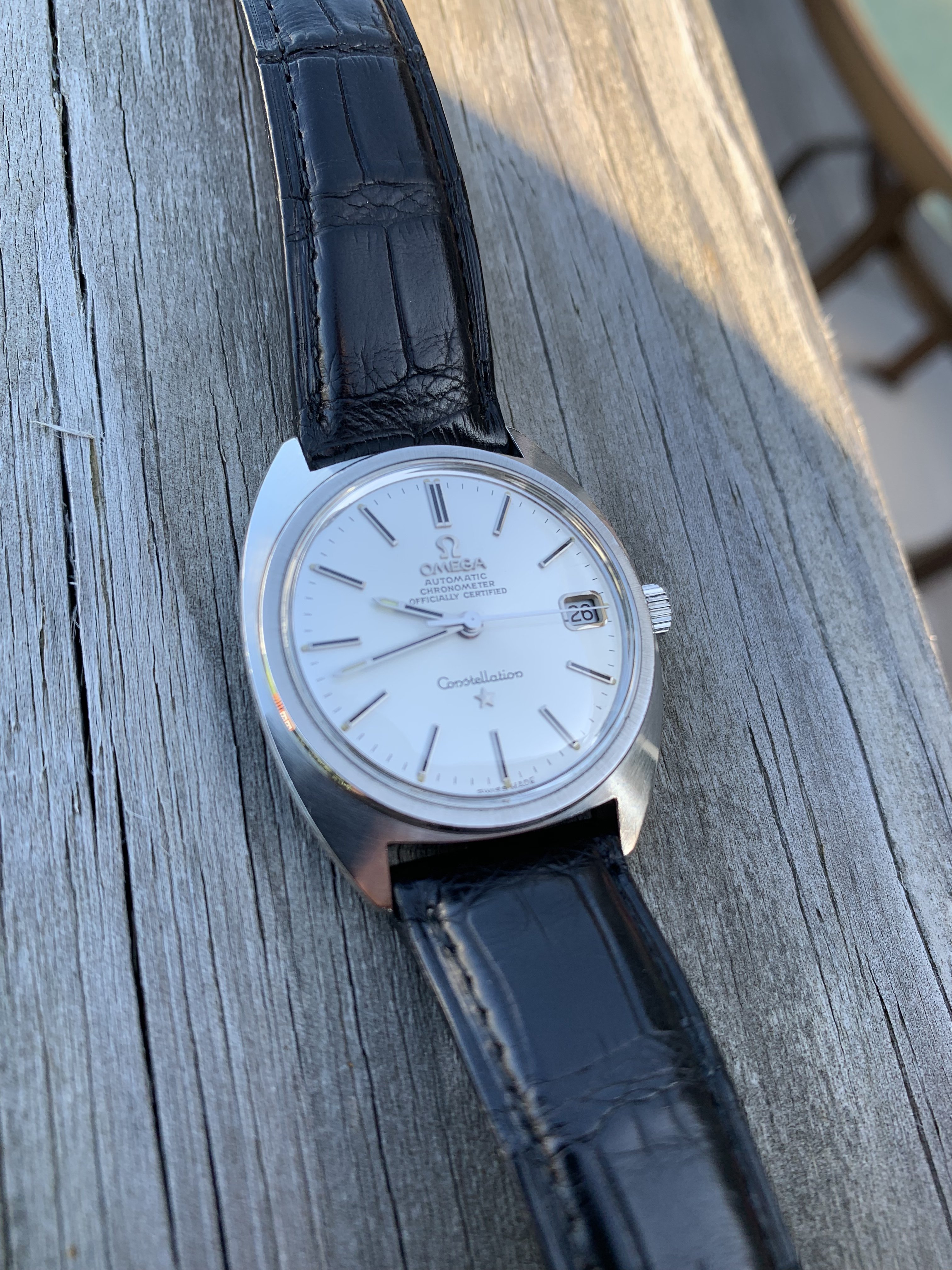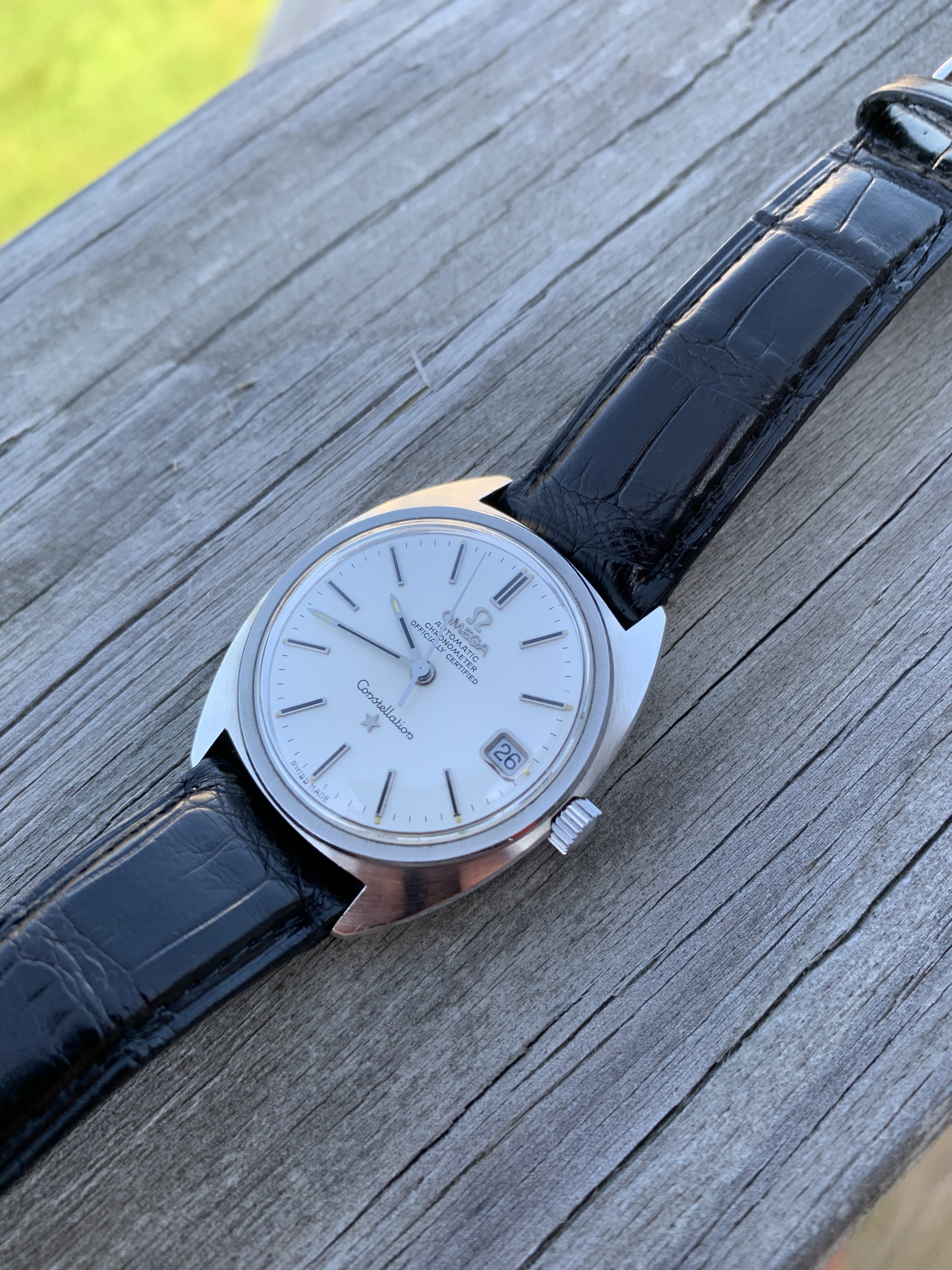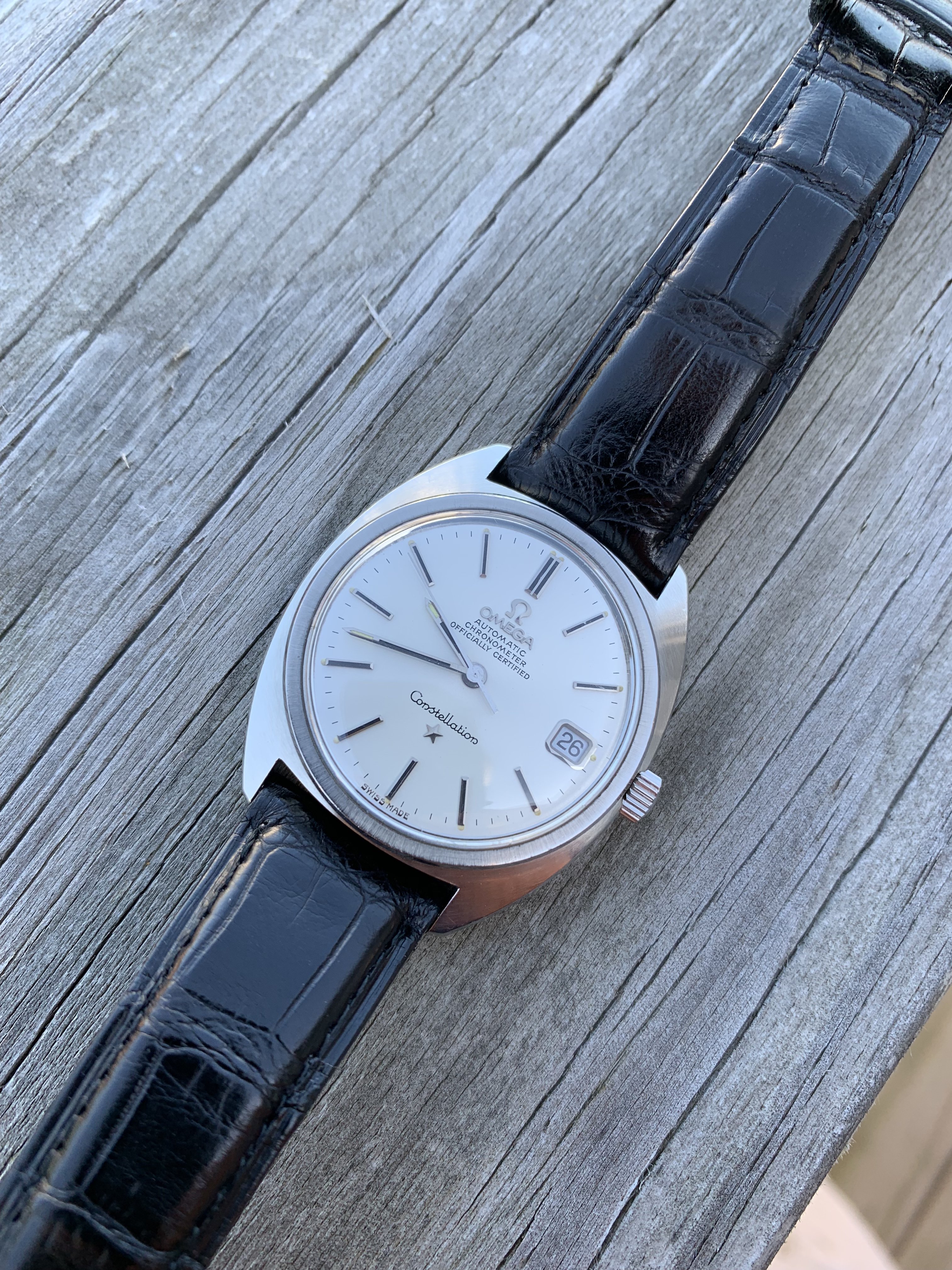 ·Up for sale is my C case Constellation on a nice black alligator strap with Omega buckle. Purchased this watch from a prestigious O.F. member in September 2015 and had it serviced shortly after. A very nice C case with everything running as it should (including quick set date). Case is in beautiful condition as is the dial and signed crystal! Case back shows some minor wear. I’ll let the pictures do the rest of the talking.