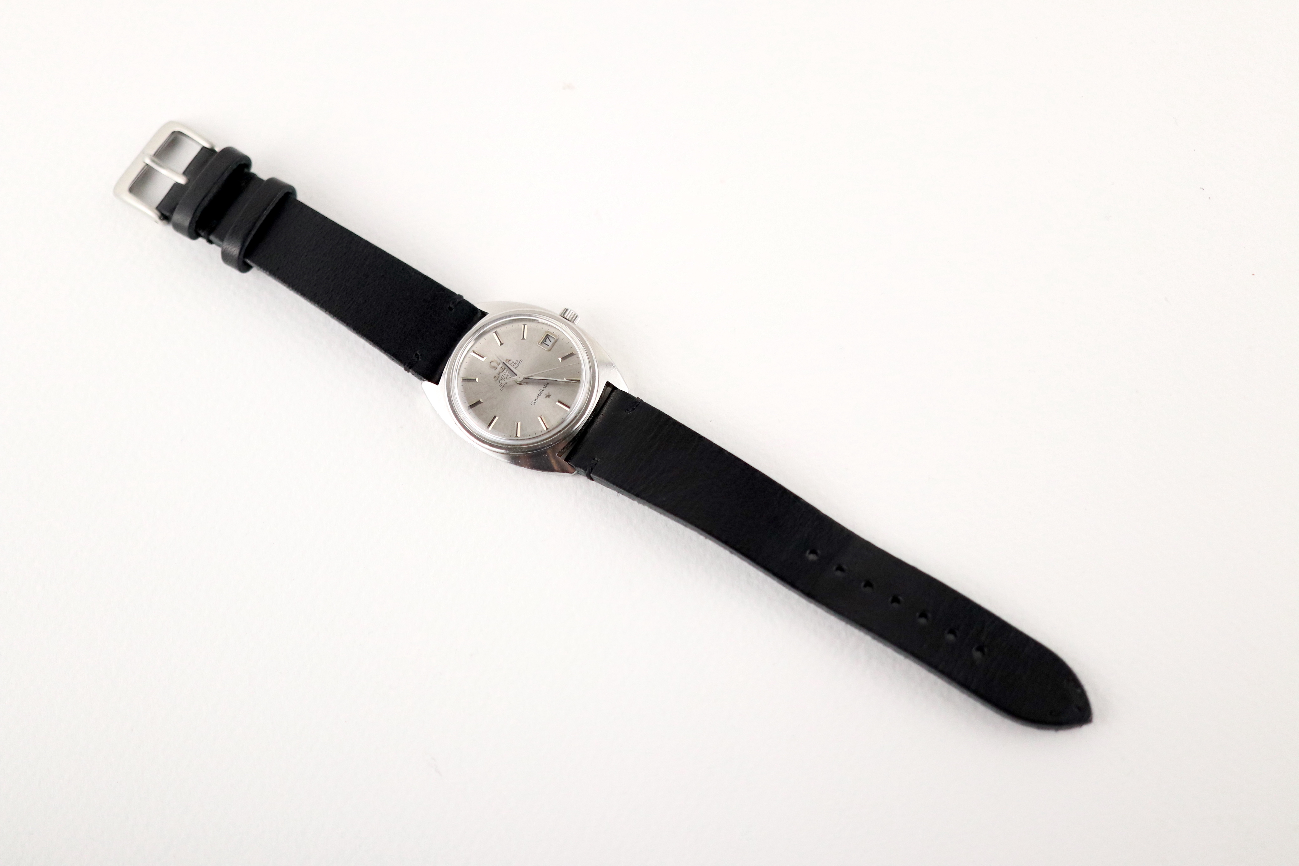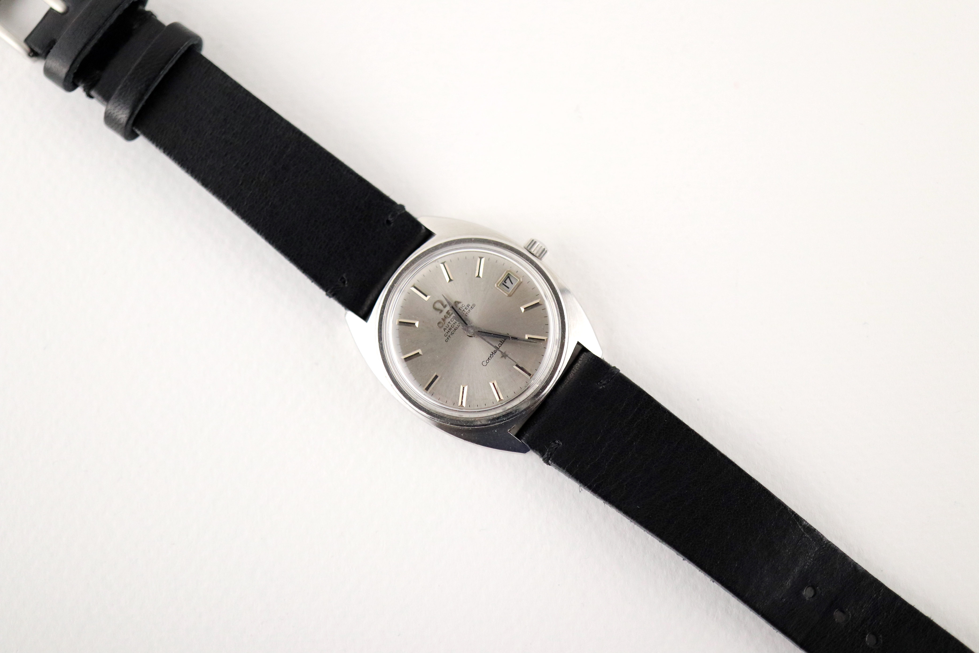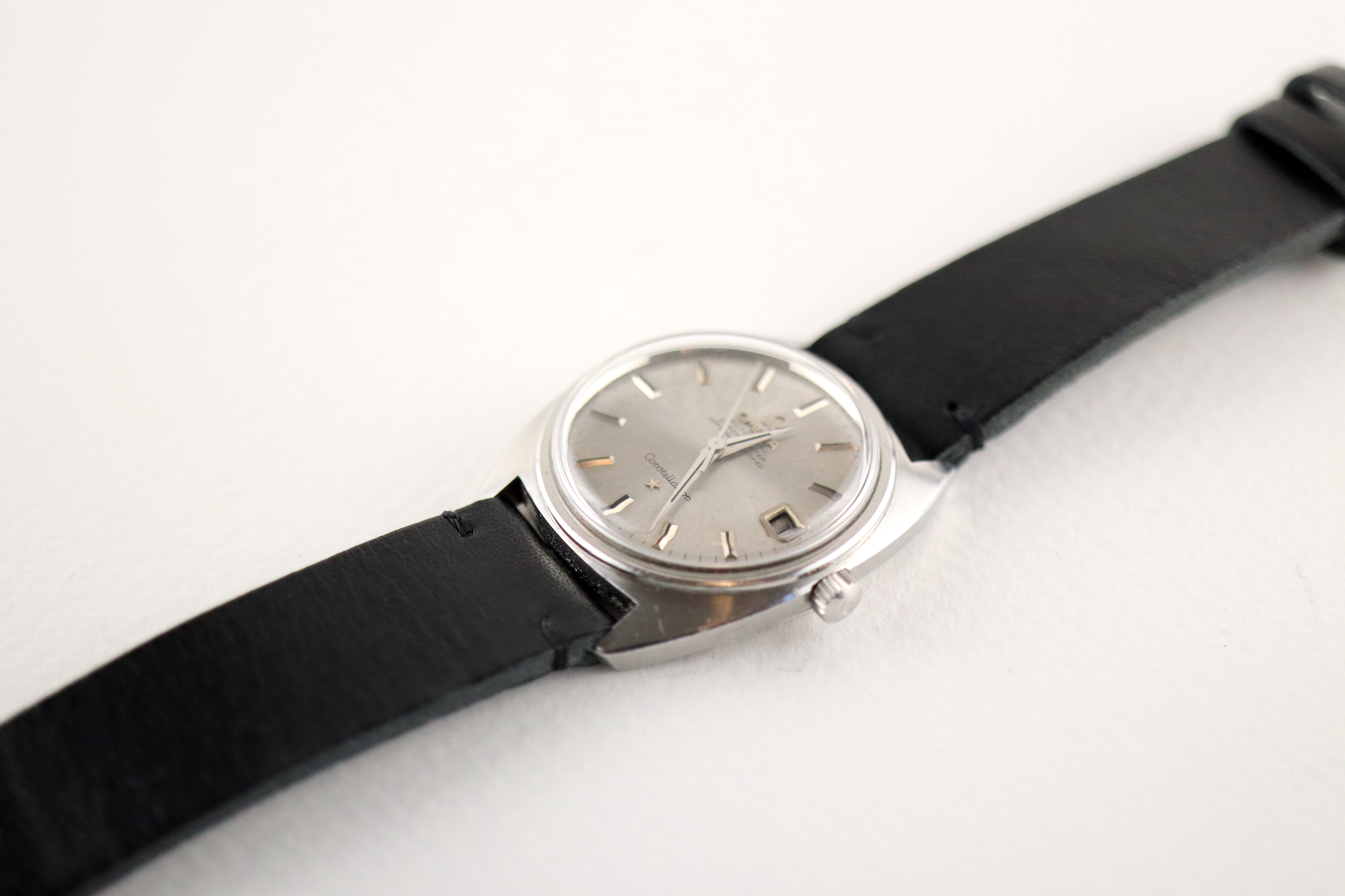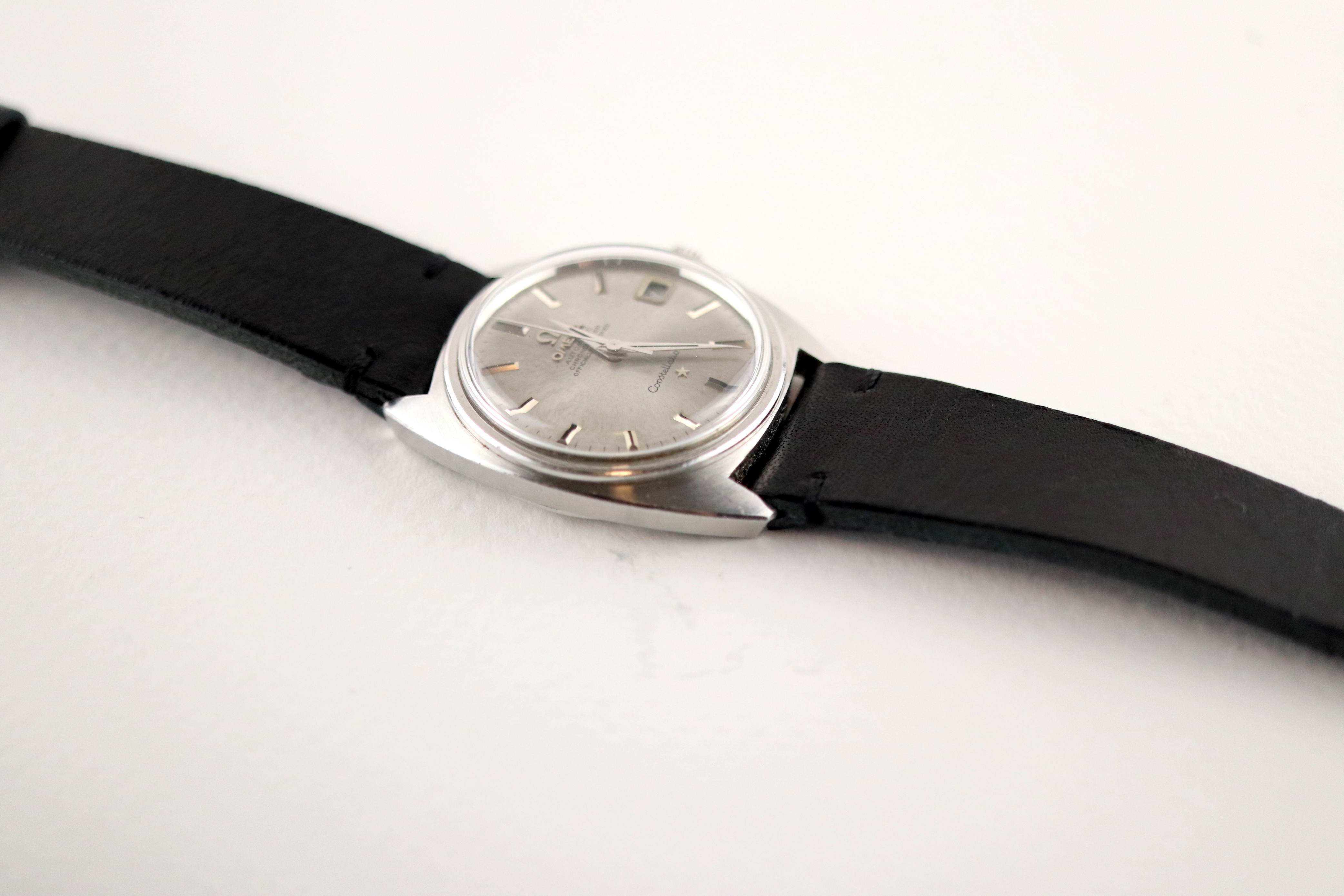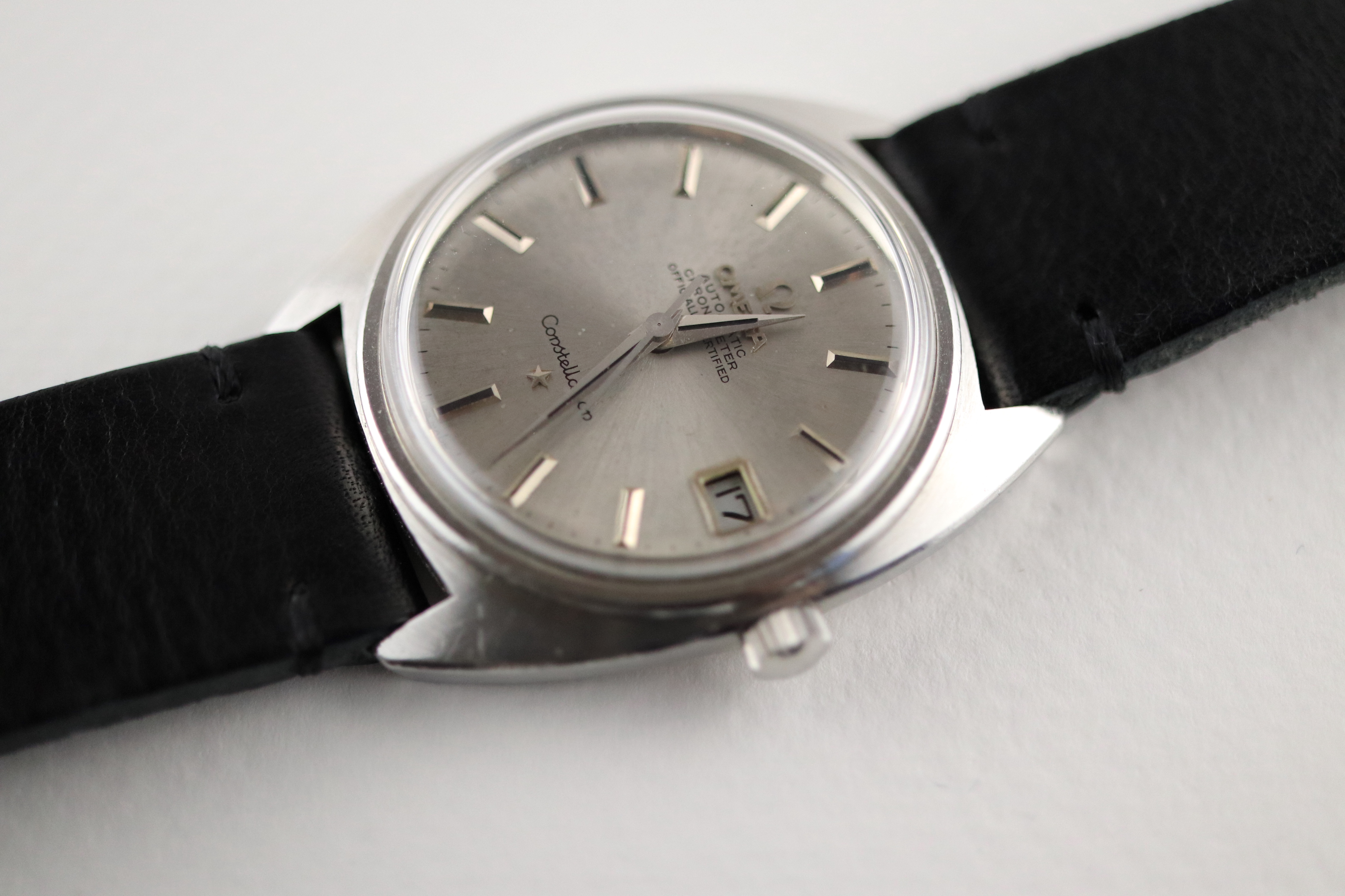 ·For sale, I have an Omega Constellation C-Case reference 168.017. It has the Caliber 564 and based on the serial number it should be from 1968. The case has some dings and scratches but still retains all its lines and doesn't appear to be polished. Watch is working fine but not sure how well it is keeping time since I never wore it long enough to find out. I don't have any service history but looking at the movement I would say it needs one. The dial looks a little dirty not sure what it is or if it would come off after service. The watch will come with your choice of either a new Brown or Black leather strap. You can also have a bracelet for an additional fee if you like. If you need more pictures let me know.