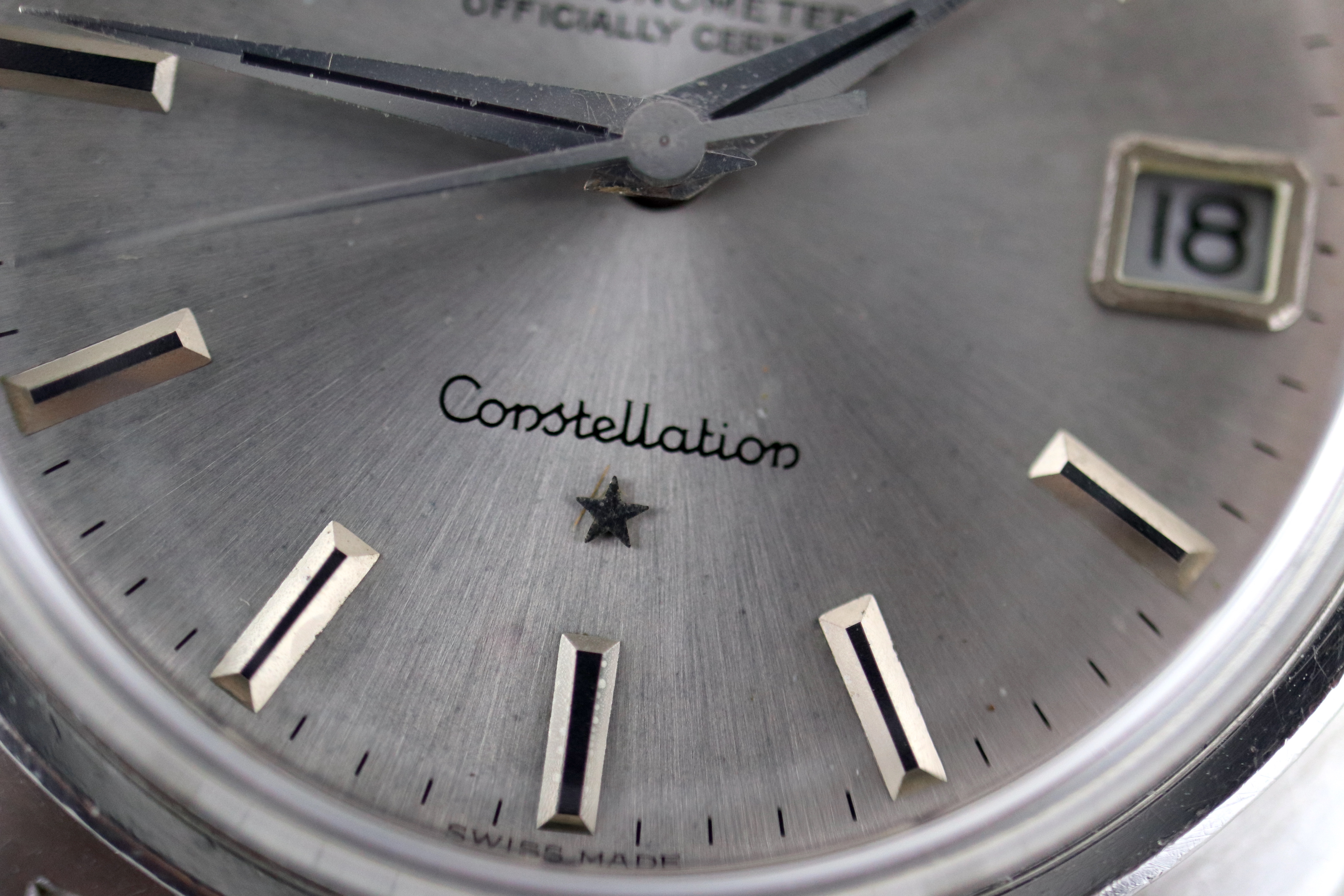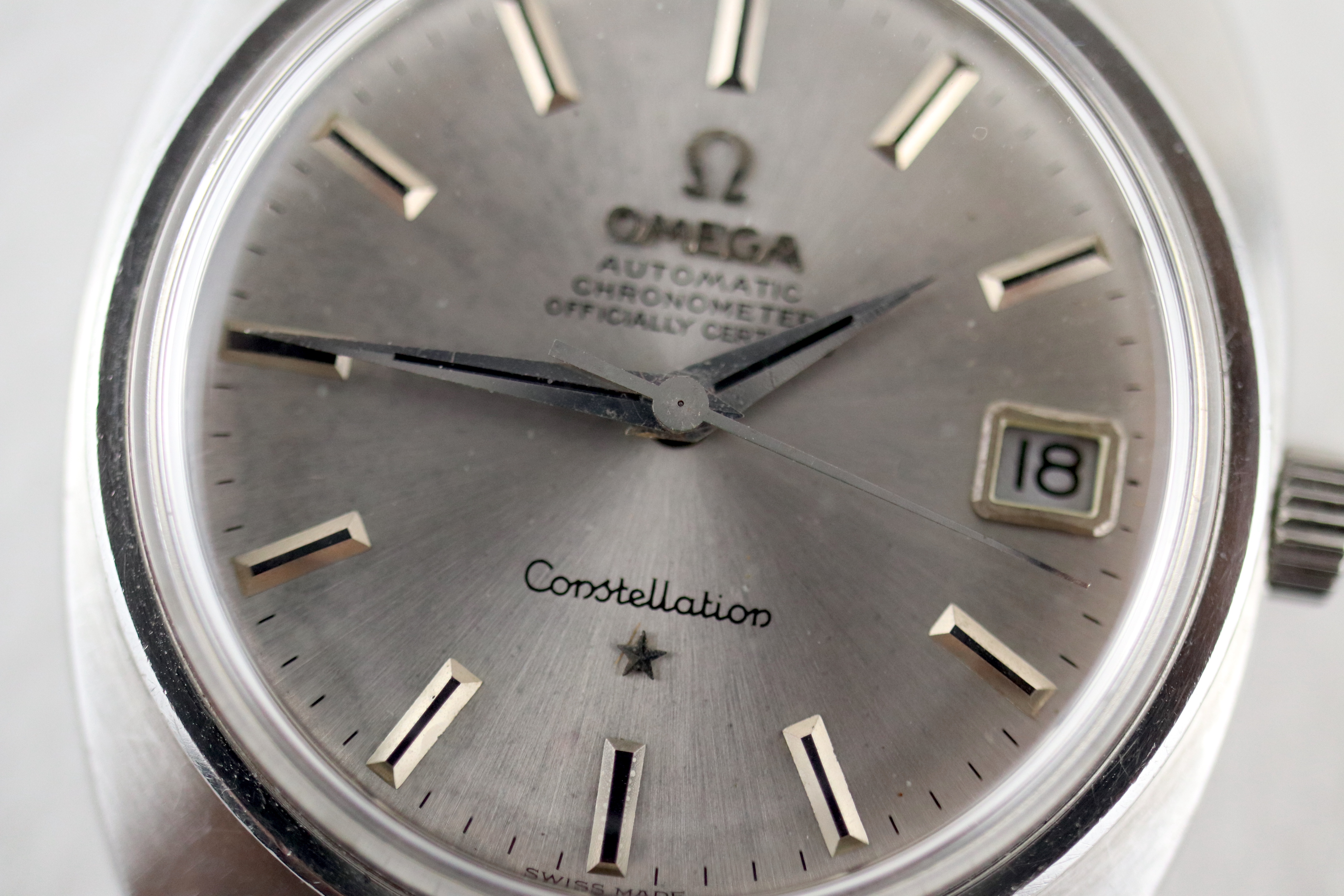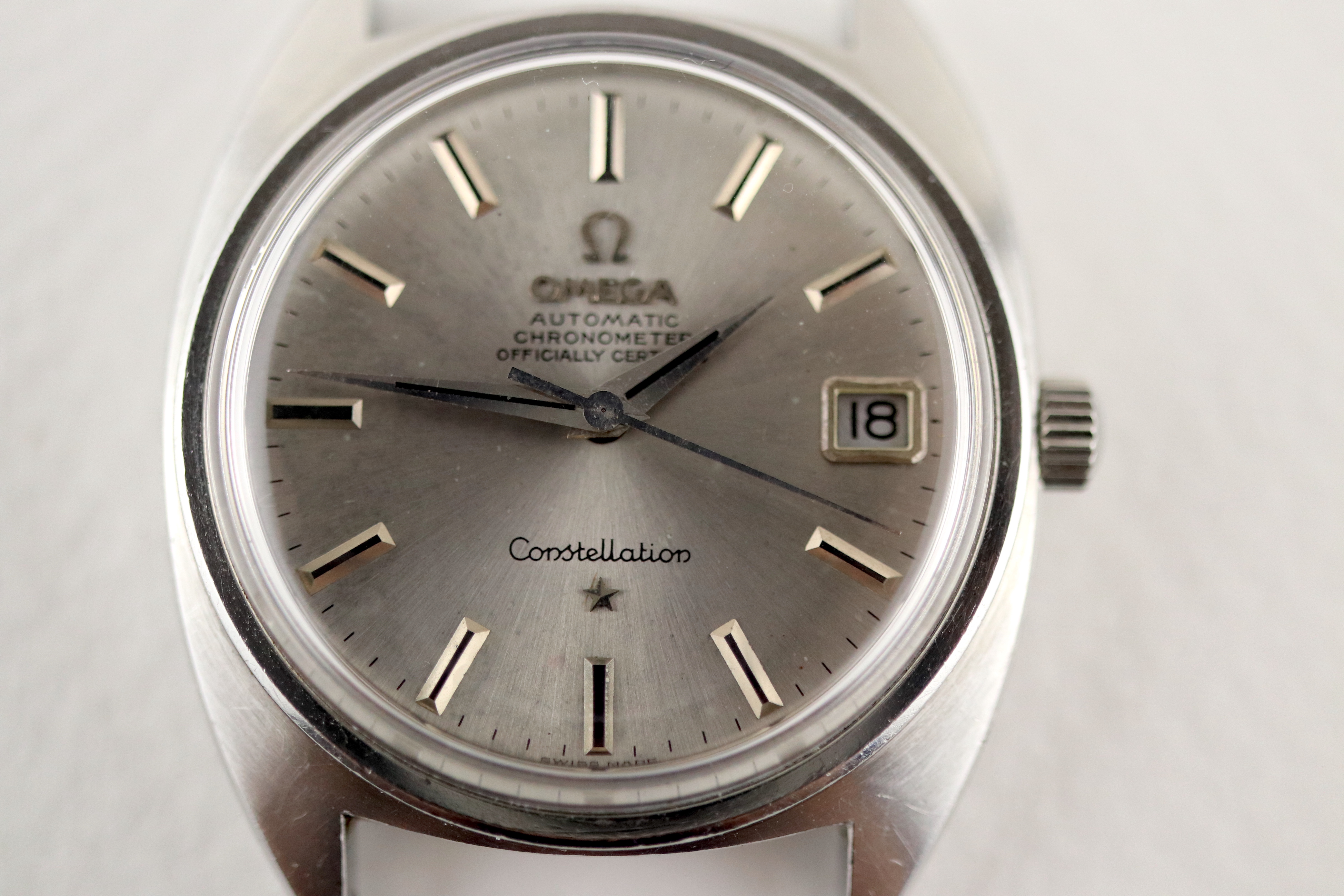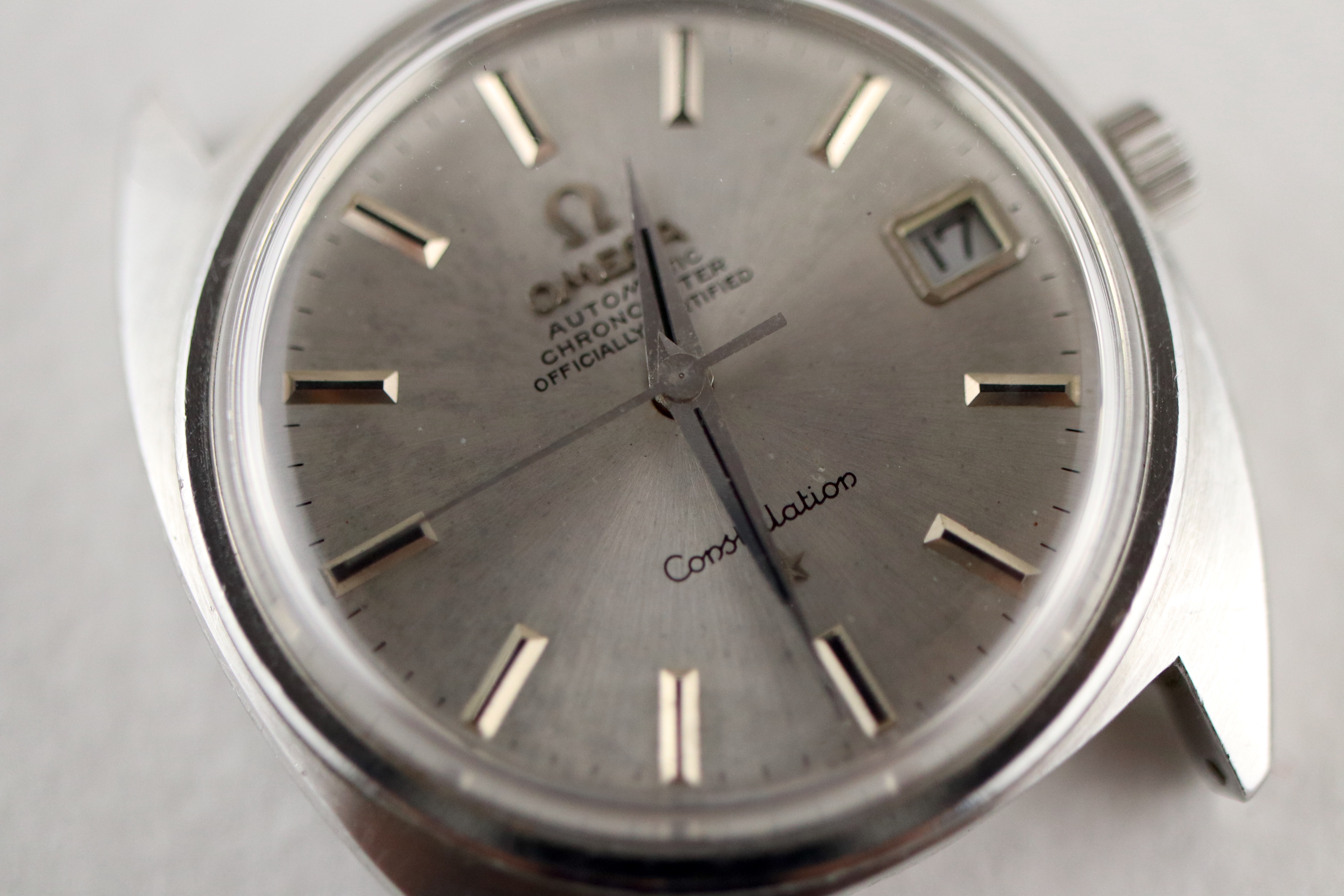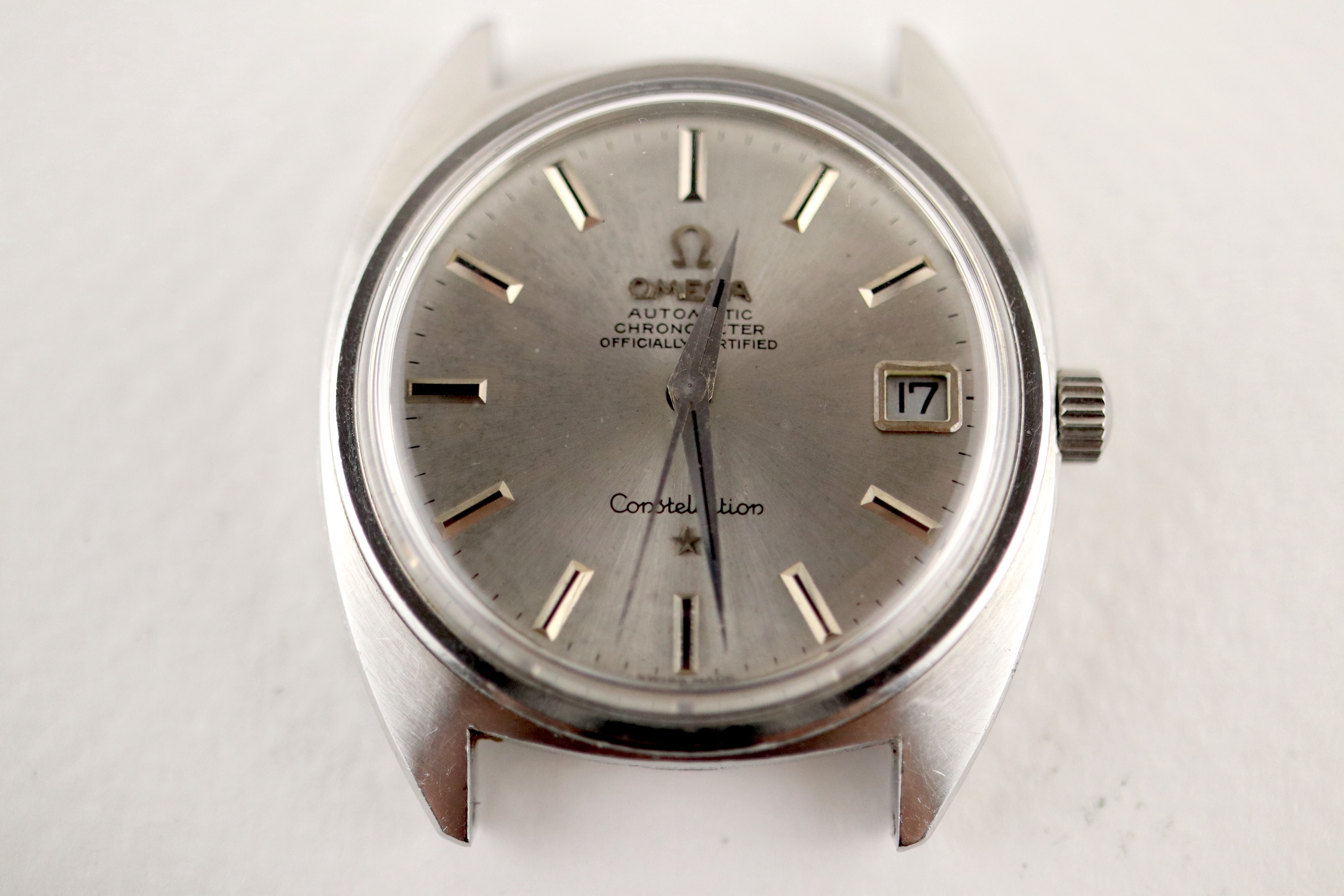 ·For sale, I have an Omega Constellation C-Case reference 168.017. It has the Caliber 564 and based on the serial number it should be from 1968. The case has some dings and scratches but still retains all its lines and doesn't appear to be polished. Watch is working fine but not sure how well it is keeping time since I never wore it long enough to find out. I don't have any service history but looking at the movement I would say it needs one. The dial looks a little dirty not sure what it is or if it would come off after service. The watch will come with your choice of either a new Brown or Black leather strap. You can also have a bracelet for an additional fee if you like. If you need more pictures let me know.