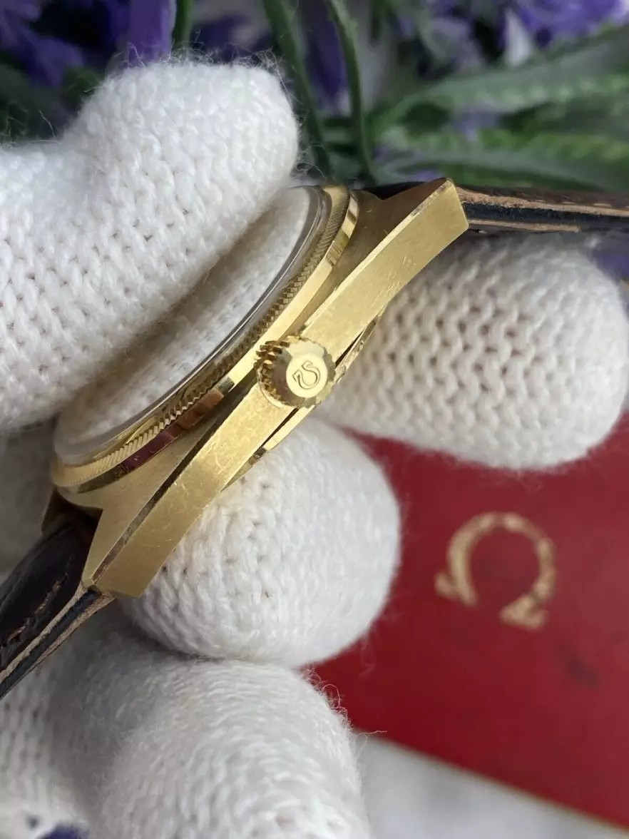 It bears the inscription "OM SWISS MADE OM", for Solid Gold, which I find unusual, and the day is in English.