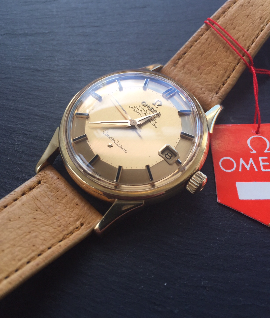 The watch is currently fitted on NOS Gemex grey band but will also be supplied with the pictured near NOS peccary bands with period gold plated buckles.