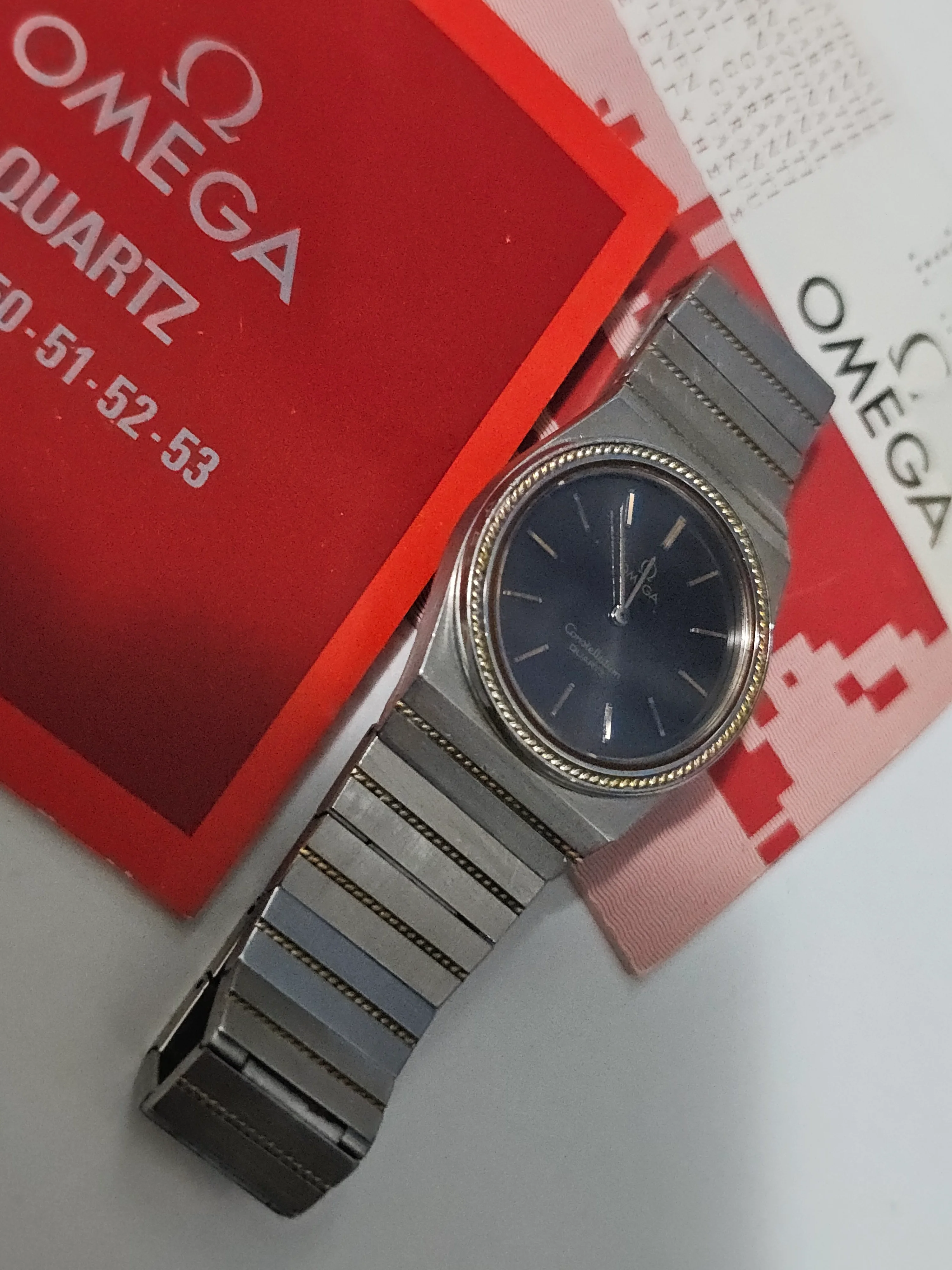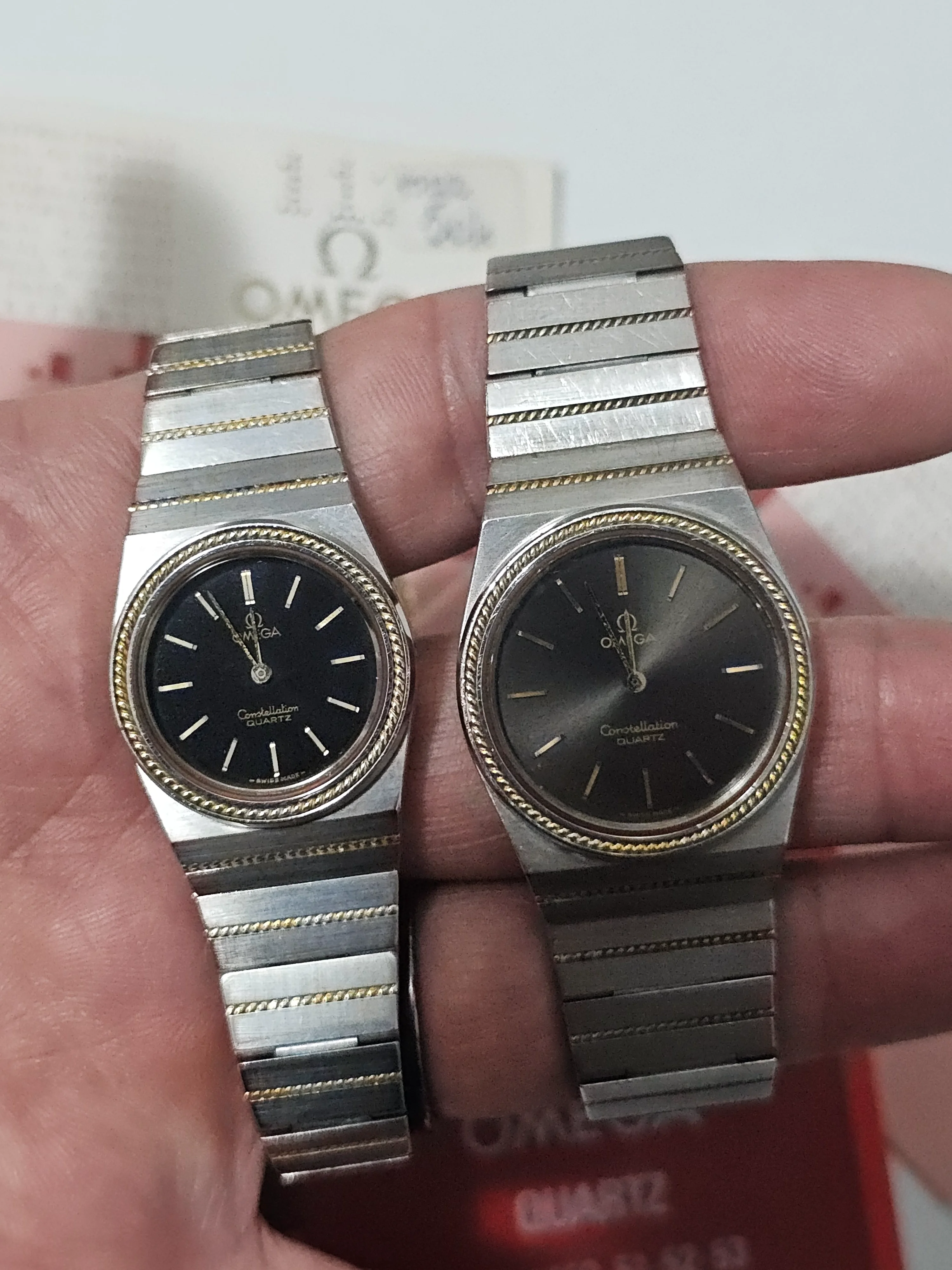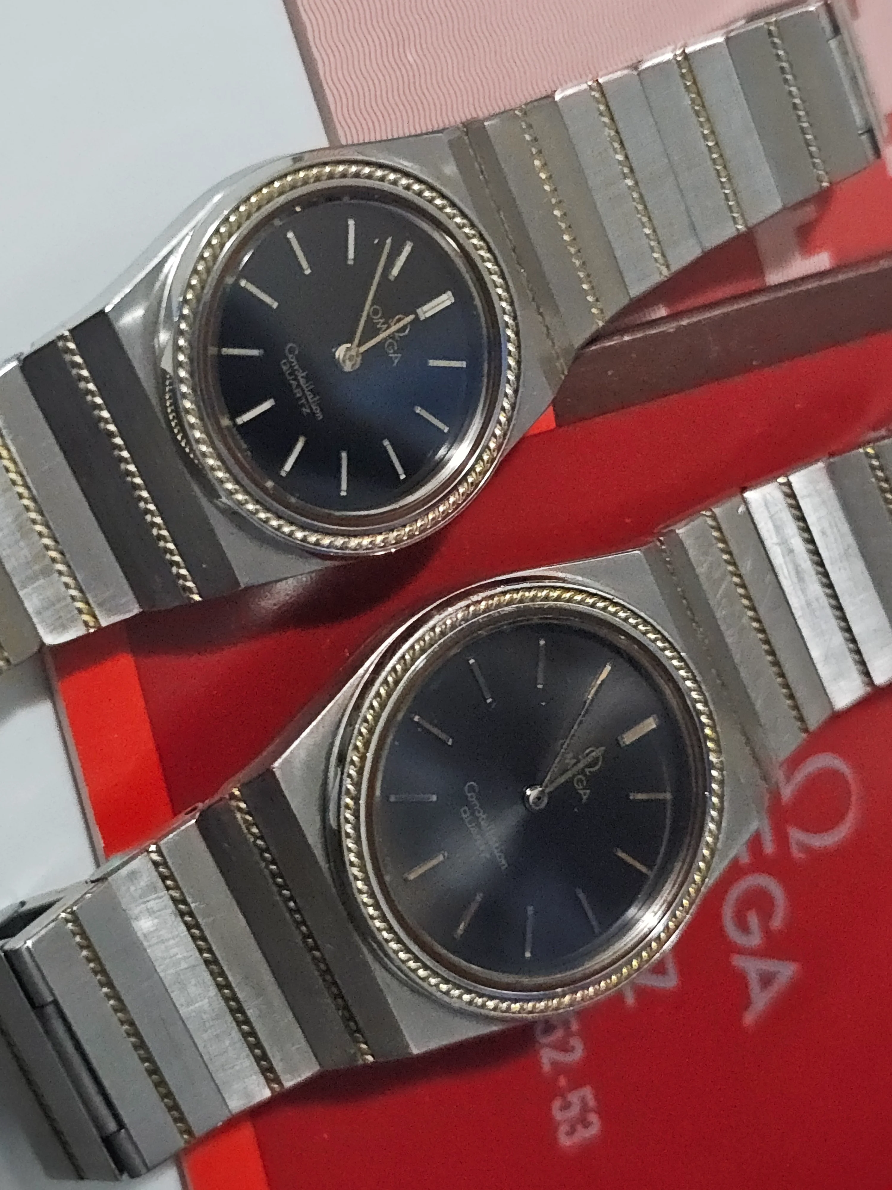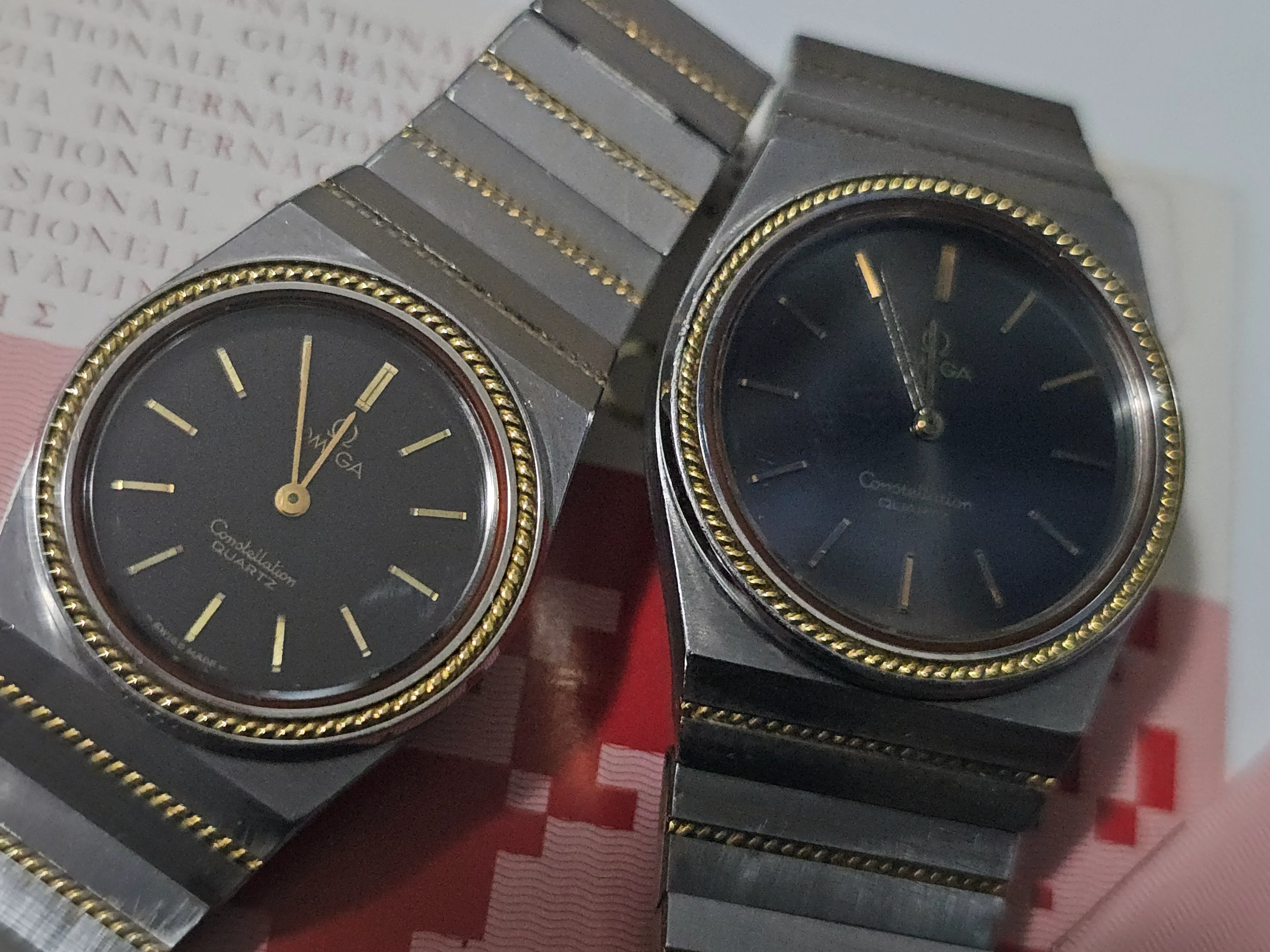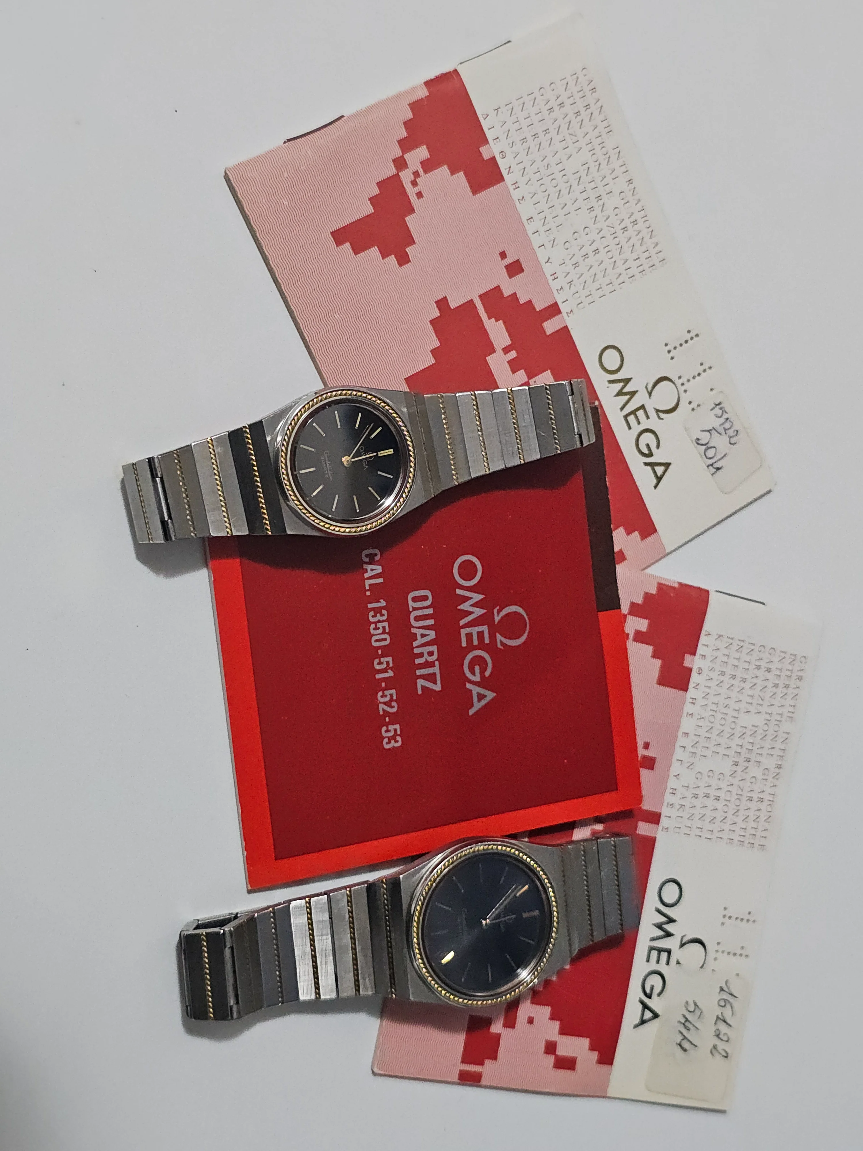 ·I am selling a pair of vintage Omega Constellation Quartz watches from the 1970s/1980s in steel and solid gold, in perfect working order. They come with their original warranty and a movement instruction booklet.