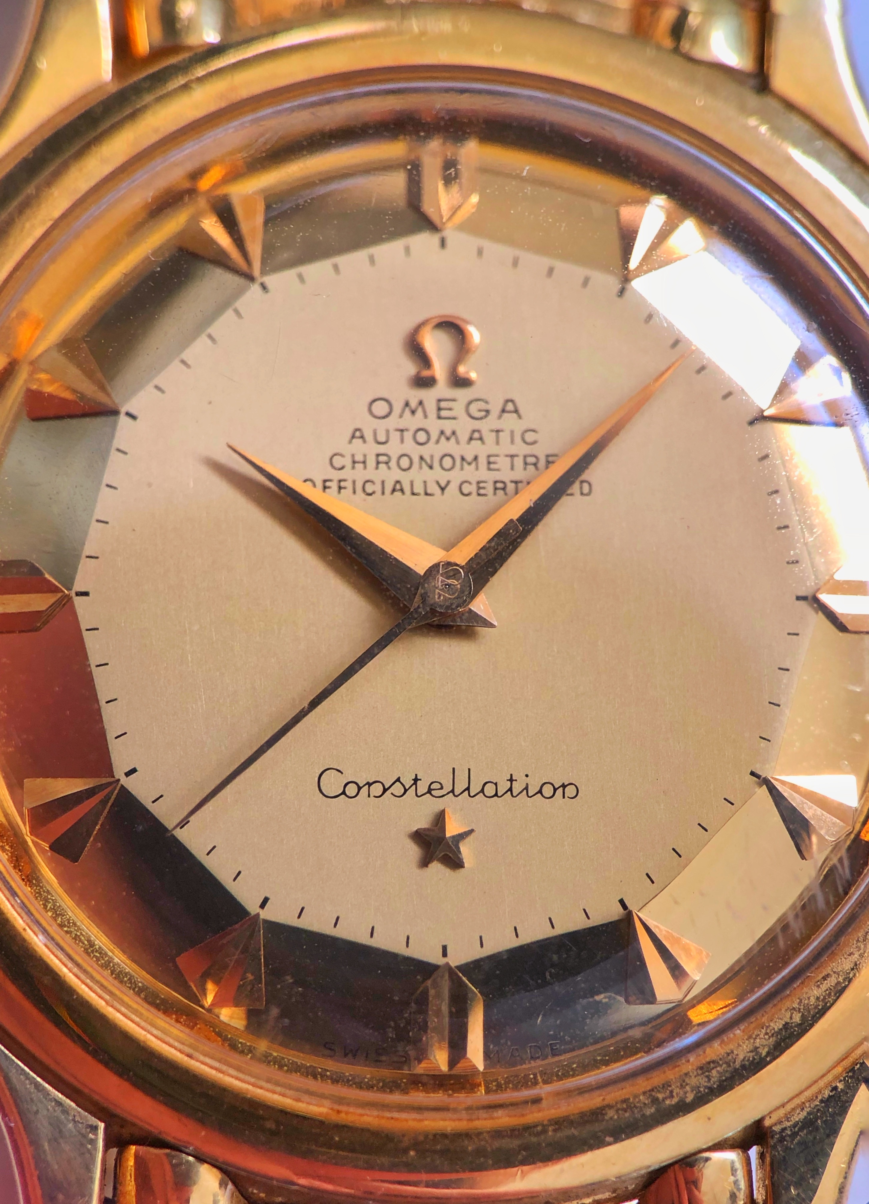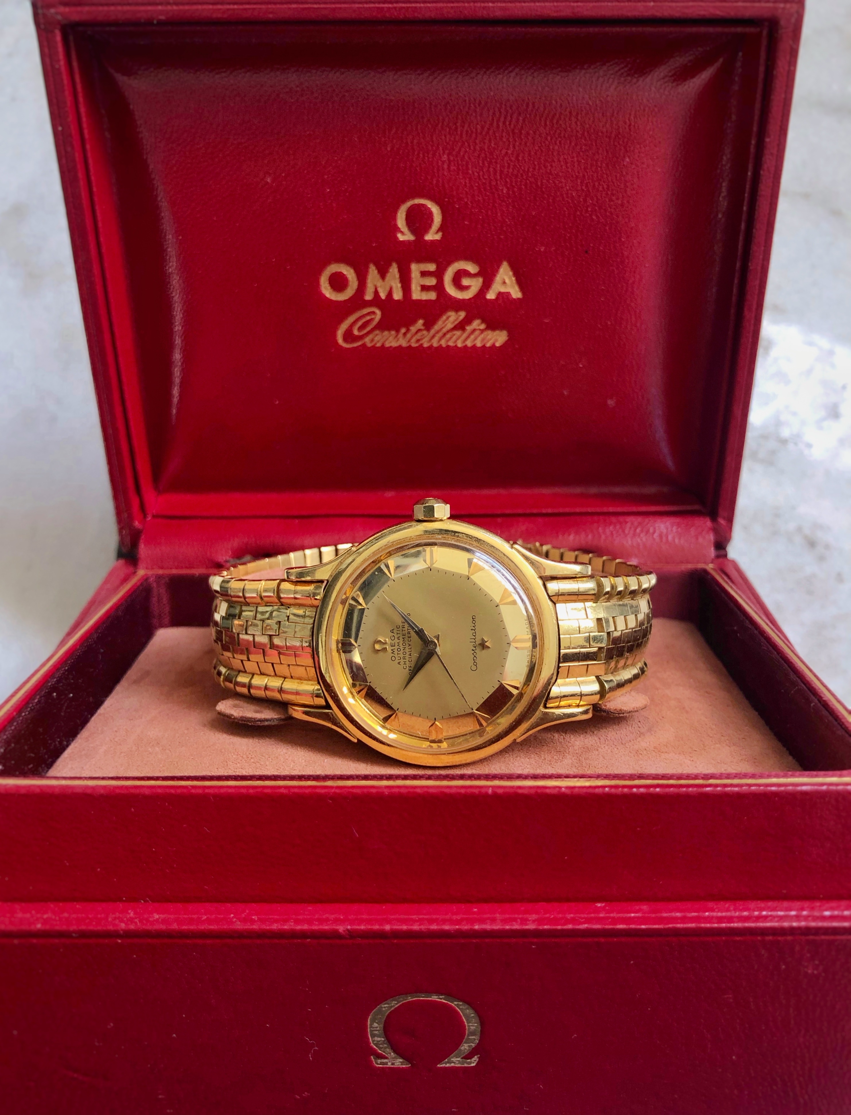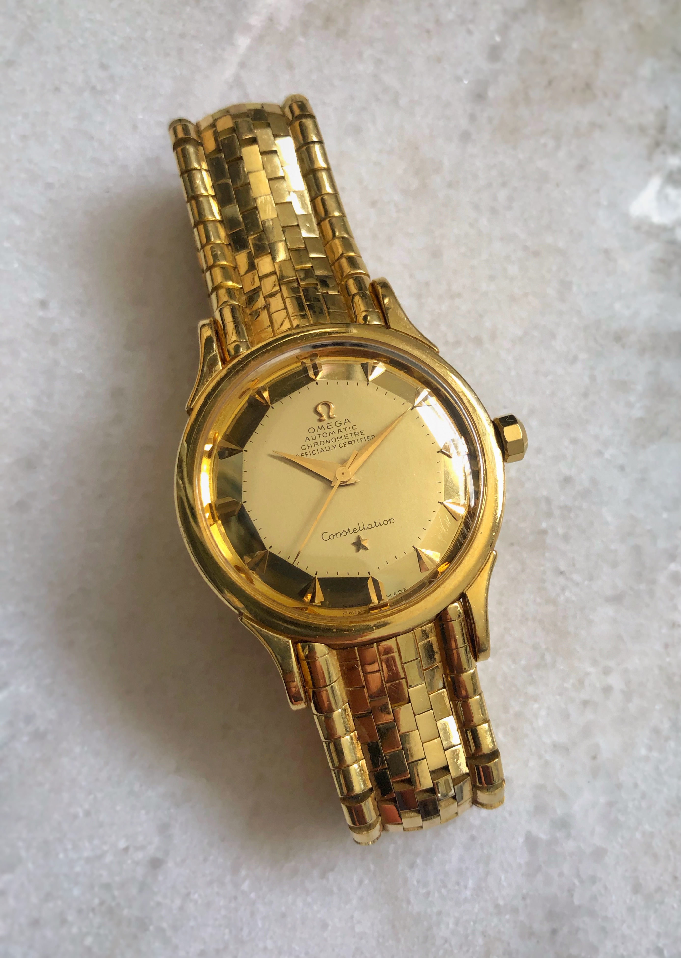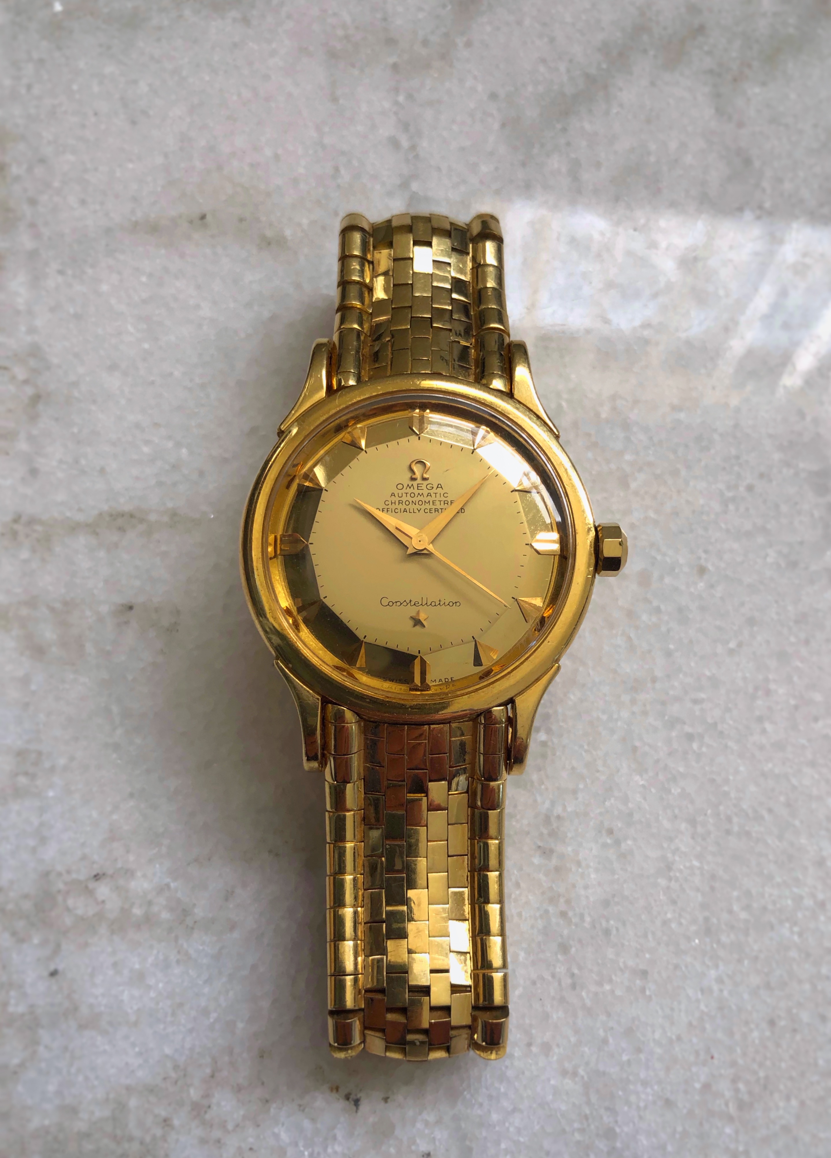 For sale is my Omega Constellation Deluxe with the original "brick" solid gold bracelet, I'm sure there is no introduction needed for this rare bird.
