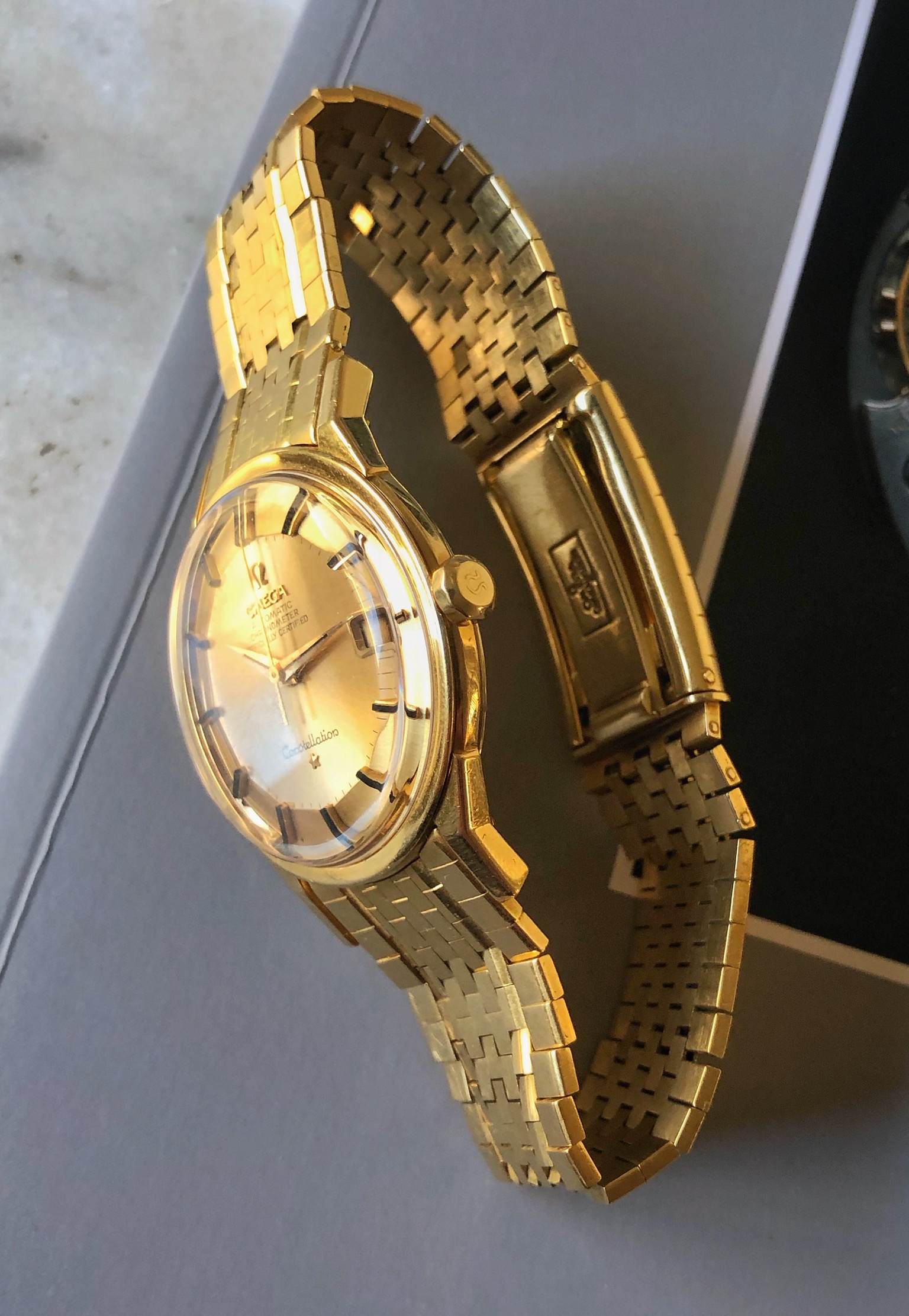 For sale is my Omega Constellation Deluxe with "dogleg" case and the original "brick" solid gold bracelet, I'm sure there is no introduction needed for this rare bird. I just wanted to listed this as soon as possible, but more photos will follow.
