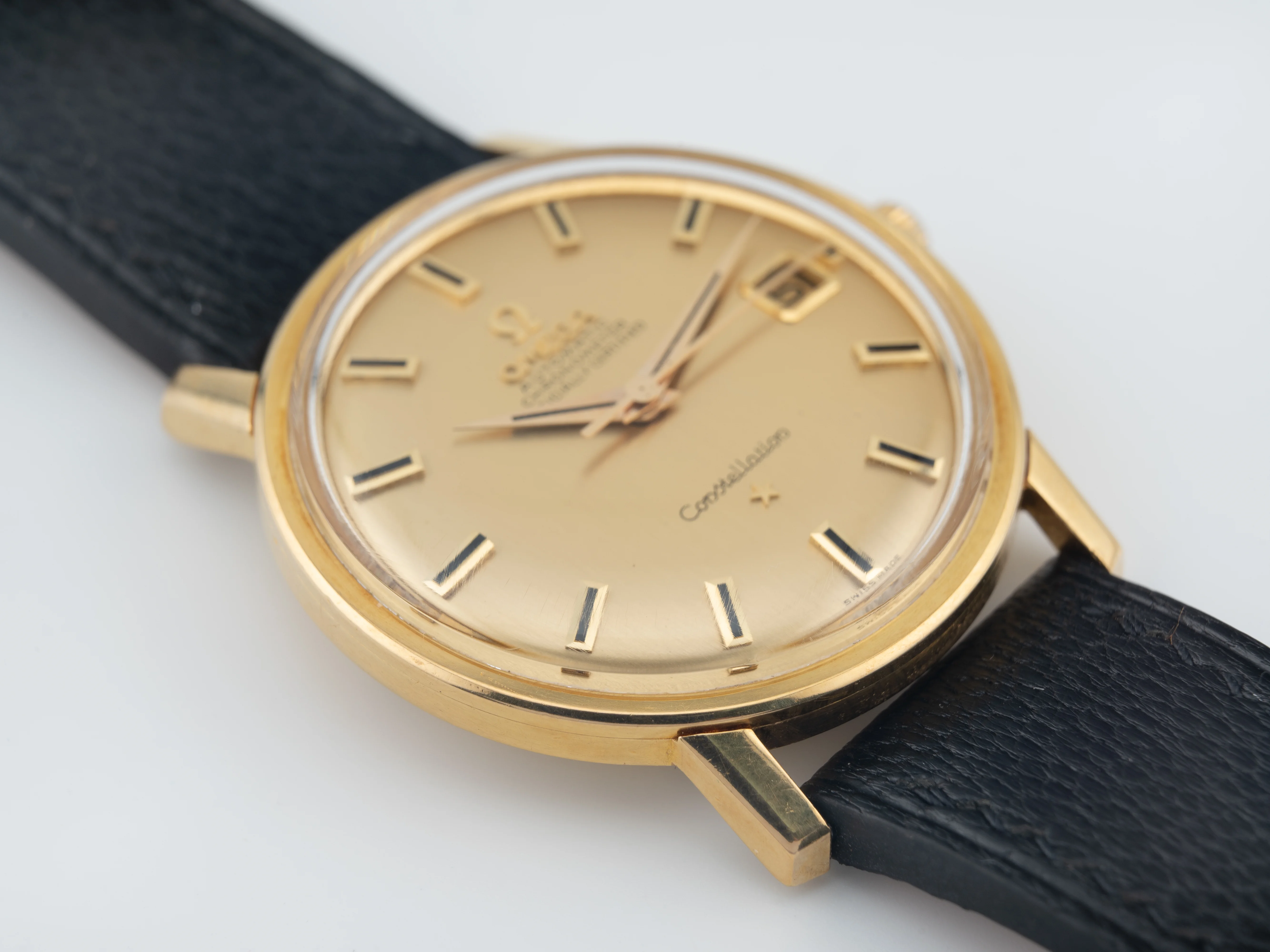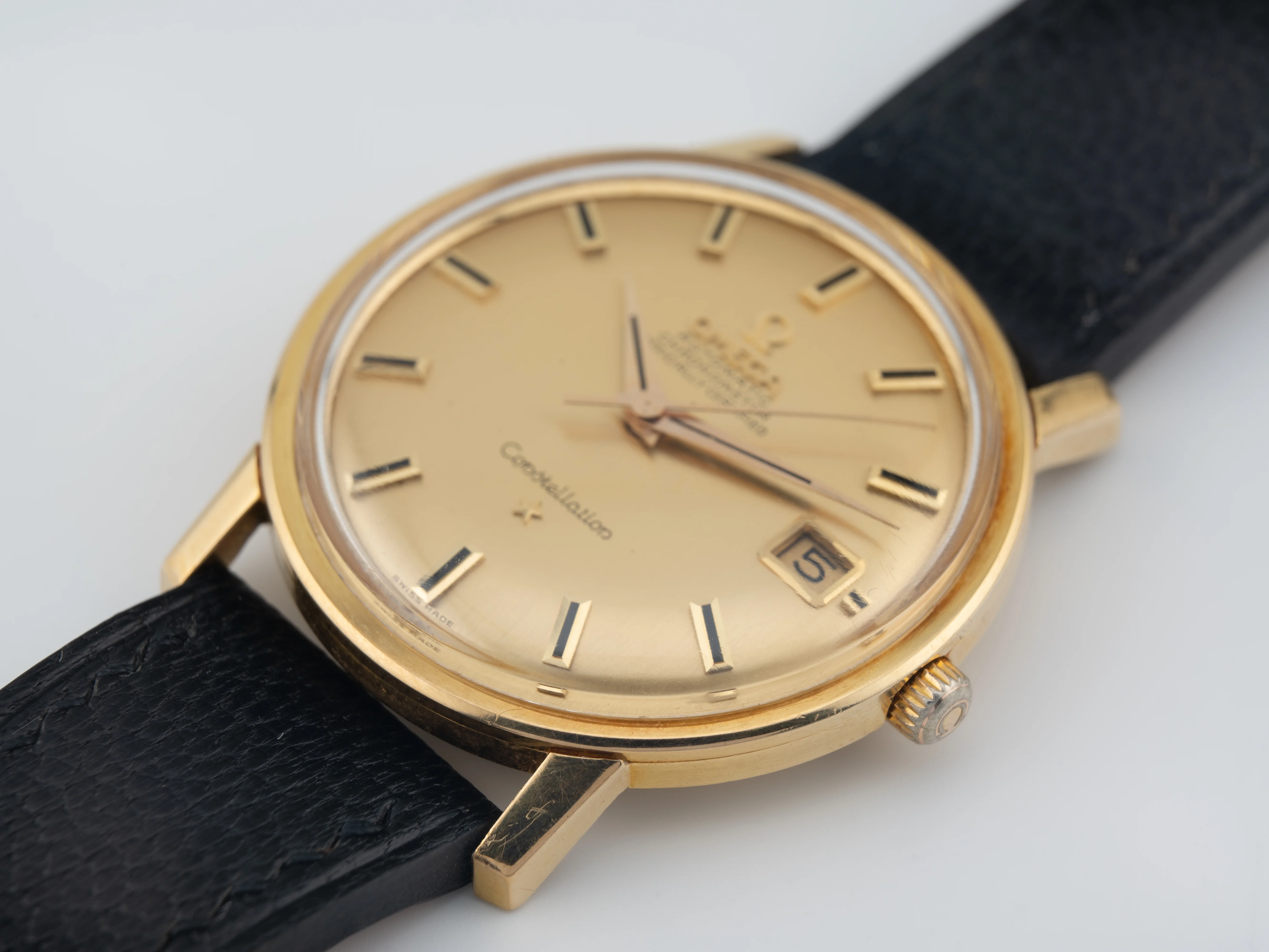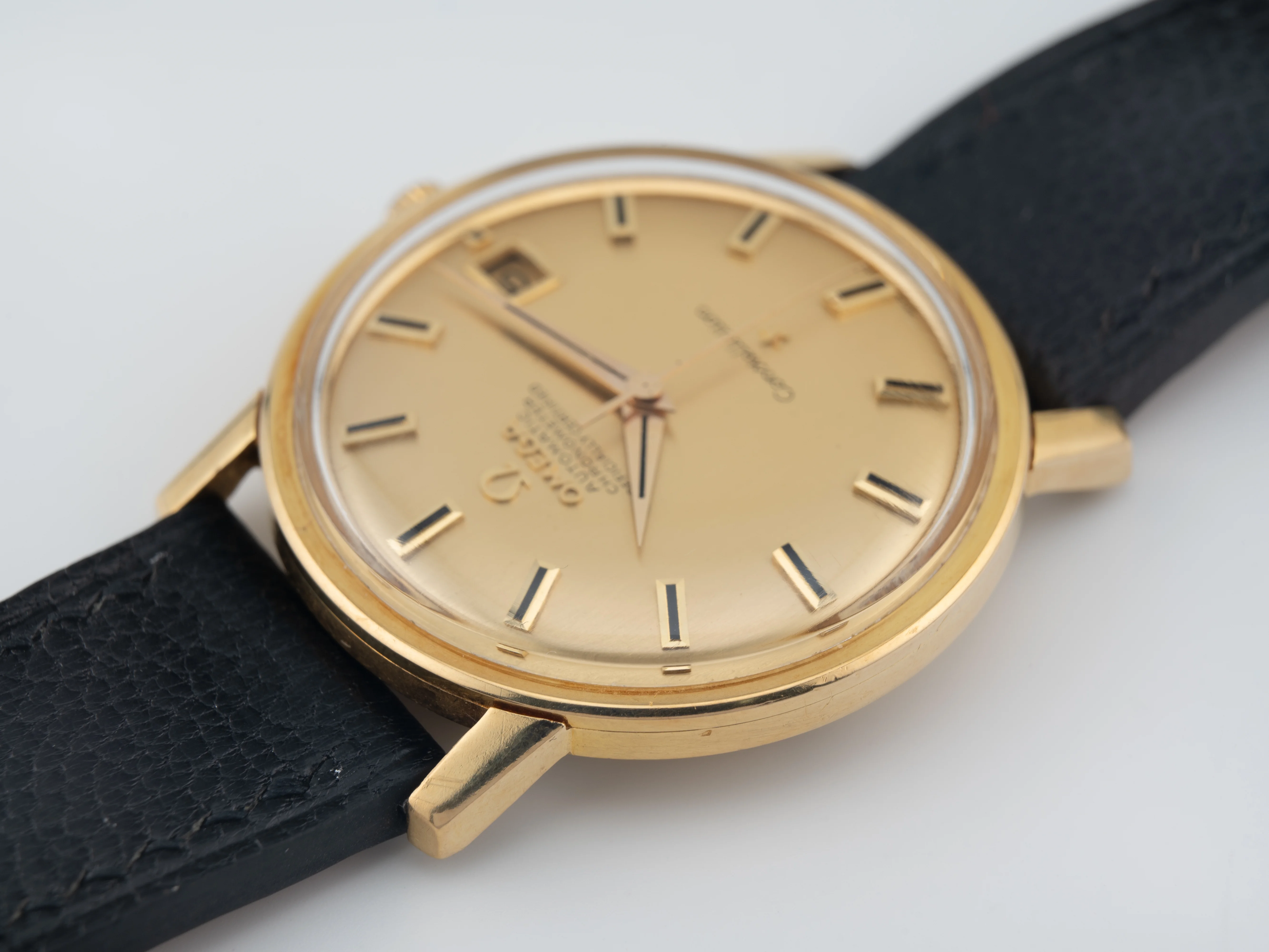 ·I'm putting up for sale my 18k yellow gold Omega Constellation Deluxe, reference 168.010/11, powered by the automatic cal. 564. I wrote about this one when I originally bought it, and got some good feedback from the forum. Since then, I got it a nice strap and sent it for a service. Selling because I got a couple of other gold watches and this is getting no wrist time. It's a pity because it's a beautiful watch.