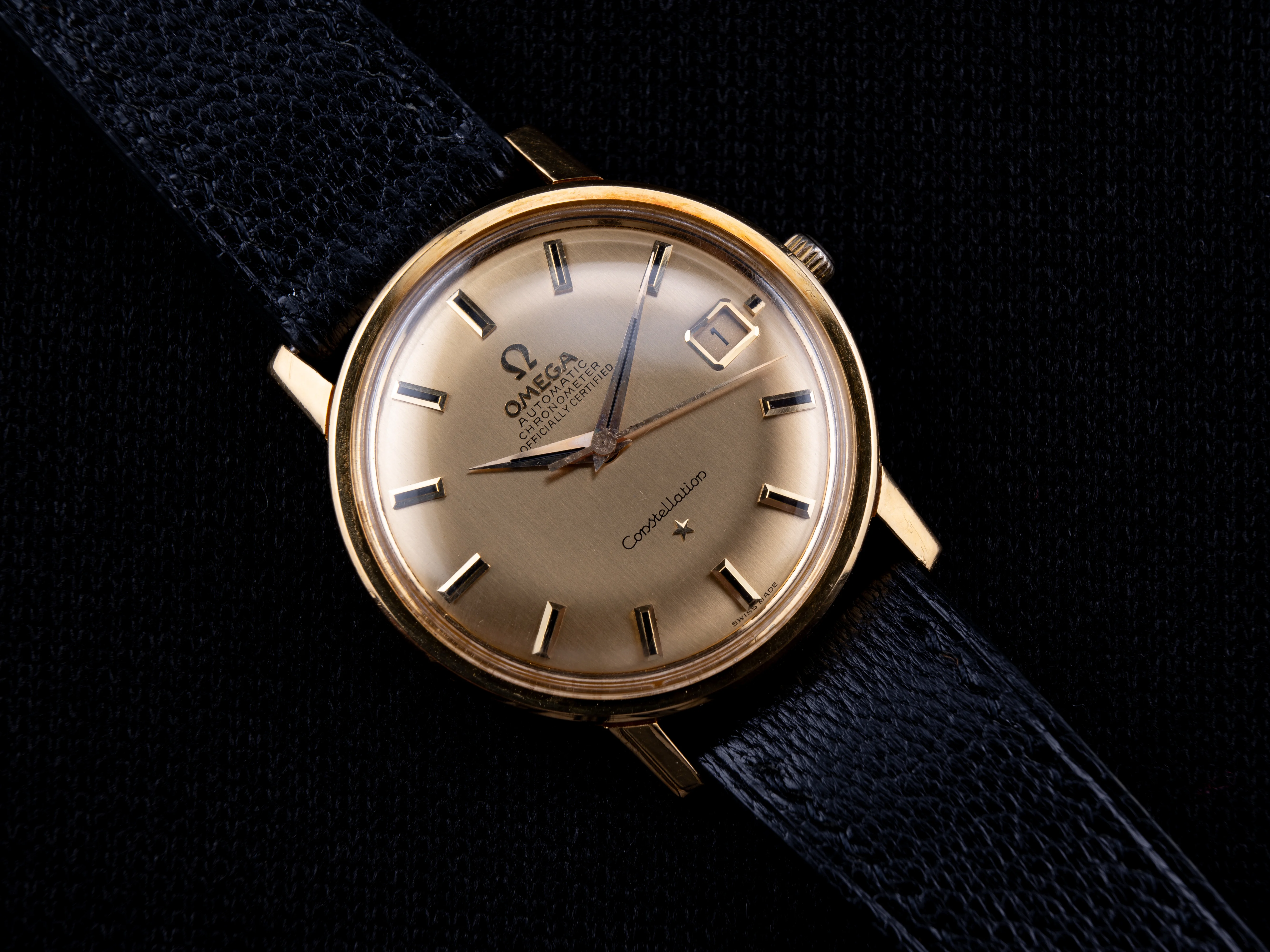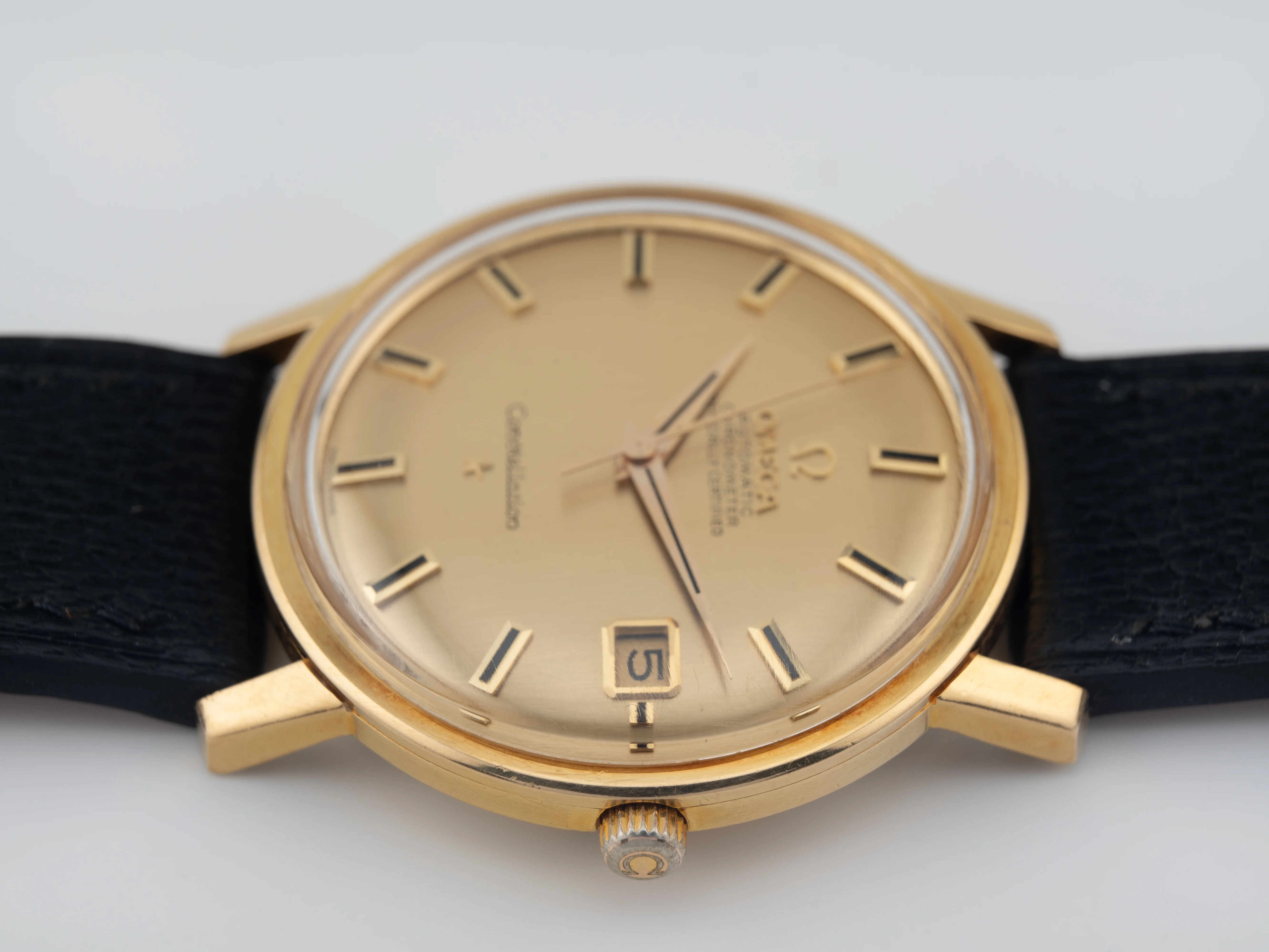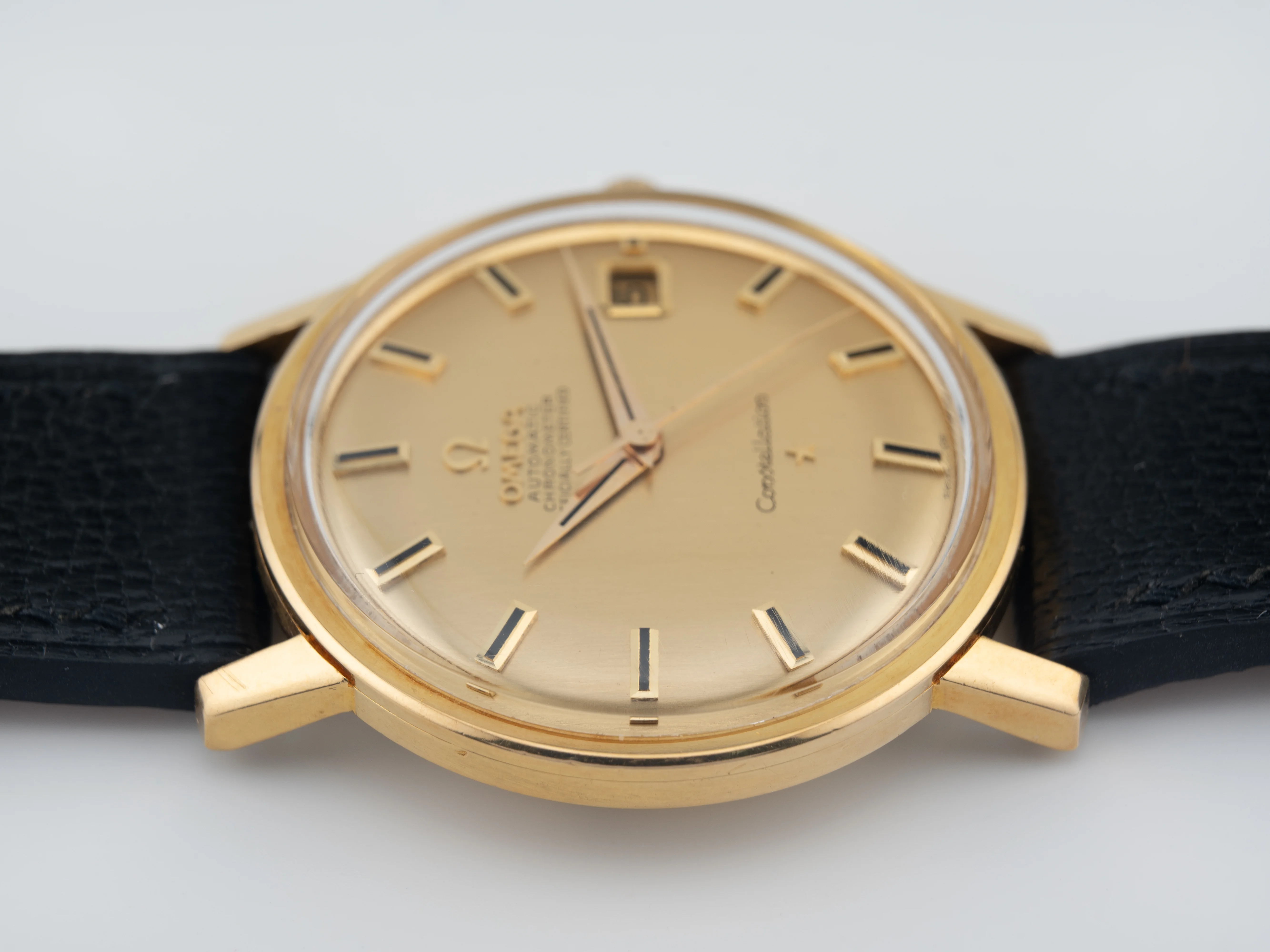 ·I'm putting up for sale my 18k yellow gold Omega Constellation Deluxe, reference 168.010/11, powered by the automatic cal. 564. I wrote about this one when I originally bought it, and got some good feedback from the forum. Since then, I got it a nice strap and sent it for a service. Selling because I got a couple of other gold watches and this is getting no wrist time. It's a pity because it's a beautiful watch.