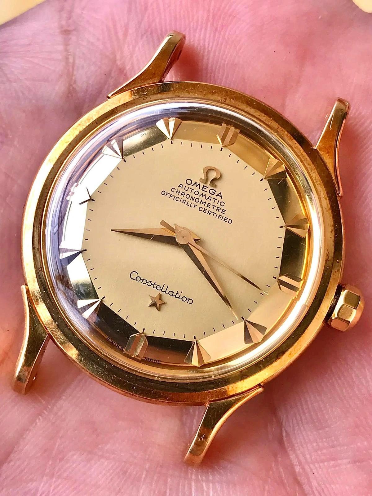 I’m looking at a 2699 constellation deluxe. Case looks sharp with bevels in tact. Supposedly original sticker on the caseback which I’m not so sure about as didn’t think the constellations came with a caseback sticker. I intend to remove it as it looks ugly. There’s a small scratch on the top right lug which isn’t as deep as it displays in these photographs. The dial again is cleaner than it looks. A lot of this is scratches on the crystal. Hands looks correct, dial and case in good condition.
