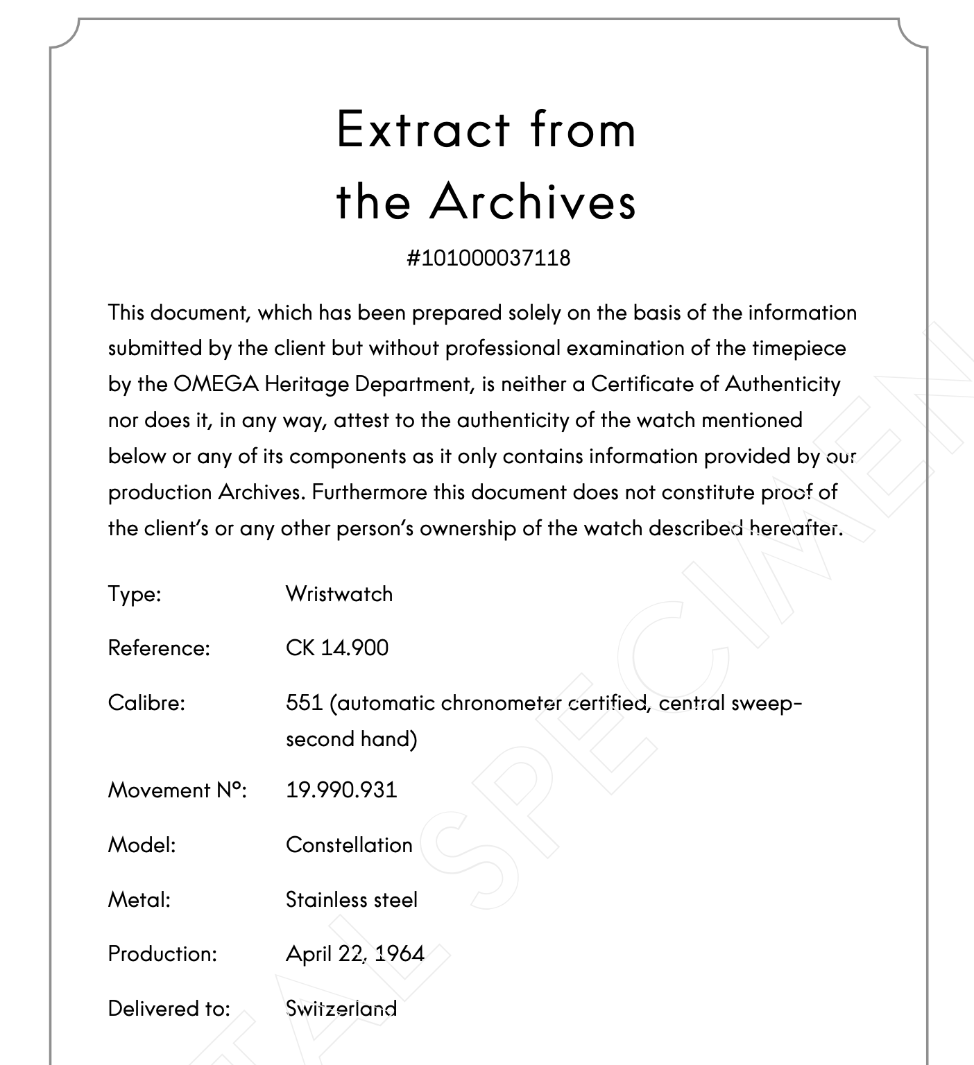 Furthermore, I will present one watch that might be the earliest example of reference 167.005 too with the movement number as low as 19,991,323. This watch was produced on 2 April 1964 as shown by “Extract from the Archives “. It was sold in the forum since 2015