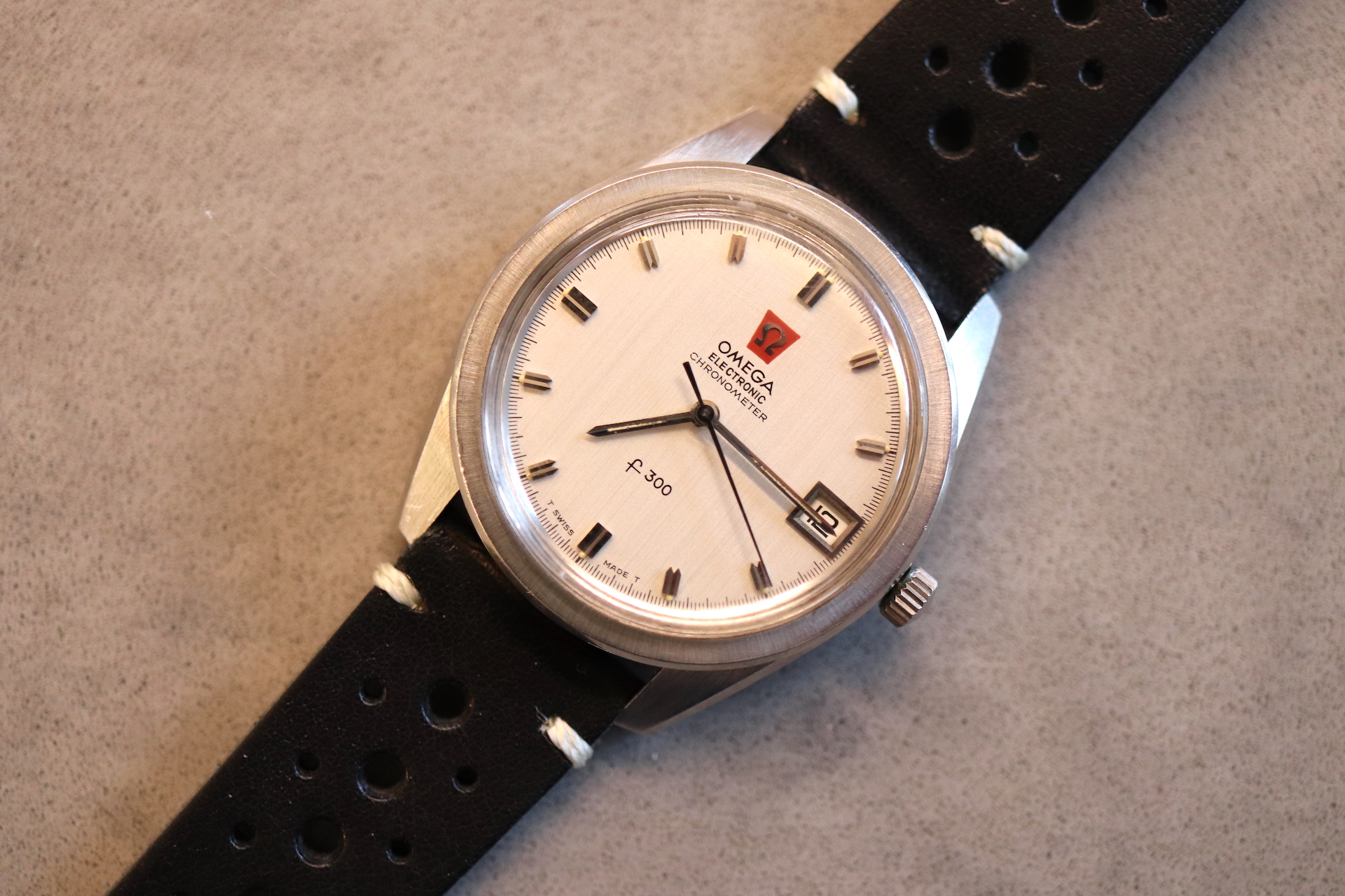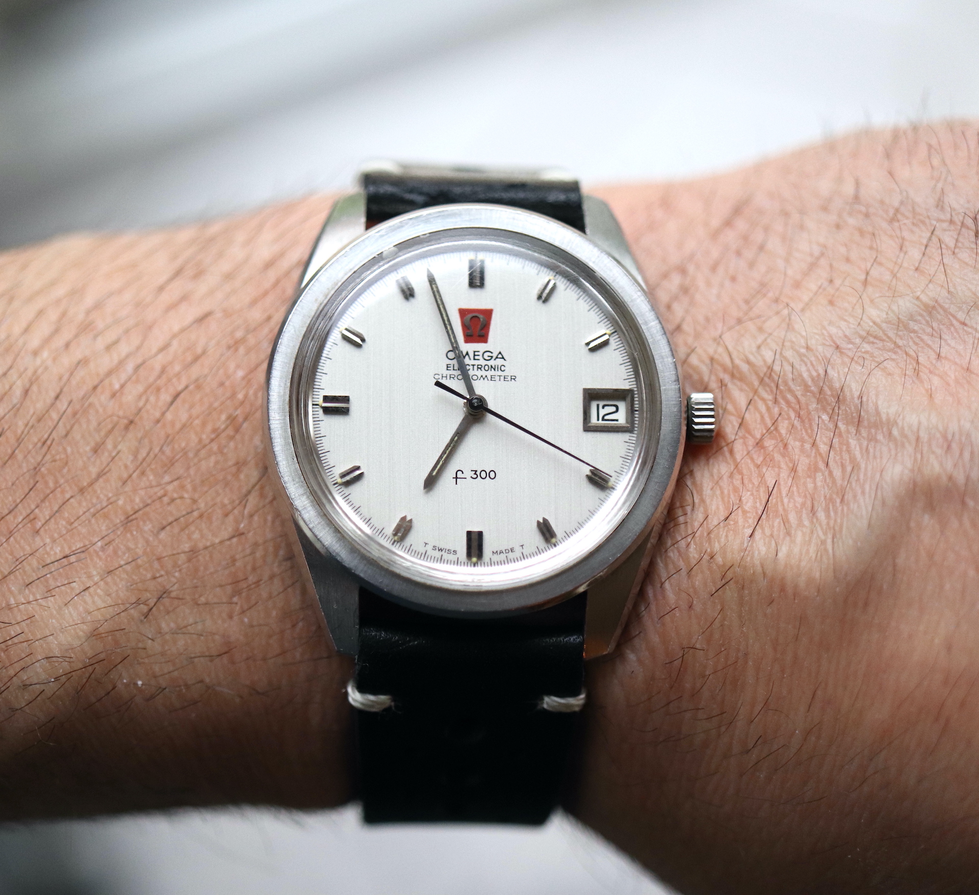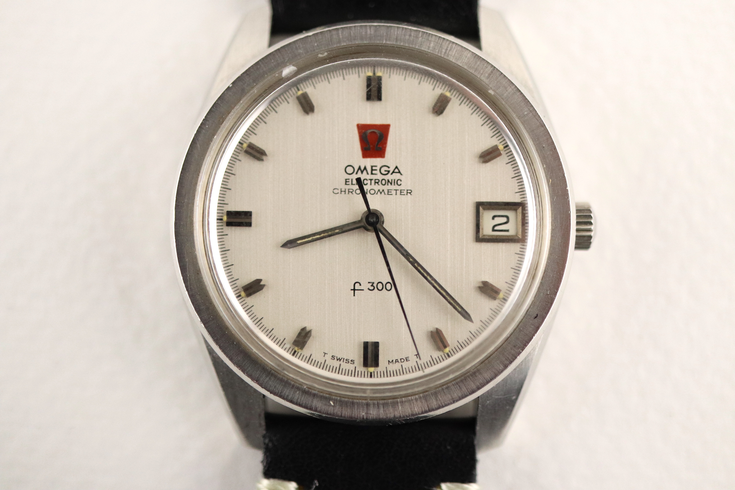 ·For sale, I have an Omega Constellation F300 Ref: 198.001. It has the Caliber 1250 which is an electronic movement. The watch works fine but I don't have any service history. The calendar date changes automatically which often is an issue on these watches. It appears to be all original. New battery installed. The serial number would suggest the manufacture date somewhere in 1970. The watch will comes with a new black leather strap.
