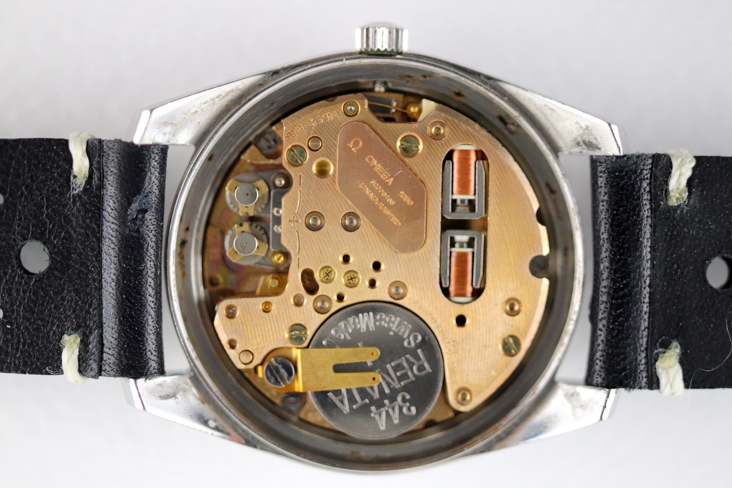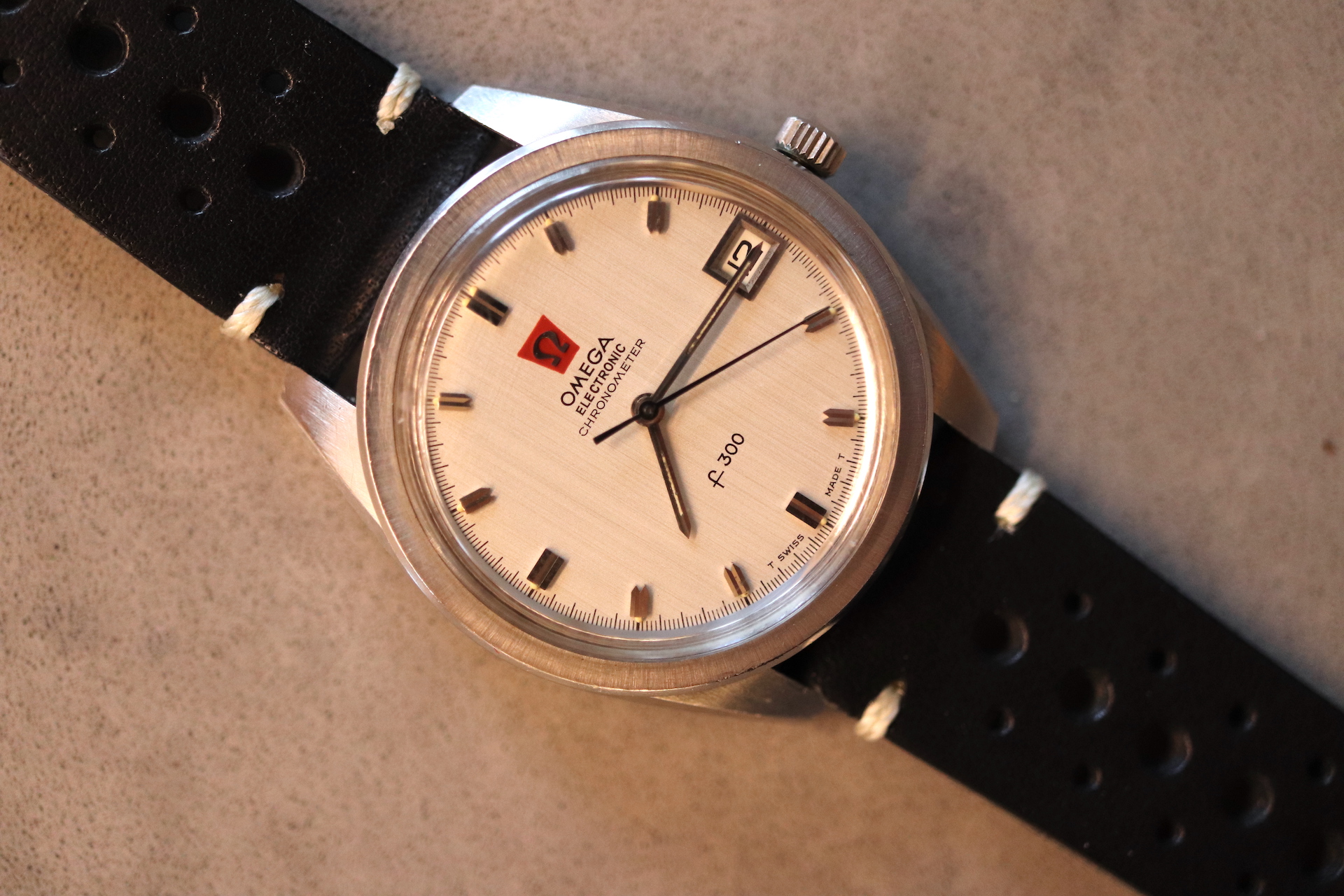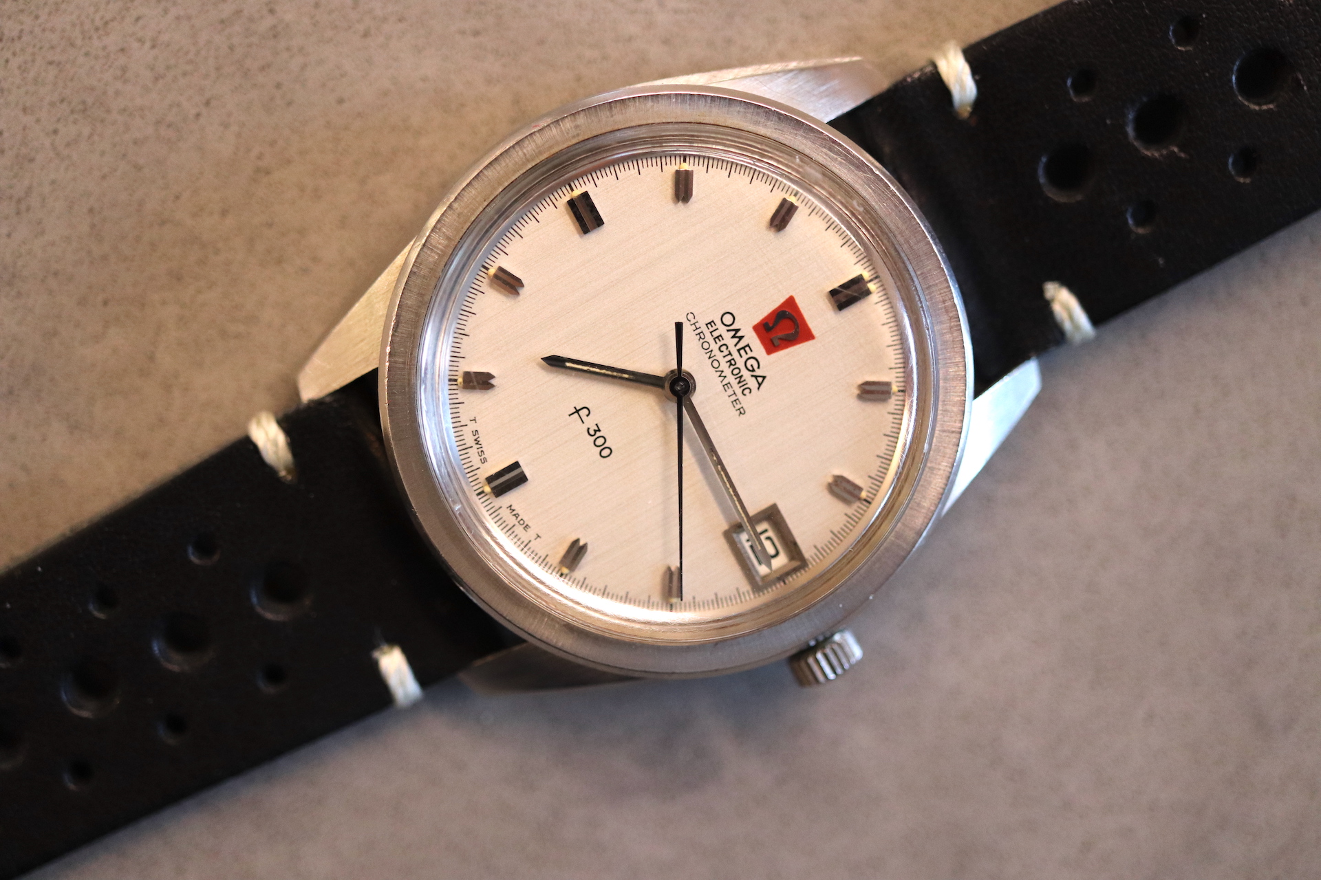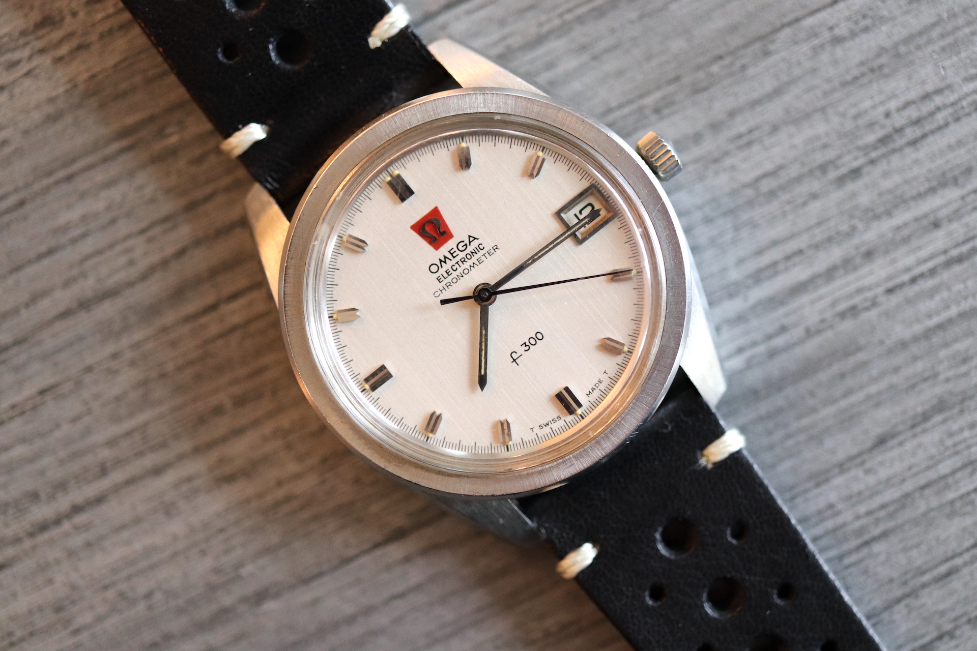 ·For sale, I have an Omega Constellation F300 Ref: 198.001. It has the Caliber 1250 which is an electronic movement. The watch works fine but I don't have any service history. The calendar date changes automatically which often is an issue on these watches. It appears to be all original. New battery installed. The serial number would suggest the manufacture date somewhere in 1970. The watch will comes with a new black leather strap.