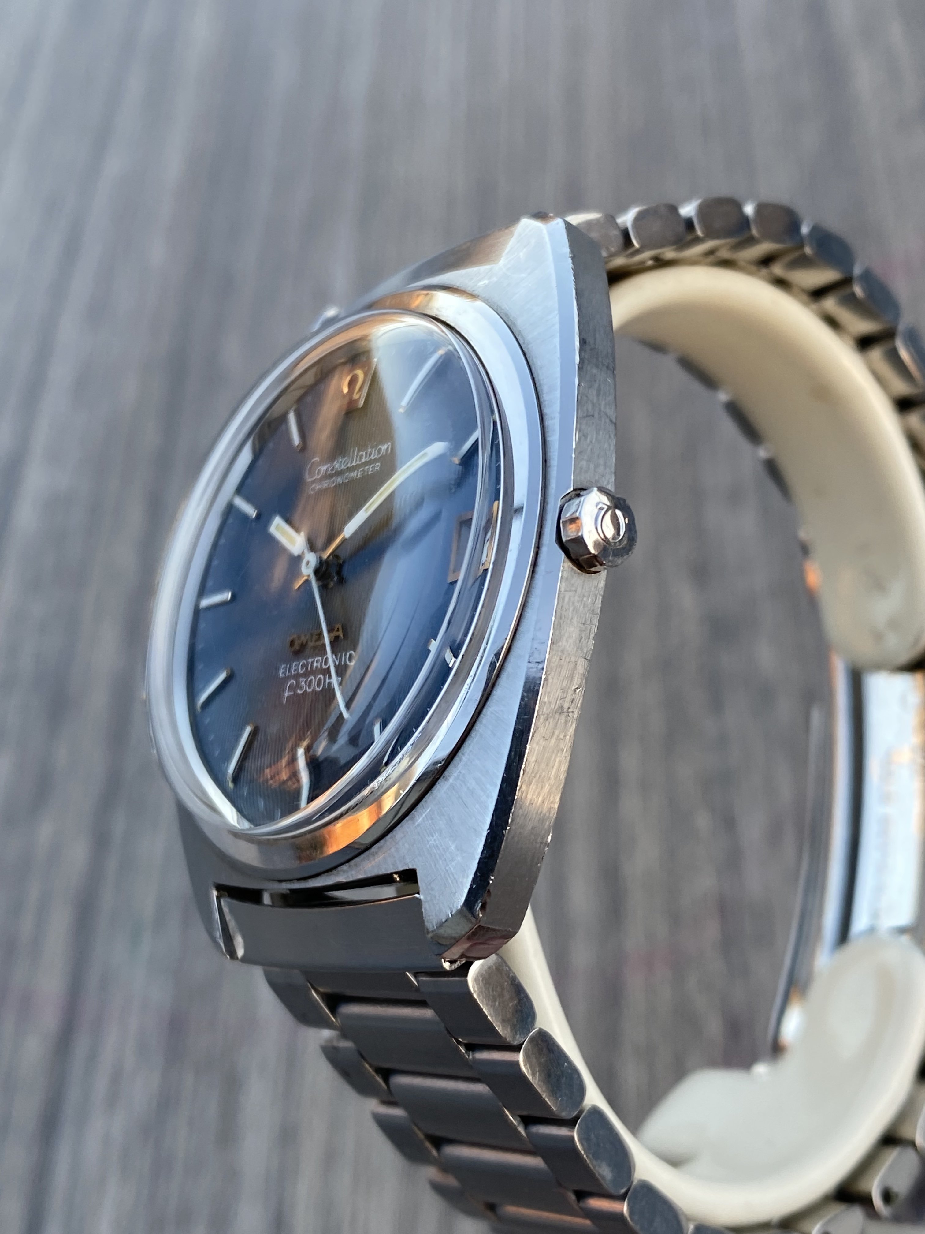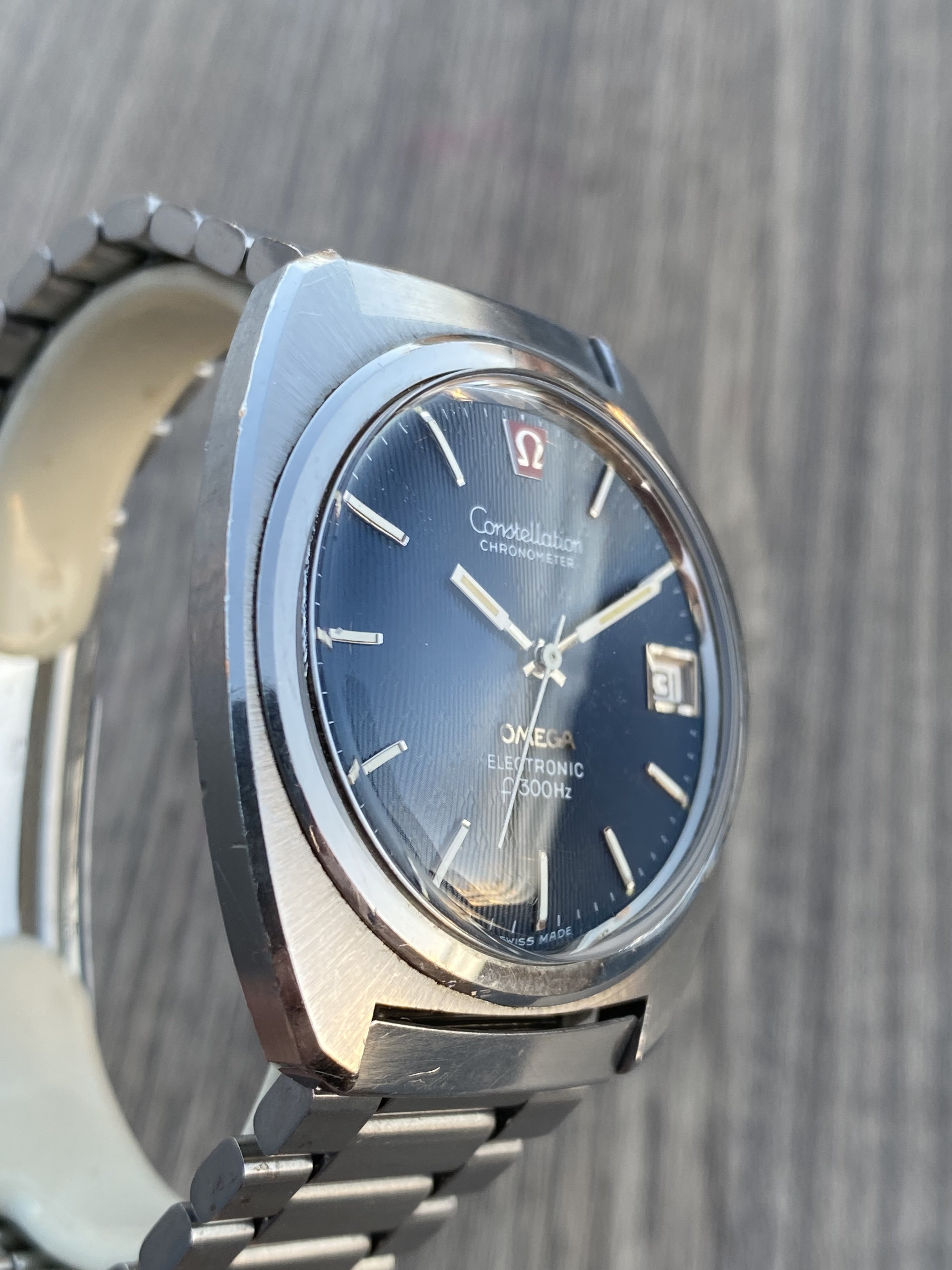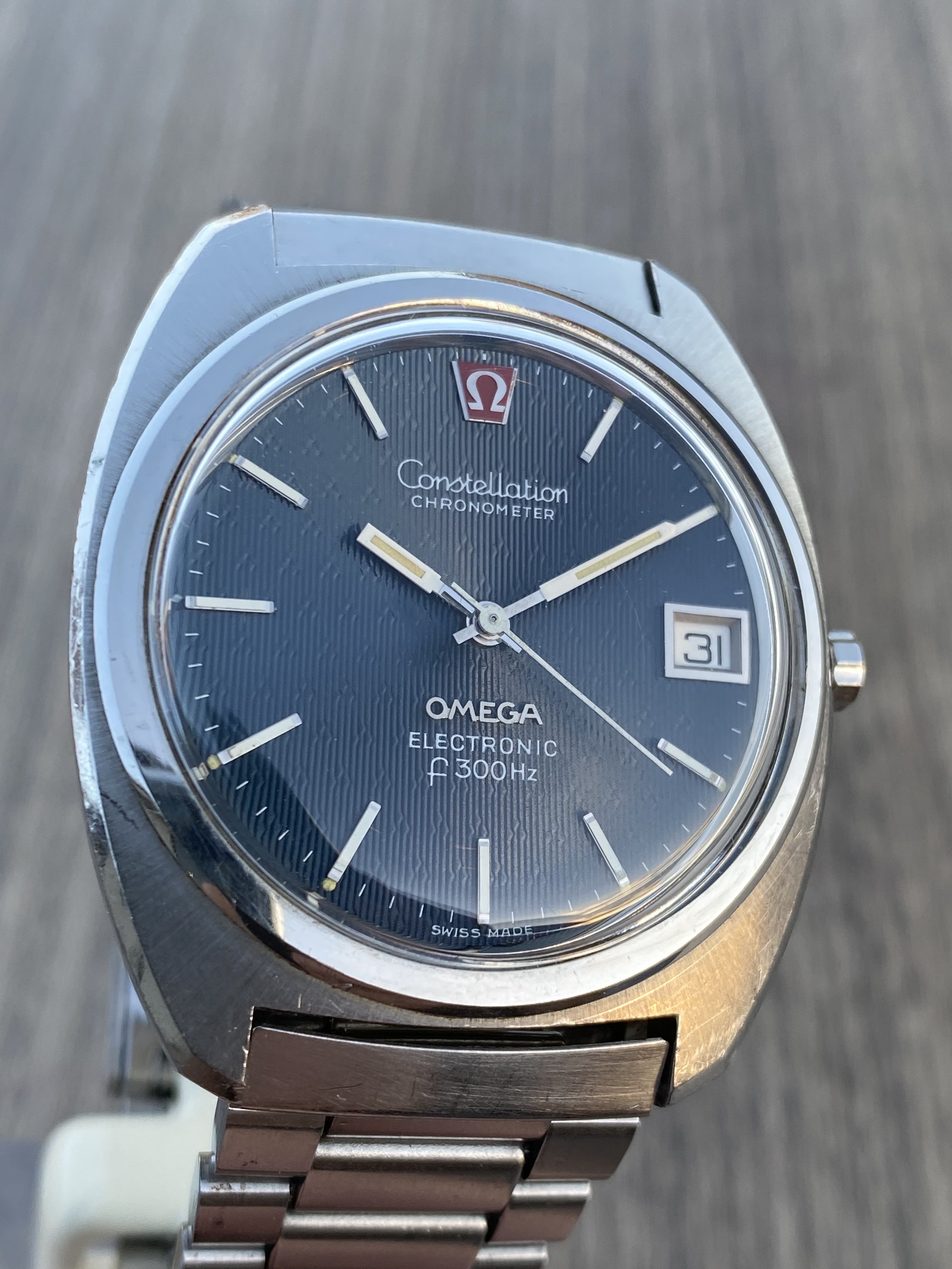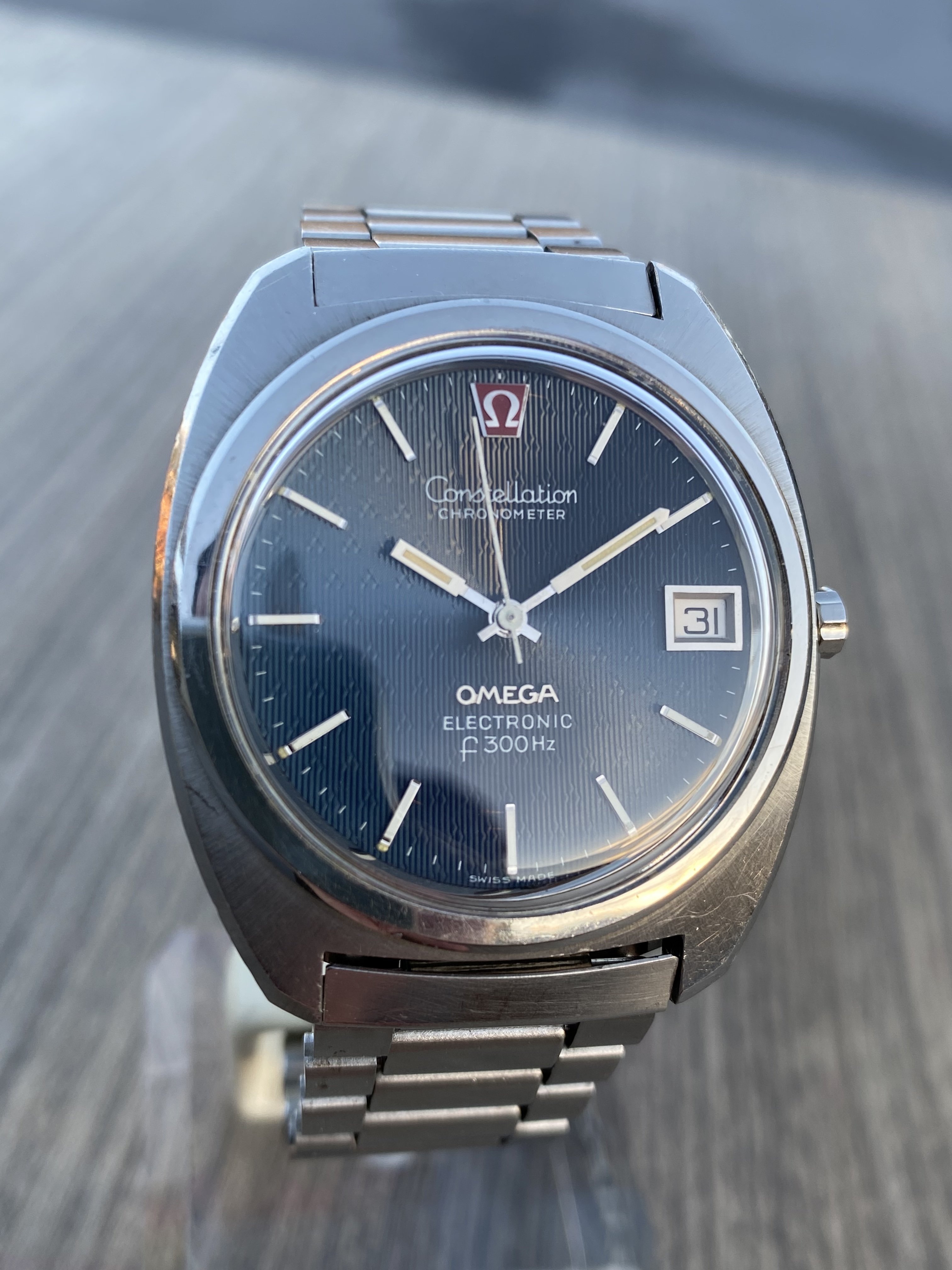 ·Selling my nice Omega 198.002 f300Hz hummer in nice pre-owned condition with original case finish. Exquisite blue dial with a very rare triangular guilloche pattern. Crystal is generic (no logo), battery was changed last year and it’s still ticking strong. I believe the watch is gaining a couple of minutes per month, which AFAIK means it is running within chronometer specs. Service history is unknown but it’s definitely working without issues.