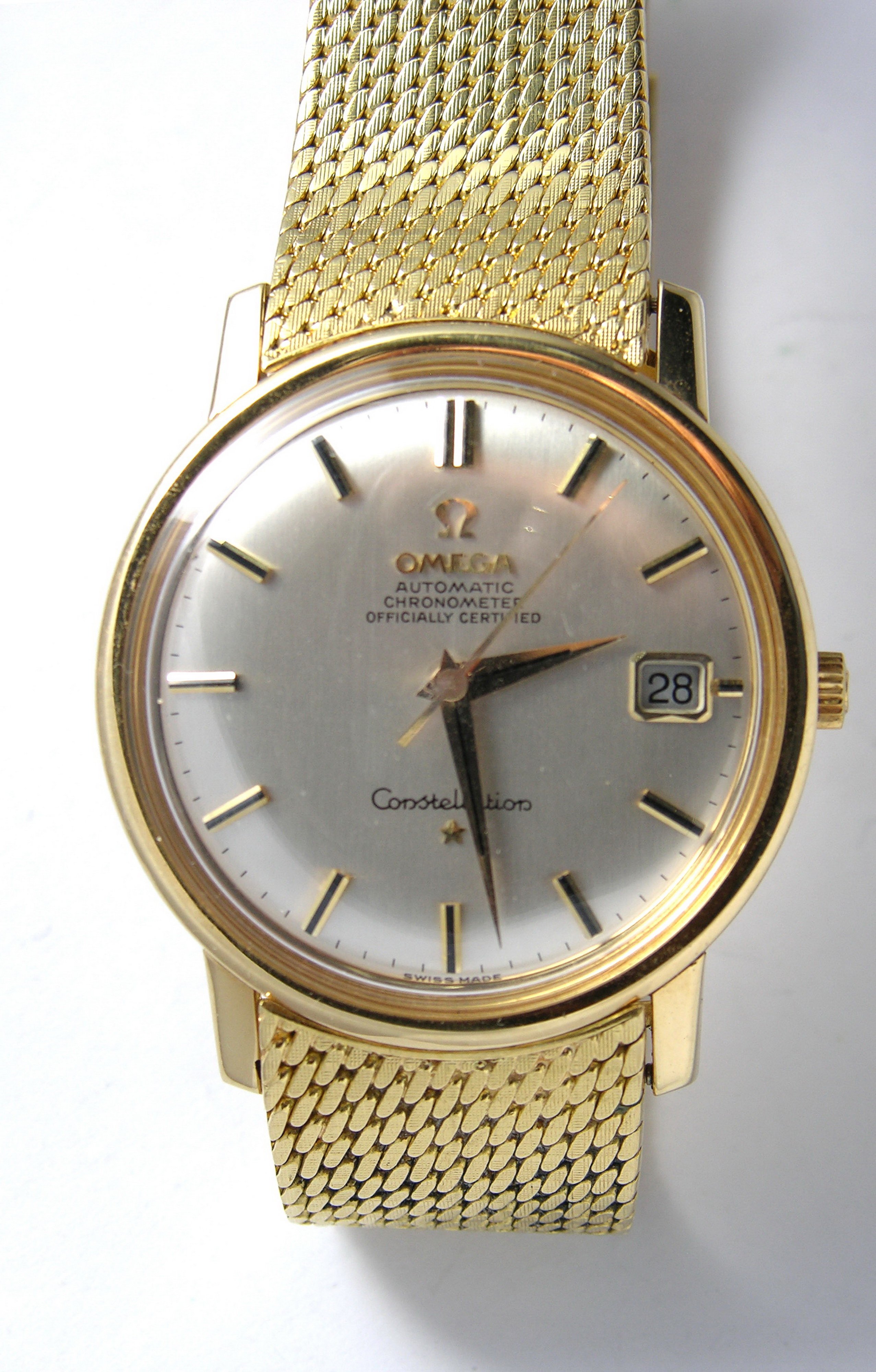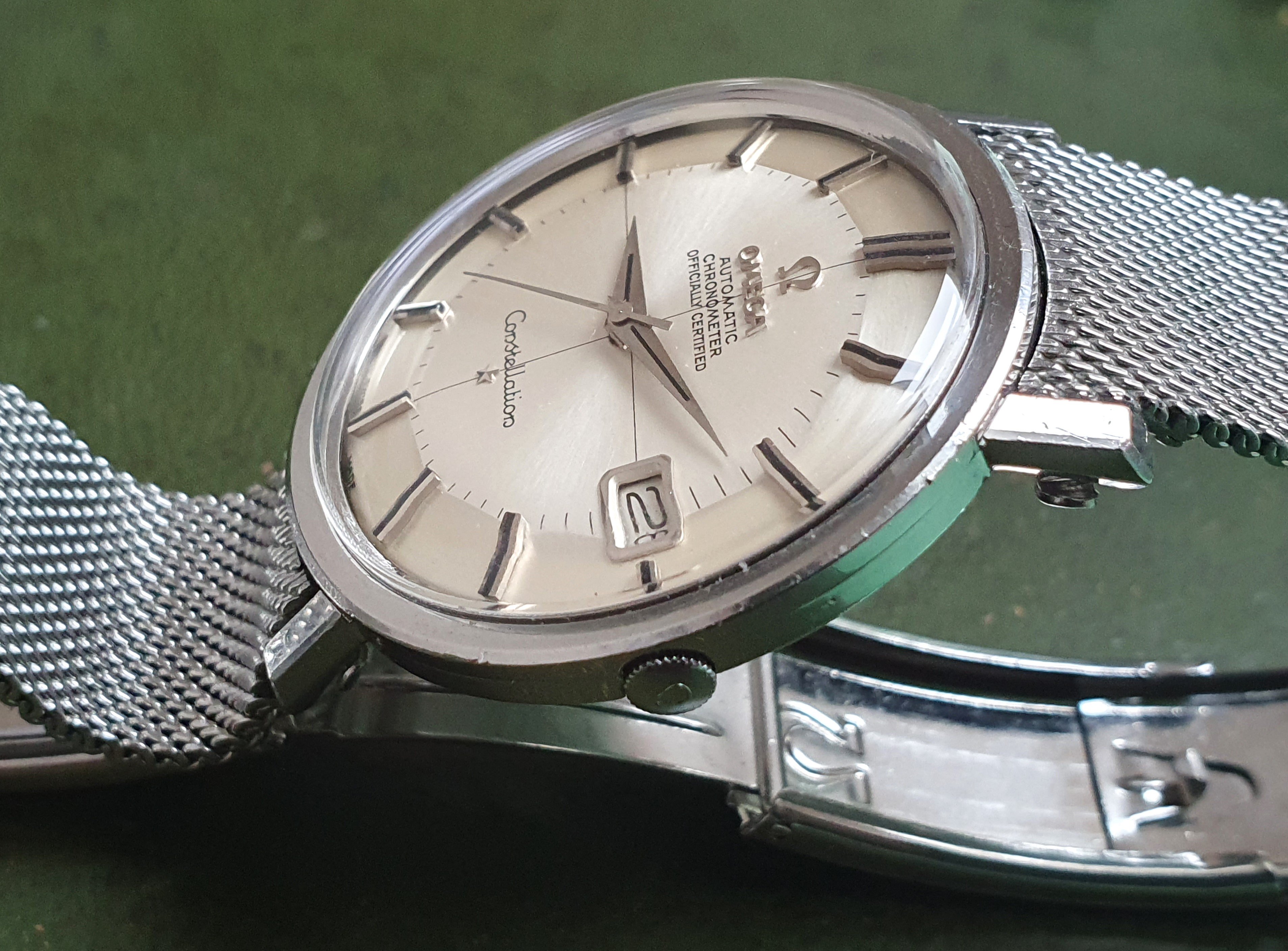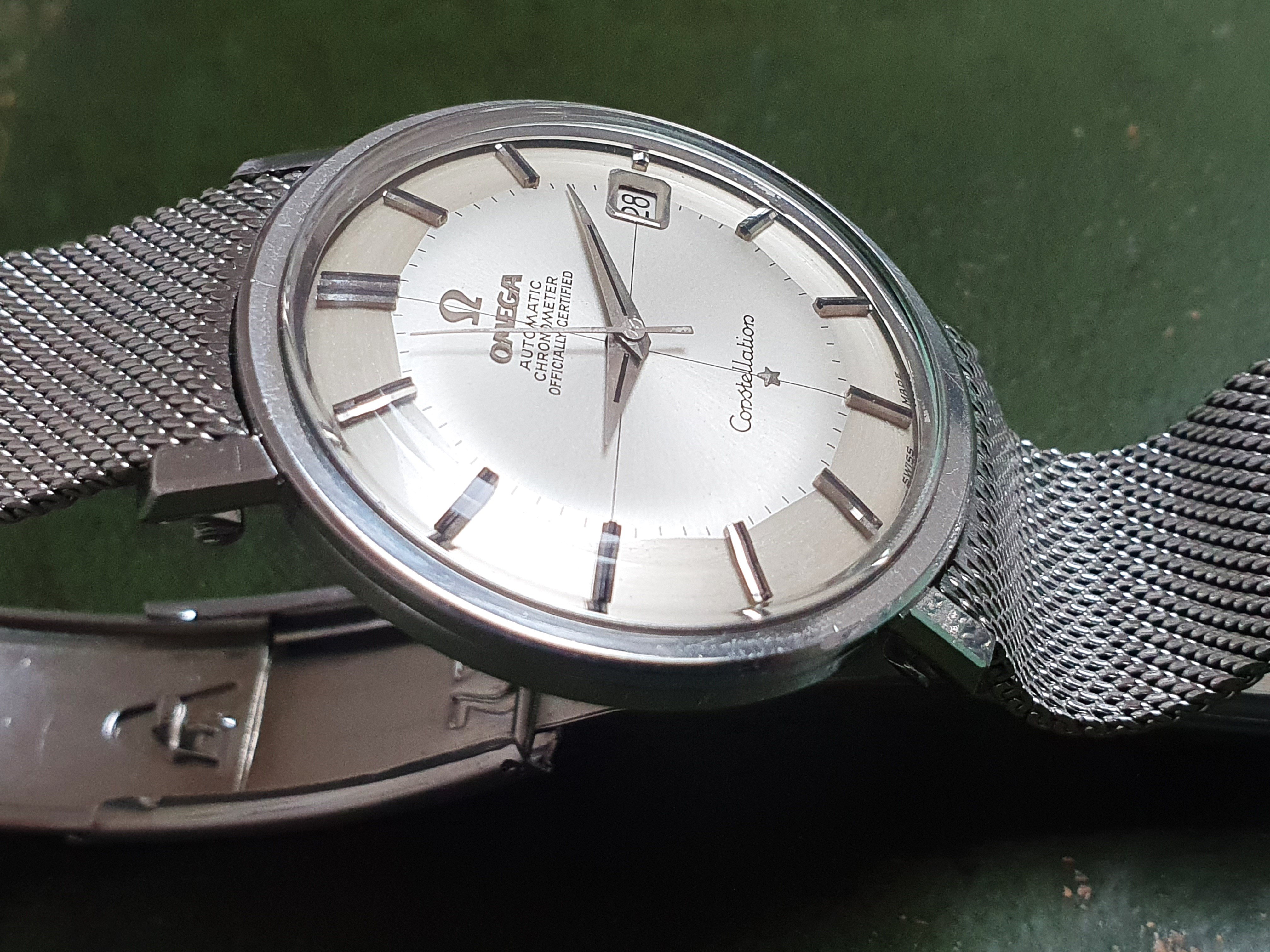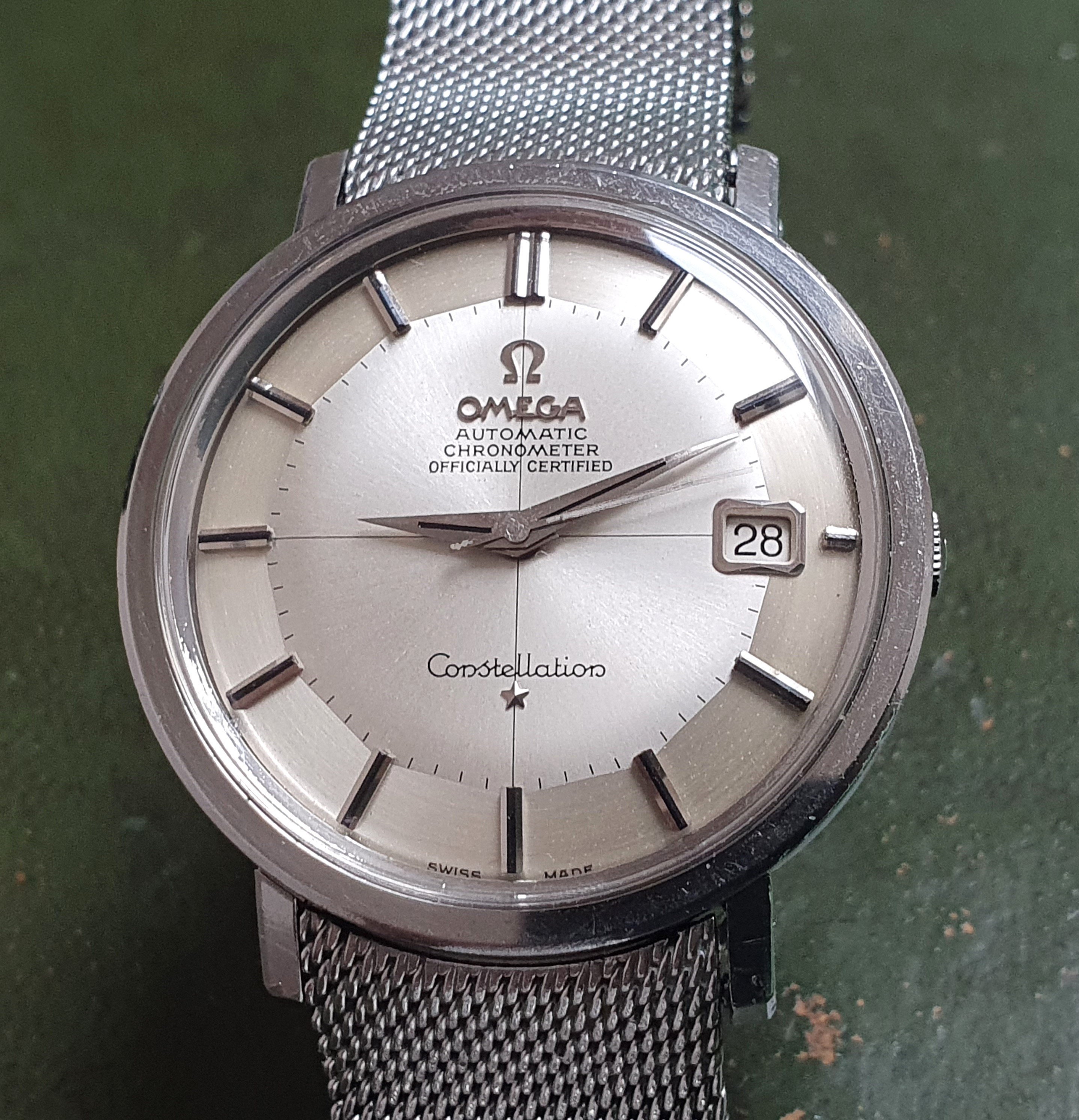 Came across this Constellation with hidden crown which seems to be in good condition (although no photos of the movement at the moment). One things that I notice is the "T Swiss Made T" which in my understanding indicates tritium on the dial. However, neither the hands nor the index batons seem to have tritium - just onyx inlays.