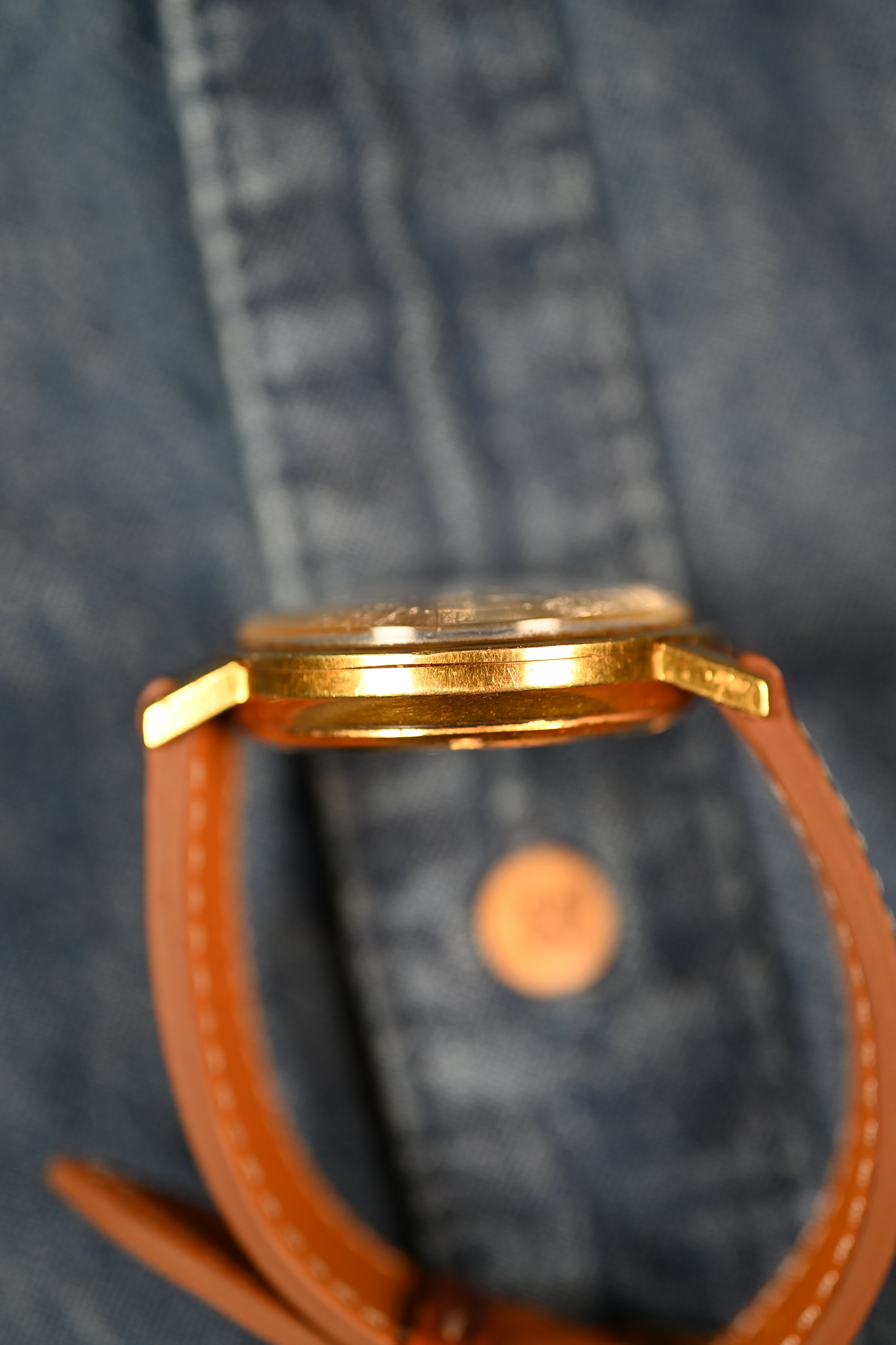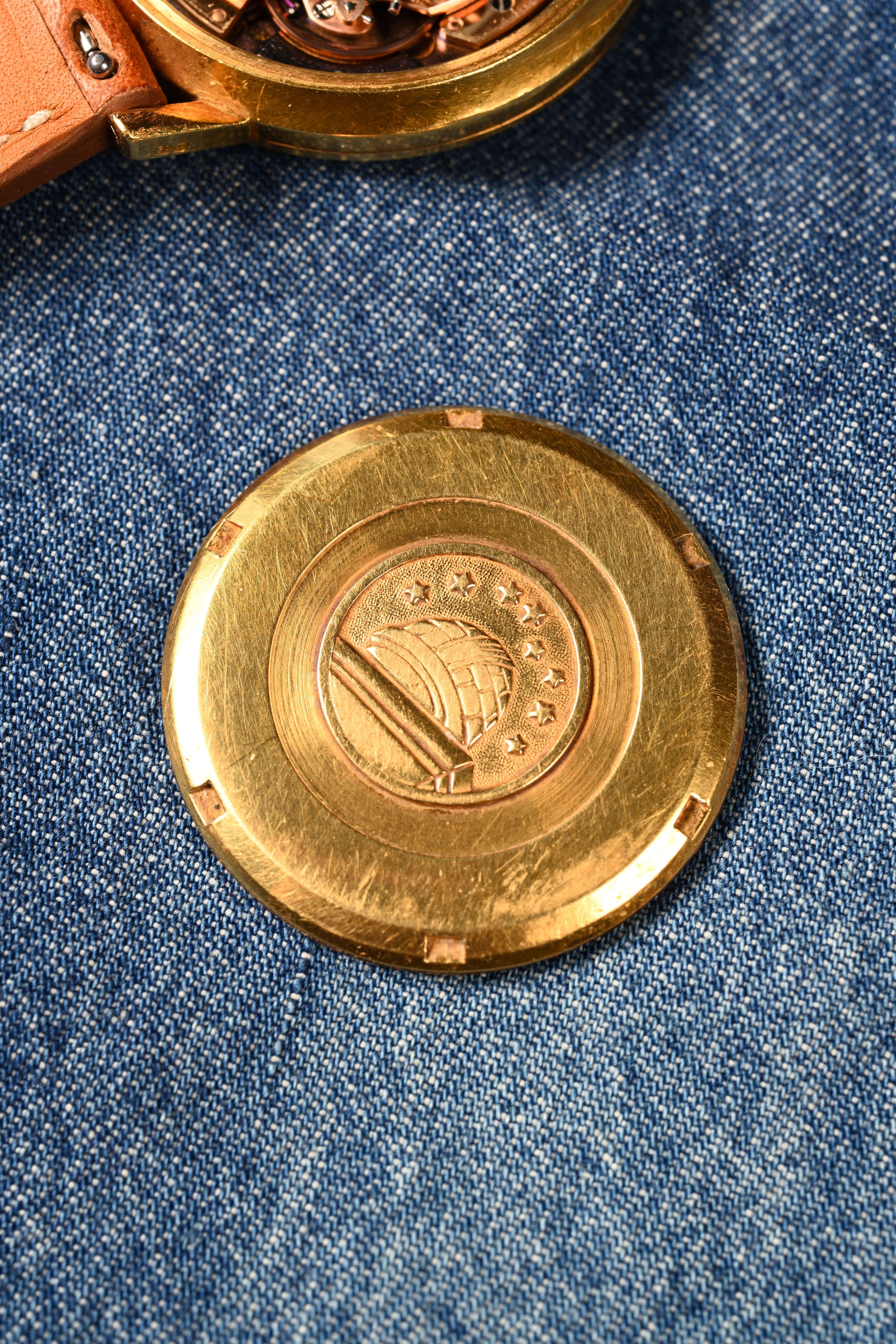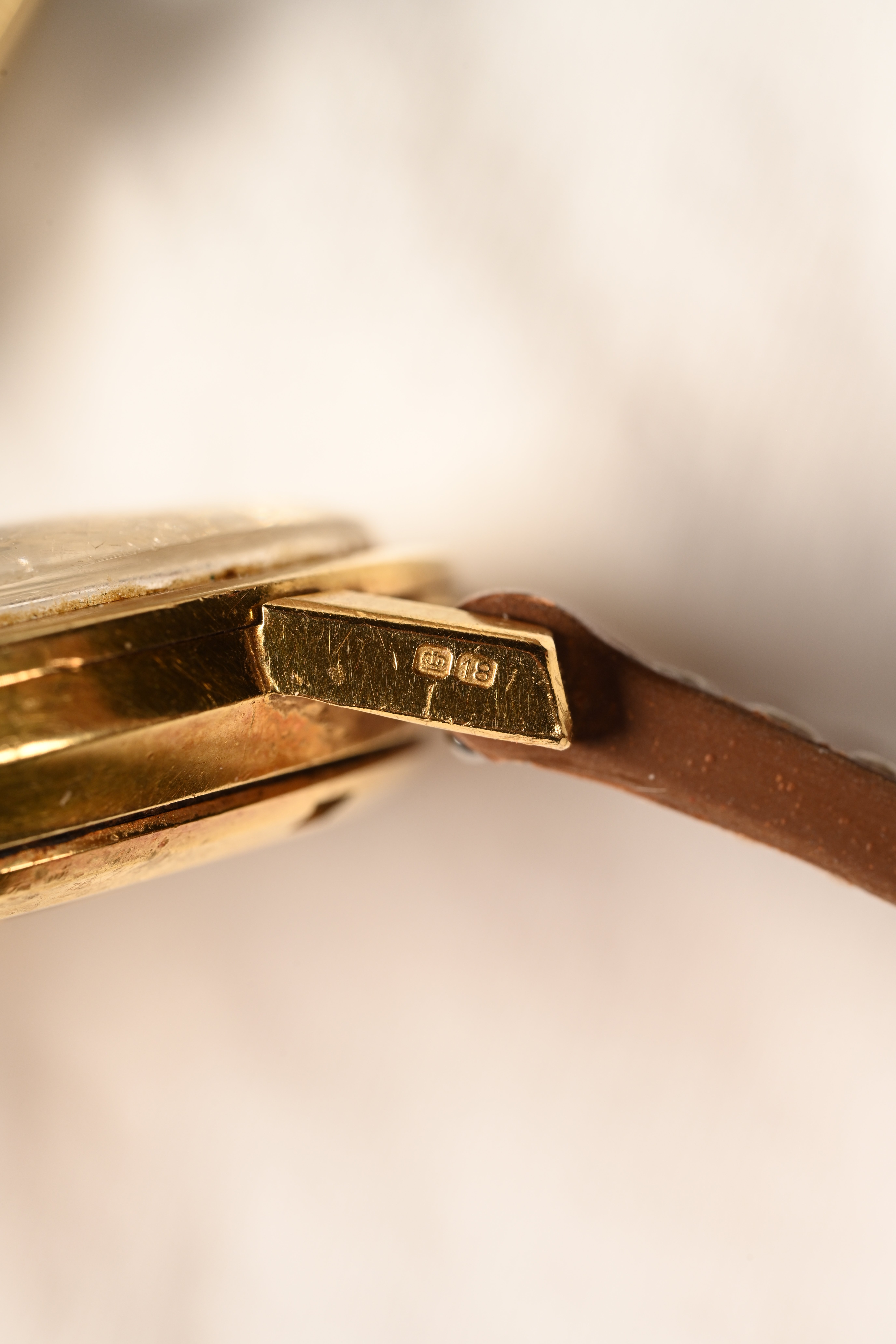 CASE: The 35.5mm solid 18kt yellow gold case is in good shape. It has been lightly polished in the past. The case retains distinct factory lines for the beveled edge lugs. The medallion on the caseback is sharp and defined. The crystal is original to the watch. The London manufactured case presents with wear that is even throughout. The case presents with a beautiful rosy red patina in certain areas - something that is known to happen with gold cases after years of sitting.