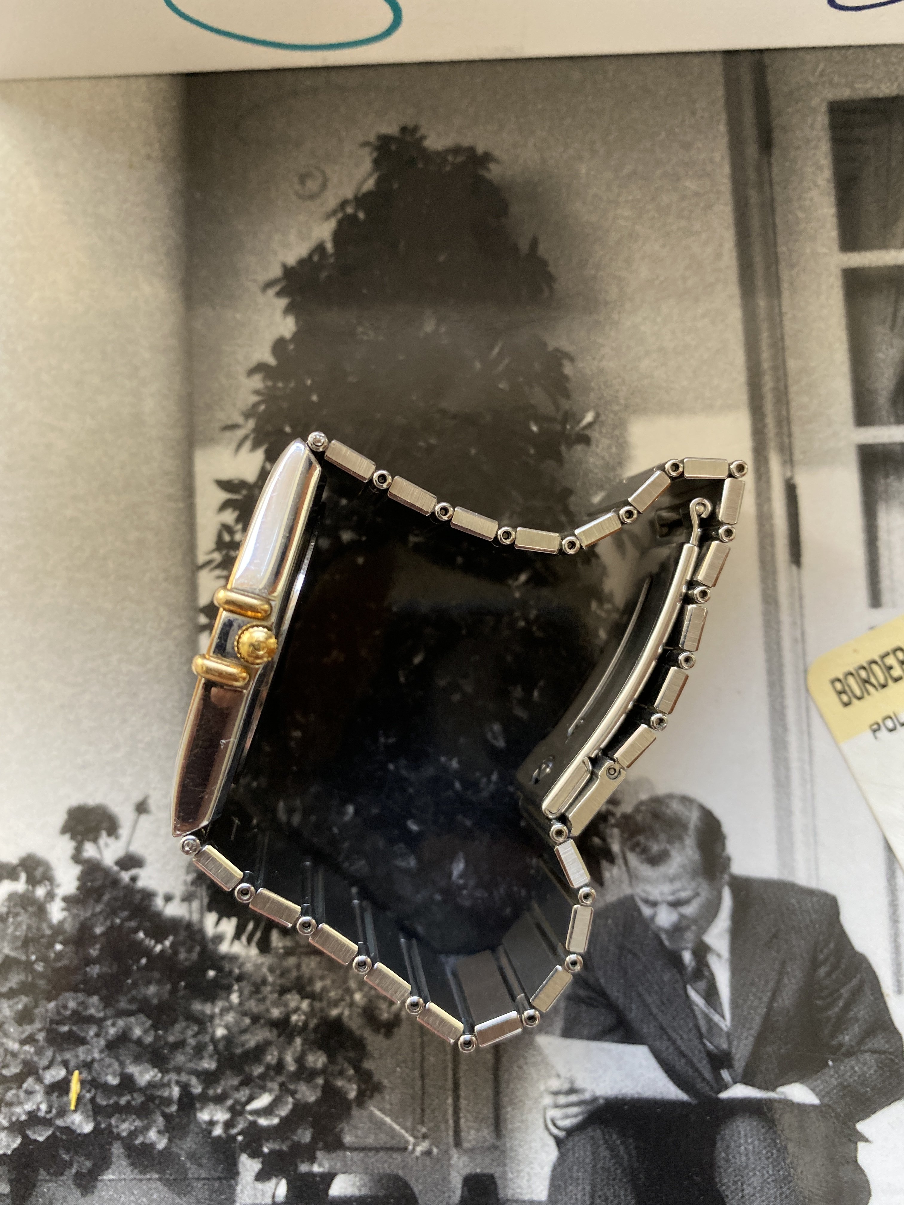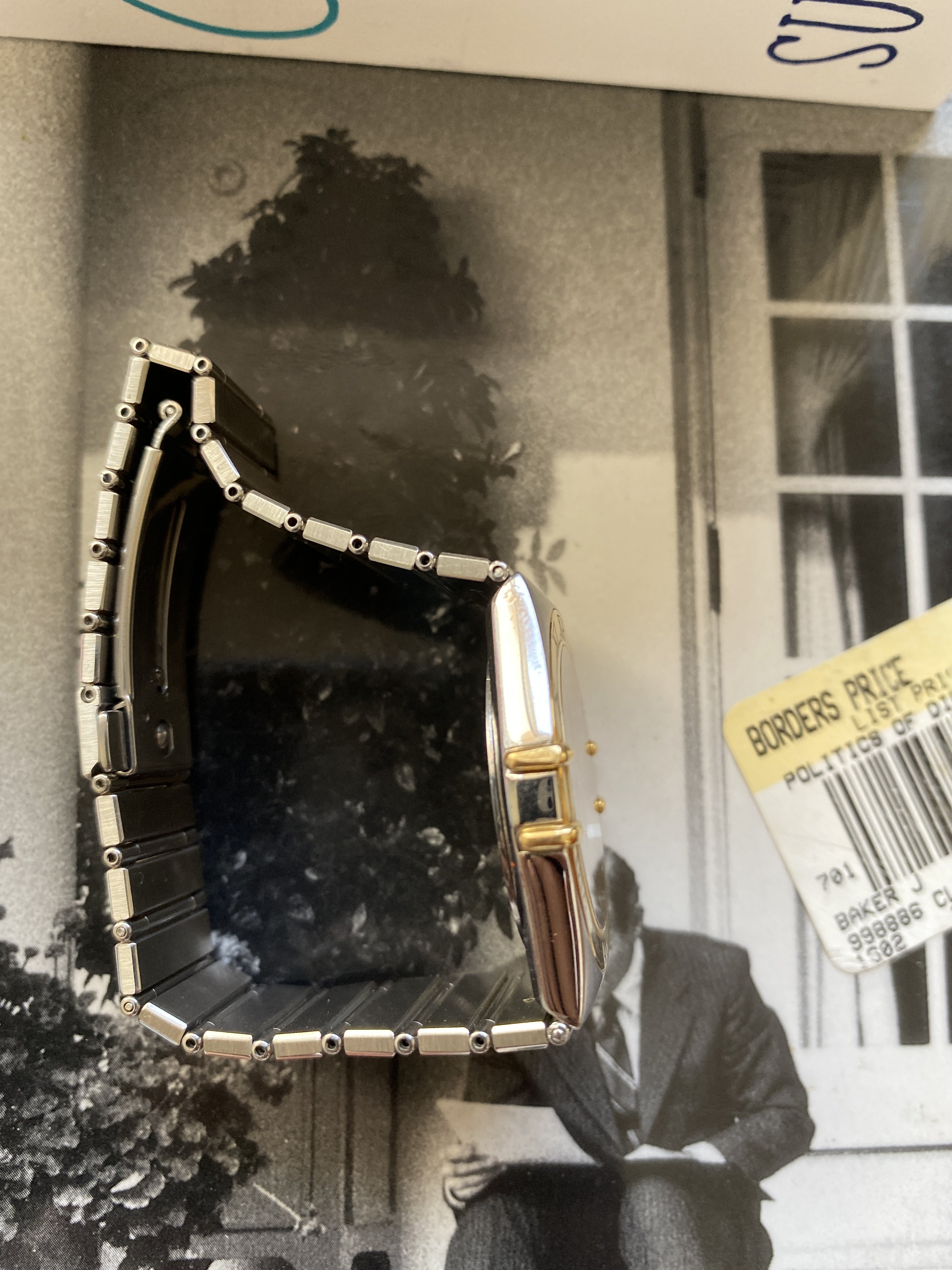Case: The case is in good condition generally. It appears to have been moderately used before I purchased it. There are some light scratches consistent with that use. It is steel and 18kt gold. 33mm wide including the claws but not including the crown.