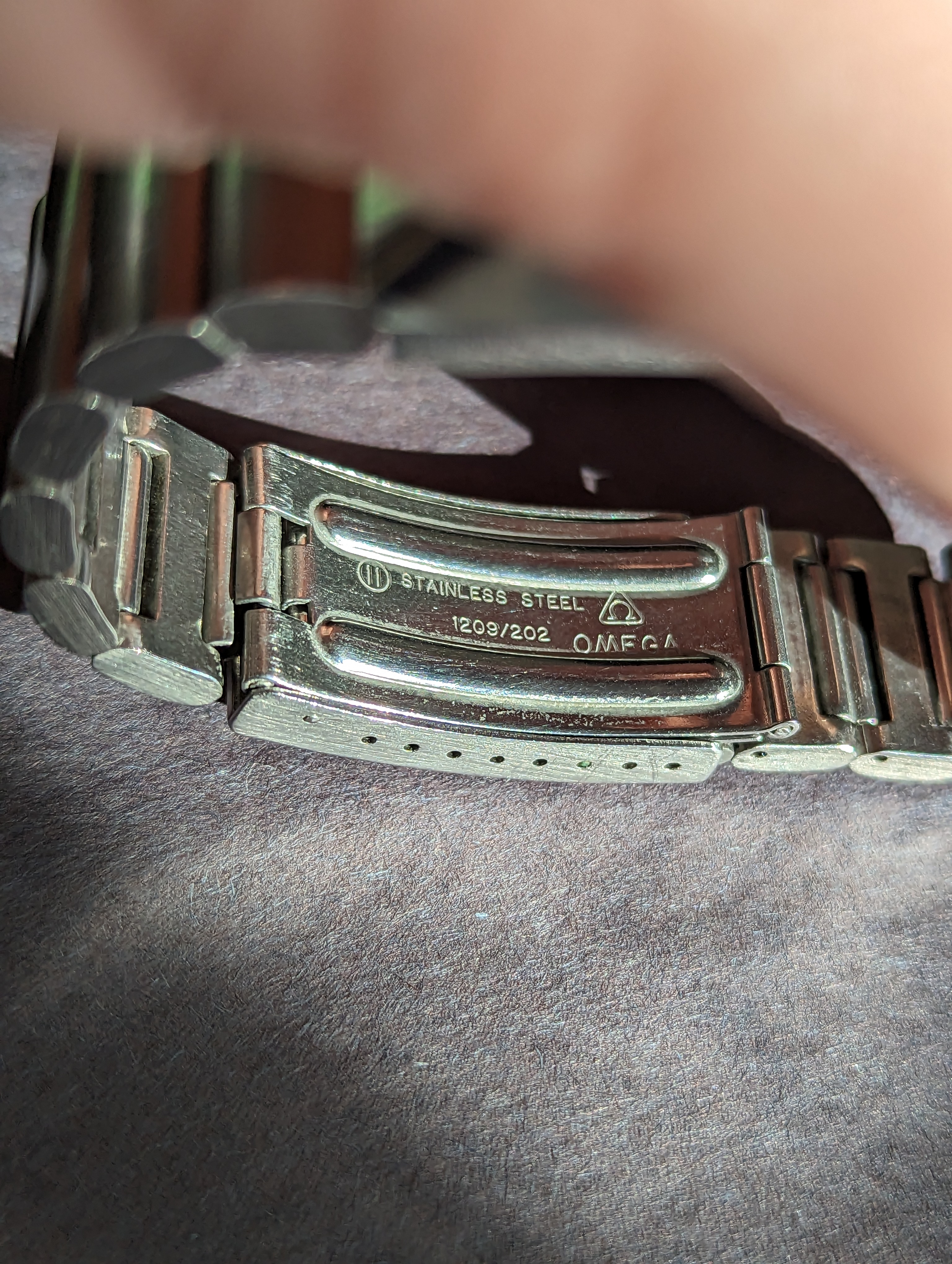 Bracelet: The bracelet is original, with the correct Omega signed clasp. It has 2 extension links. It fits my large wrist with two positions left to get bigger. The condition is good, with signs of wear. It has light scratches on all links, but no major dings or deep scratches.