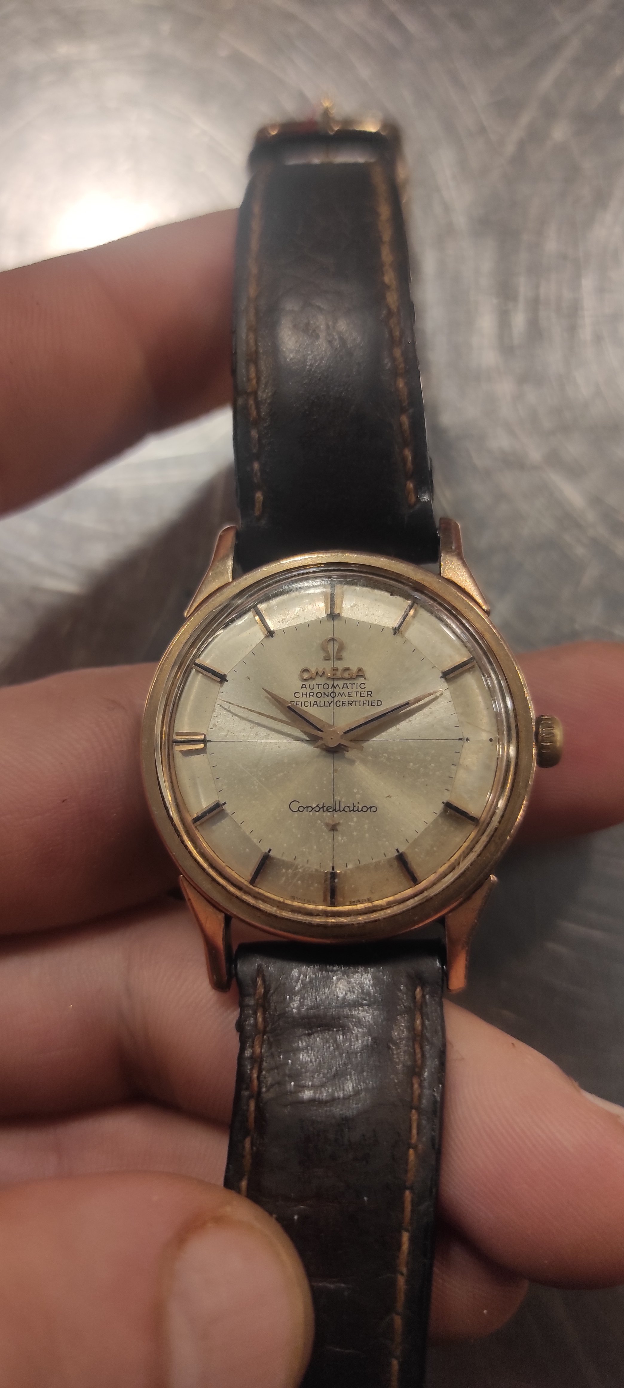 While the condition of watch may hold back its sale value it is a high quality Constellation and would clean up nicely with service, crystal polish or replacement and nice new leather strap. Nice family heirloom worth more to you than anyone else.
