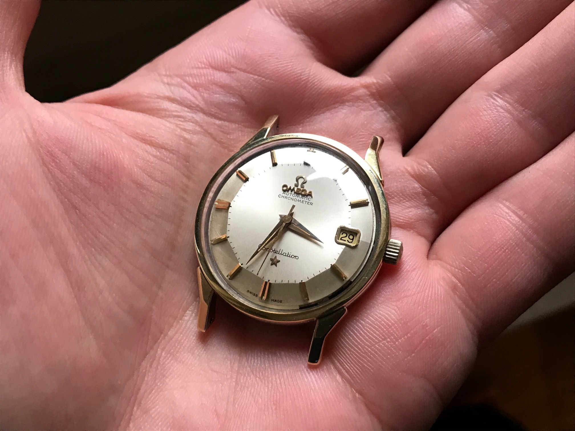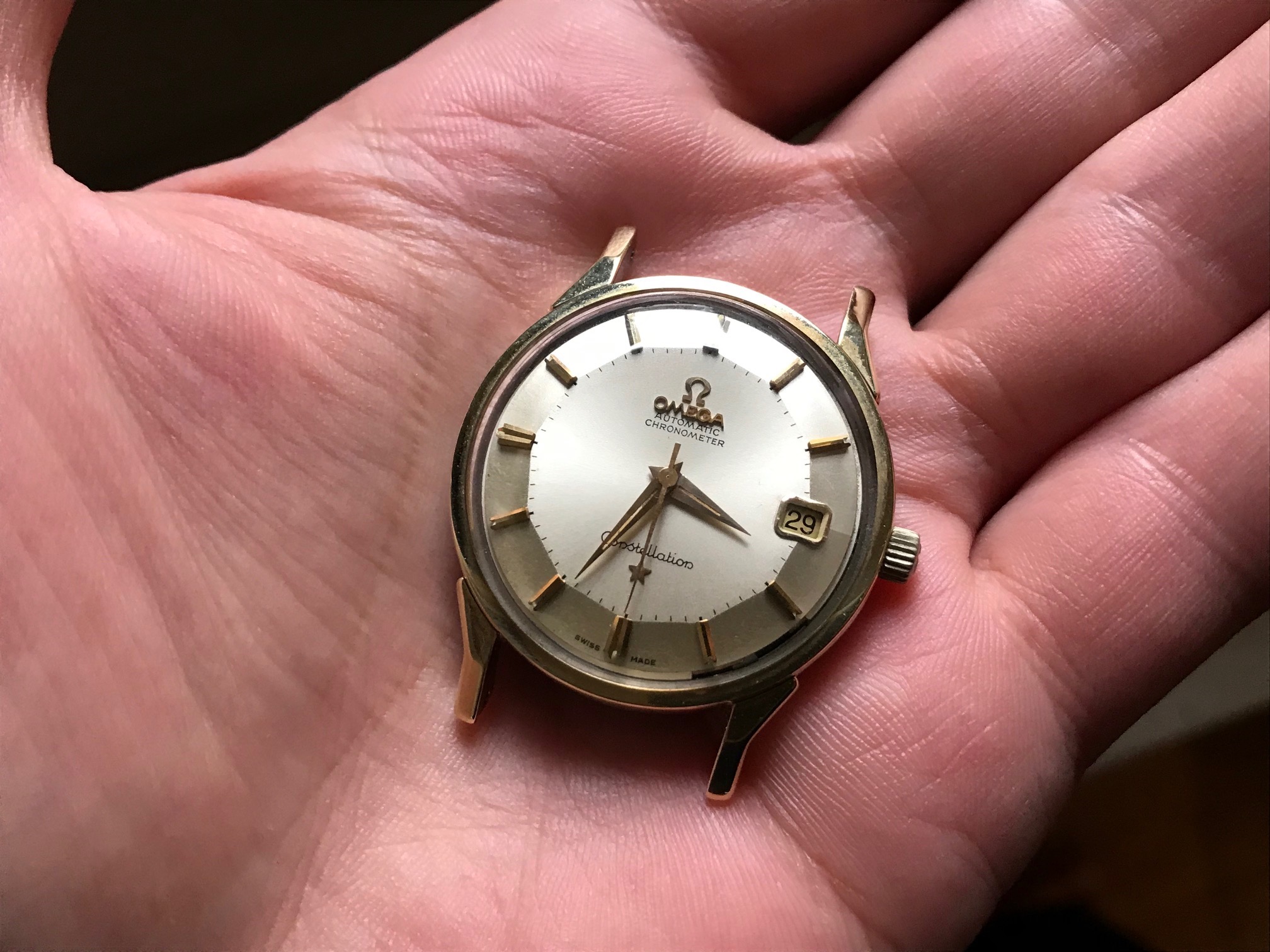 here we have a nice and unmolested Omega Constellation Pie Pan dial from end 1963 according to serial number 209xxxx.